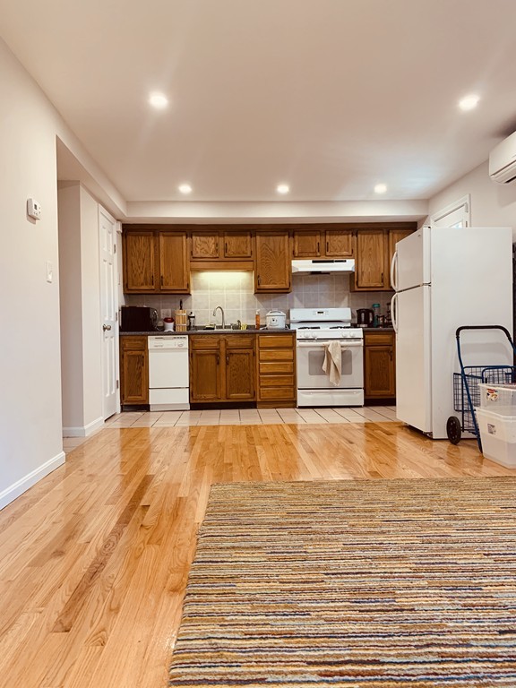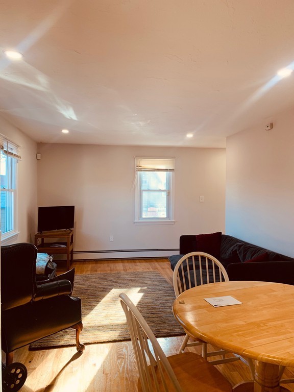 This is an excellent 4 bedroom 1.5 bath apartment, laied out in townhouse fashion. Living space spread out over 4 floors! Free laundry is located in unit. Enter direclty into the open concept living room-kitchen space. All bedrooms are spacious and come with good closet space. Kitchen has stainless steel appliances and granite counter tops. Hardwood floors throughout the apartment! Street parking is fairly easy street permit parking, and there is also off street parking for rent. Very close to MBTA train and bus routes. Book a tour quickly!