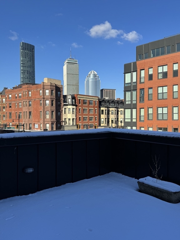 This fantastic unit located in the bustling downtown area and only few blocks away from the Prudential Tower and the famous Capley Square. Classic Brownstone building w/ High Ceilings and Large Windows. One large and private Balcony overlooking the South End streets and beautiful city views, plus another two Balconies in back. This unique, two-level layout unit has 2 Bedrooms, 2 Full Bathrooms and a specious Living Room that can be utilized as the 3rd Bedroom. Open concept and updated Kitchen with Center Island, Dining Area and large Covered Deck off the glass door. Northeastern University, Boston Symphony, medical facility and the T stops are only stone's throw away. Many eye-catching boutique stores, trendy cafes and multi-star rating restaurants are nearby. Newer Heating and Cooling Systems, all Hardwood Floors make this airy and comfortable unit an ideal home for family, or a profitable rental for investment portfolio.
