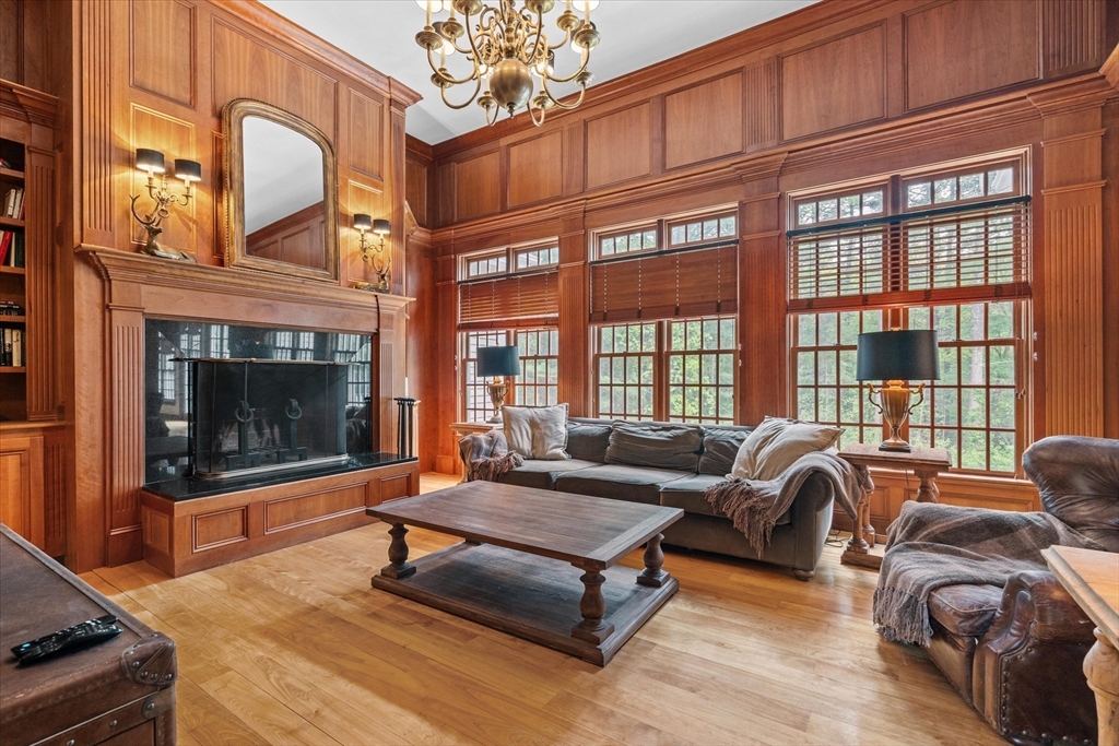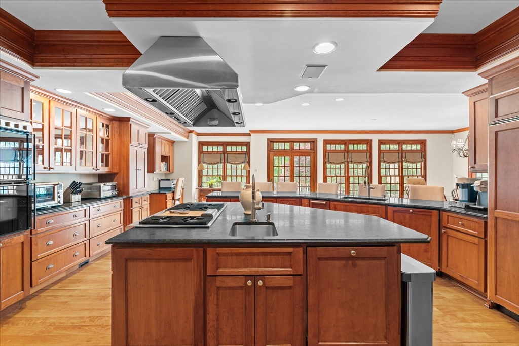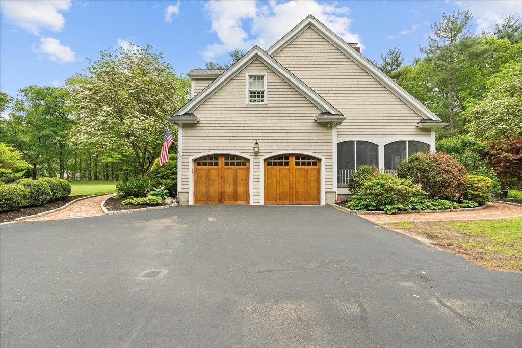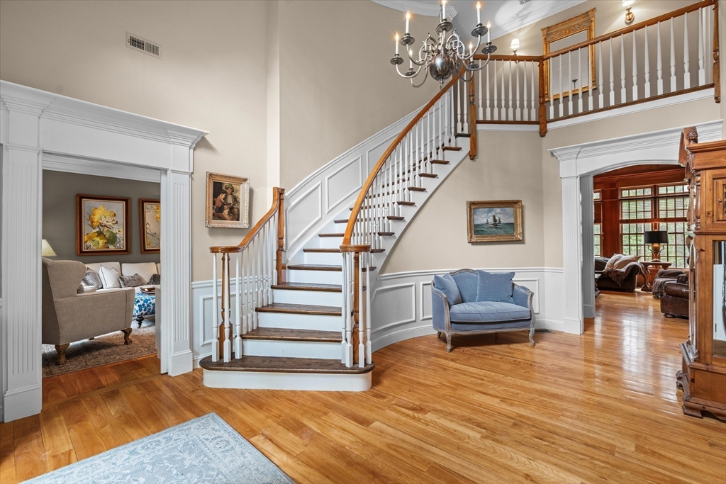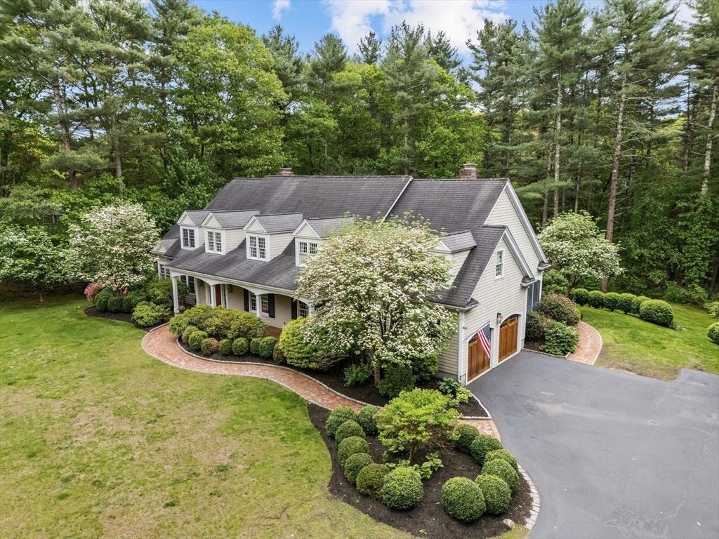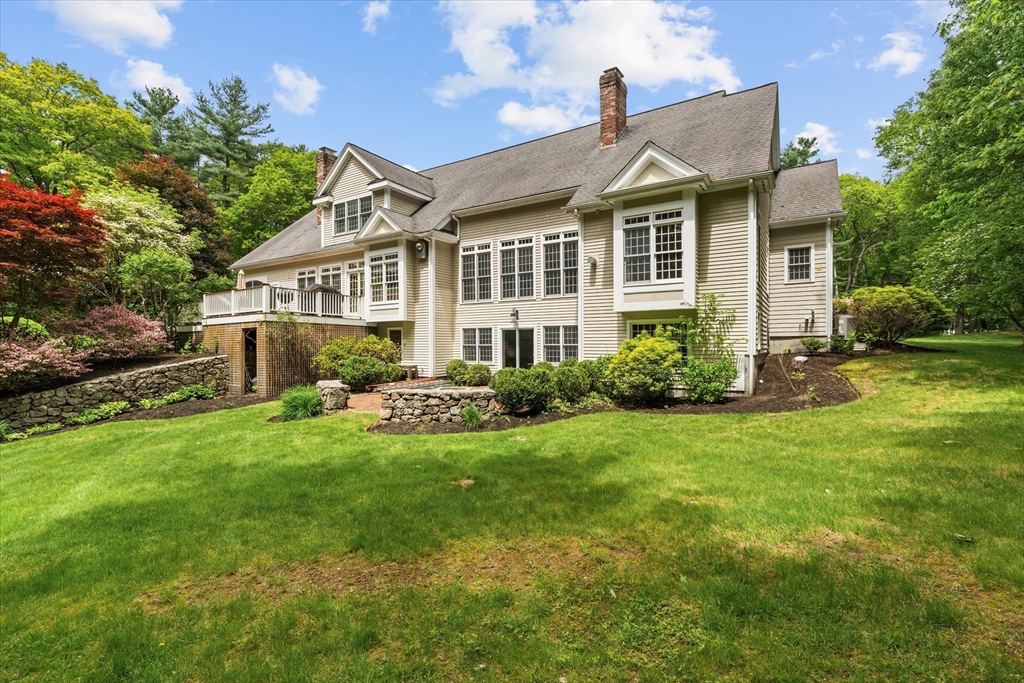 Tucked away on one of the town’s most admired streets, this expansive estate showcases timeless design, thoughtful updates, and a possible opportunity to build a second home on-site. With over 6 private and scenic acres, the conceptual drawings attached to this listing demonstrate the development potential here, with buyers responsible for conducting their own due diligence. The main home welcomes you with a grand two-story entryway, custom millwork, and rich architectural detail throughout. A sun-splashed eat-in kitchen, with two dishwashers, premium appliances, and an oversized breakfast nook, flows seamlessly to a back deck and family room with soaring 20-foot ceilings, cherry built-ins, and one of the home's three beautiful fireplaces. A formal dining room, home office, and first-floor primary suite round out the main level, offering functional and ease of living. There are four additional bedrooms and three full bathrooms. Finished lower level adds plenty of add'l valuable space.
