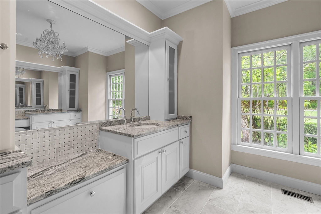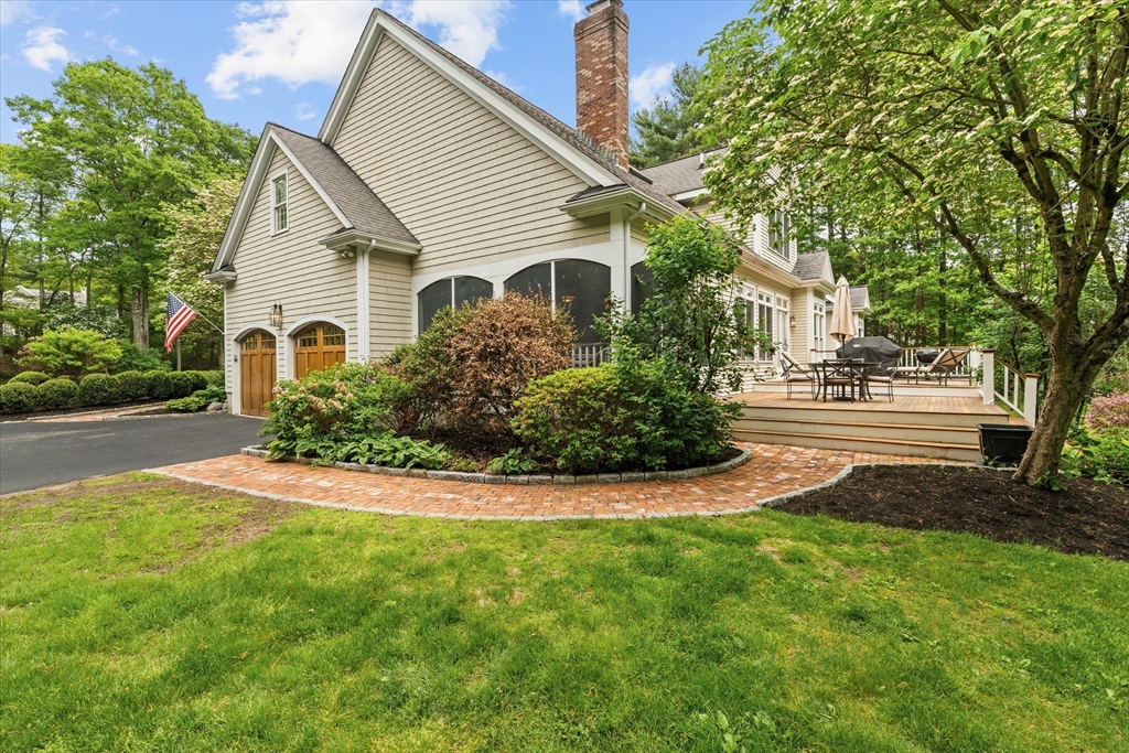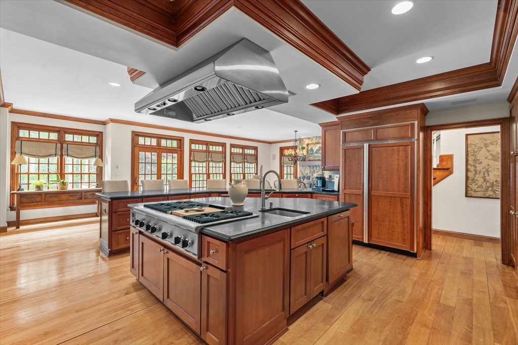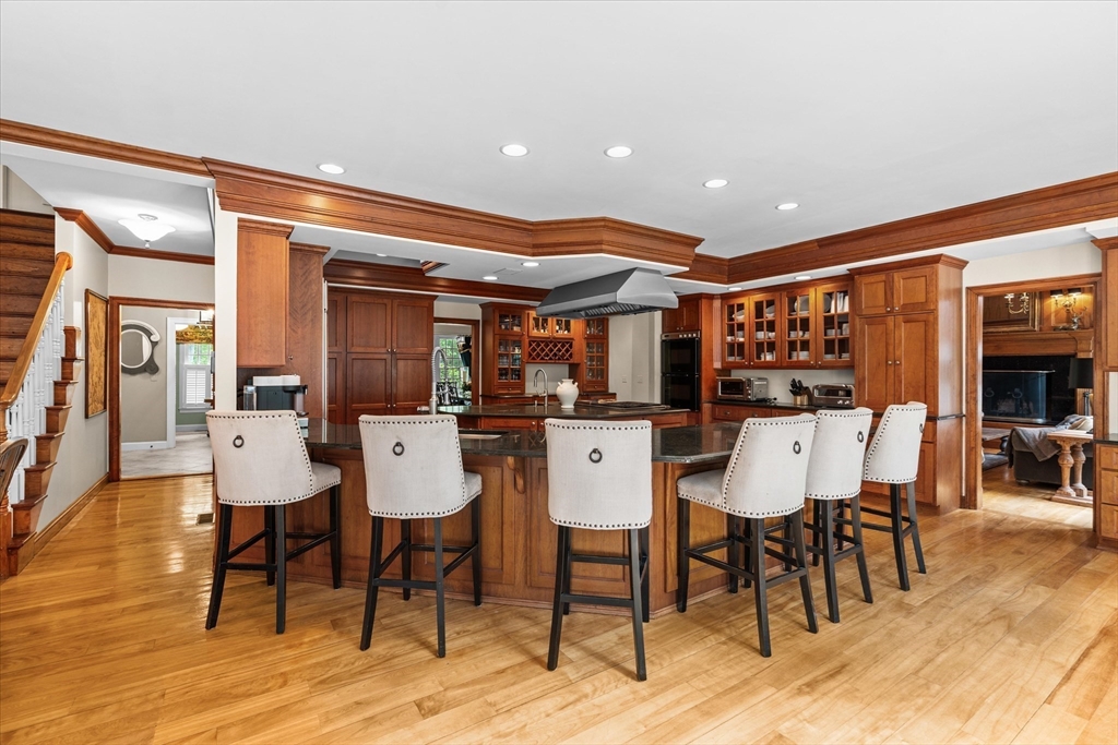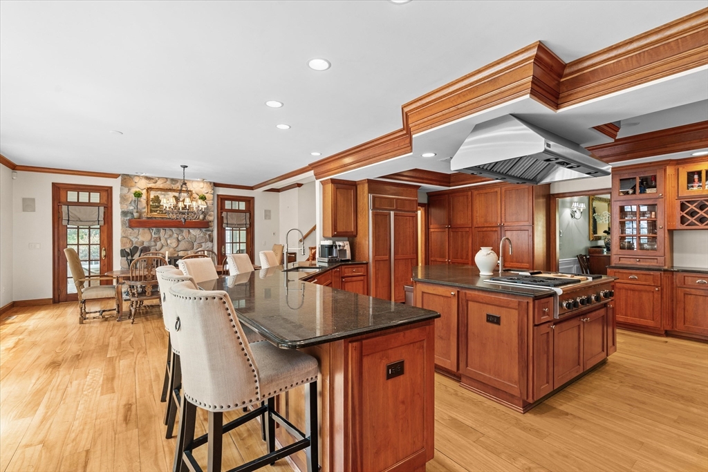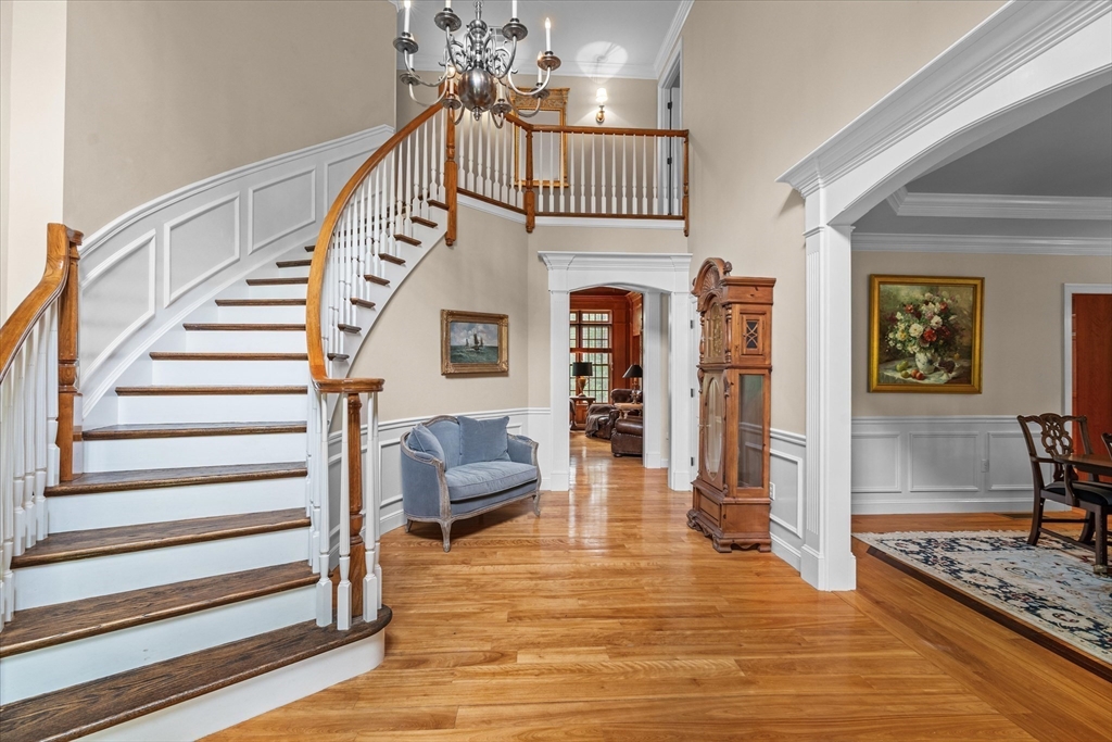 Tucked away on one of the town’s most admired streets, this expansive estate showcases timeless design, thoughtful updates, and a possible opportunity to build a second home on-site. With over 6 private and scenic acres, the conceptual drawings attached to this listing demonstrate the development potential here, with buyers responsible for conducting their own due diligence. The main home welcomes you with a grand two-story entryway, custom millwork, and rich architectural detail throughout. A sun-splashed eat-in kitchen, with two dishwashers, premium appliances, and an oversized breakfast nook, flows seamlessly to a back deck and family room with soaring 20-foot ceilings, cherry built-ins, and one of the home's three beautiful fireplaces. A formal dining room, home office, and first-floor primary suite round out the main level, offering functional and ease of living. There are four additional bedrooms and three full bathrooms. Finished lower level adds plenty of add'l valuable space.