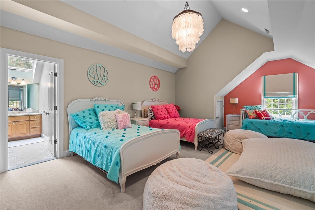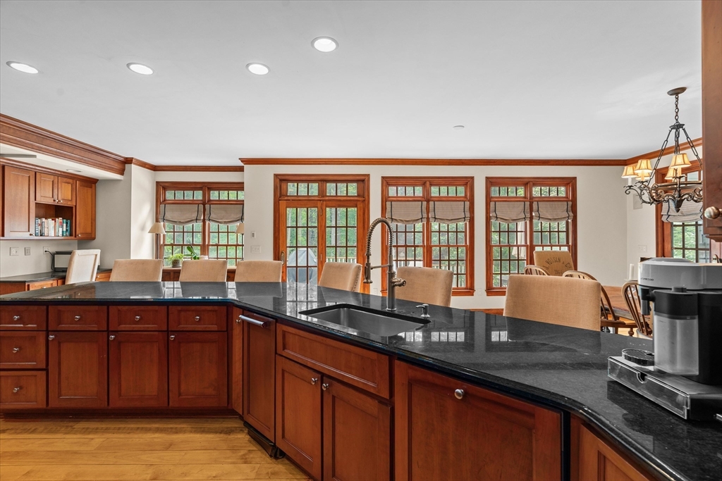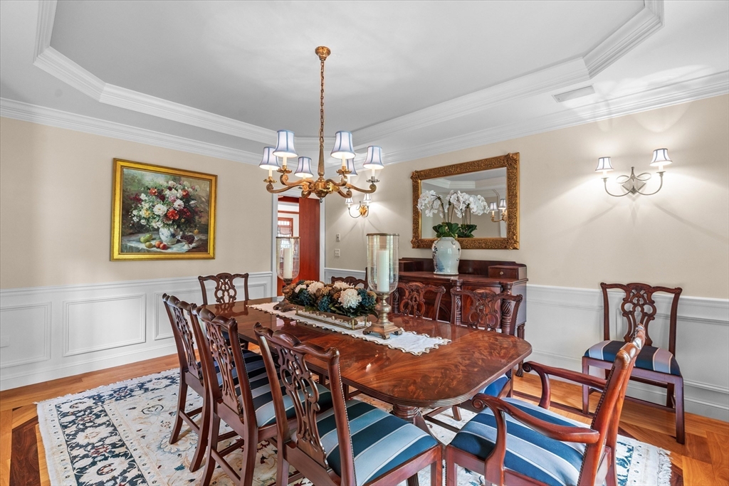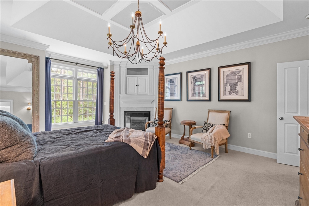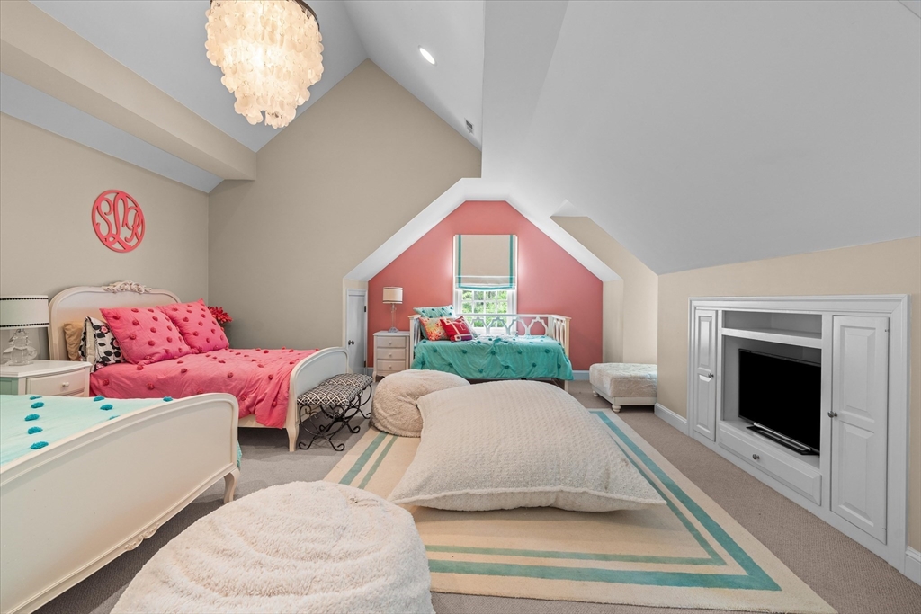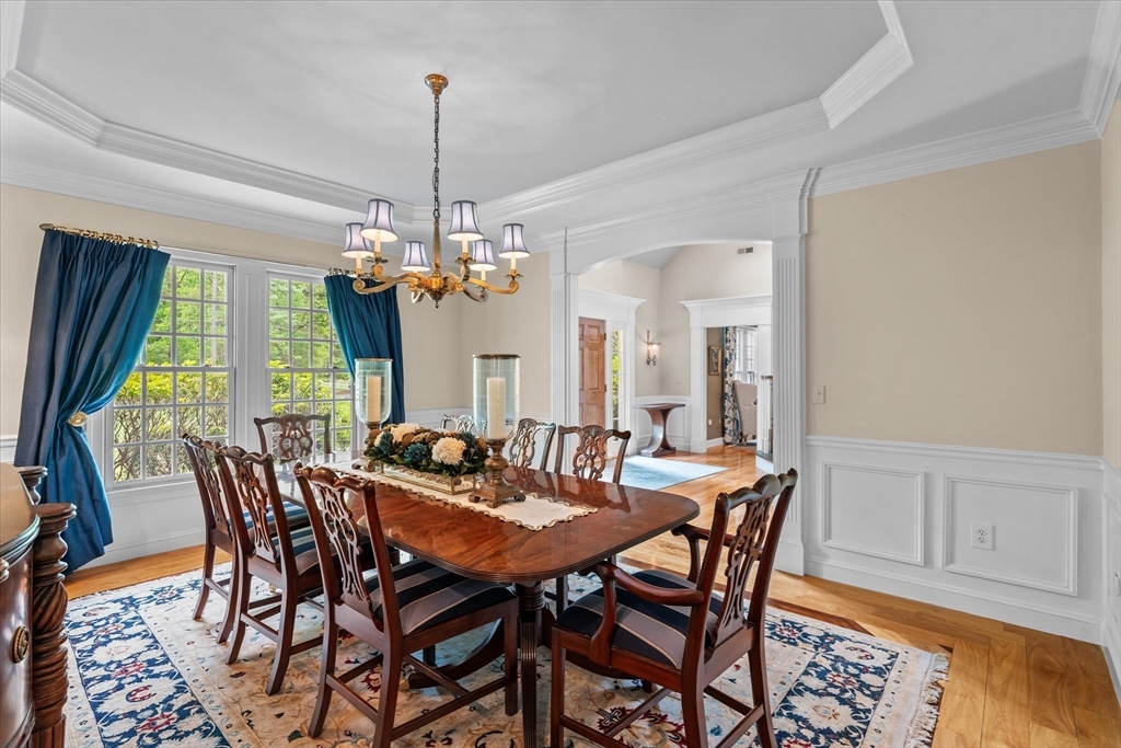 Tucked away on one of the town’s most admired streets, this expansive estate showcases timeless design, thoughtful updates, and a possible opportunity to build a second home on-site. With over 6 private and scenic acres, the conceptual drawings attached to this listing demonstrate the development potential here, with buyers responsible for conducting their own due diligence. The main home welcomes you with a grand two-story entryway, custom millwork, and rich architectural detail throughout. A sun-splashed eat-in kitchen, with two dishwashers, premium appliances, and an oversized breakfast nook, flows seamlessly to a back deck and family room with soaring 20-foot ceilings, cherry built-ins, and one of the home's three beautiful fireplaces. A formal dining room, home office, and first-floor primary suite round out the main level, offering functional and ease of living. There are four additional bedrooms and three full bathrooms. Finished lower level adds plenty of add'l valuable space.