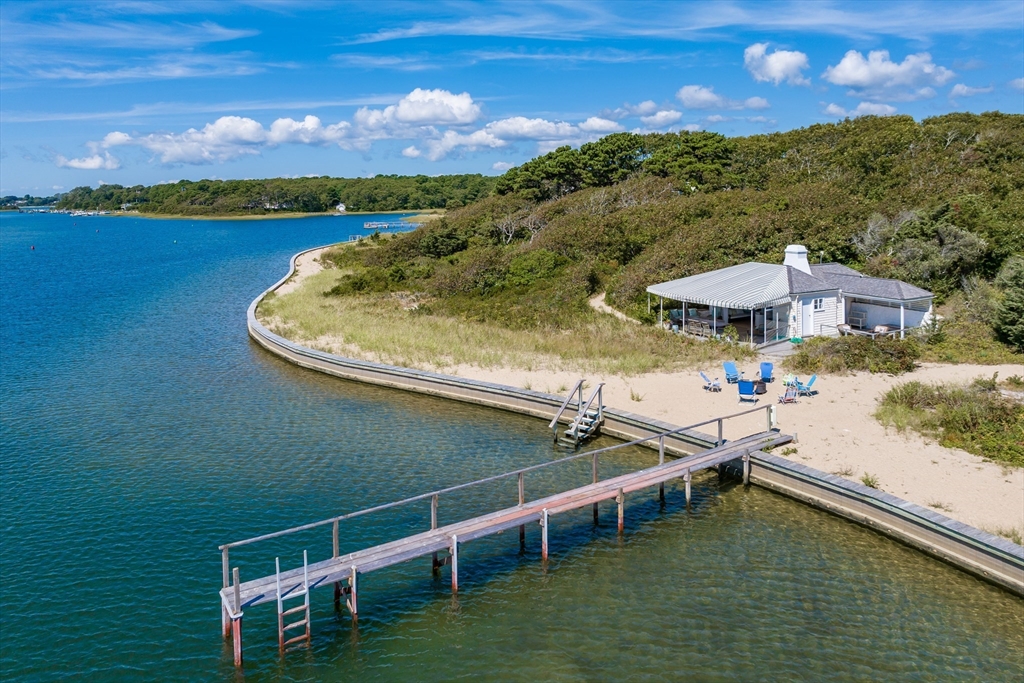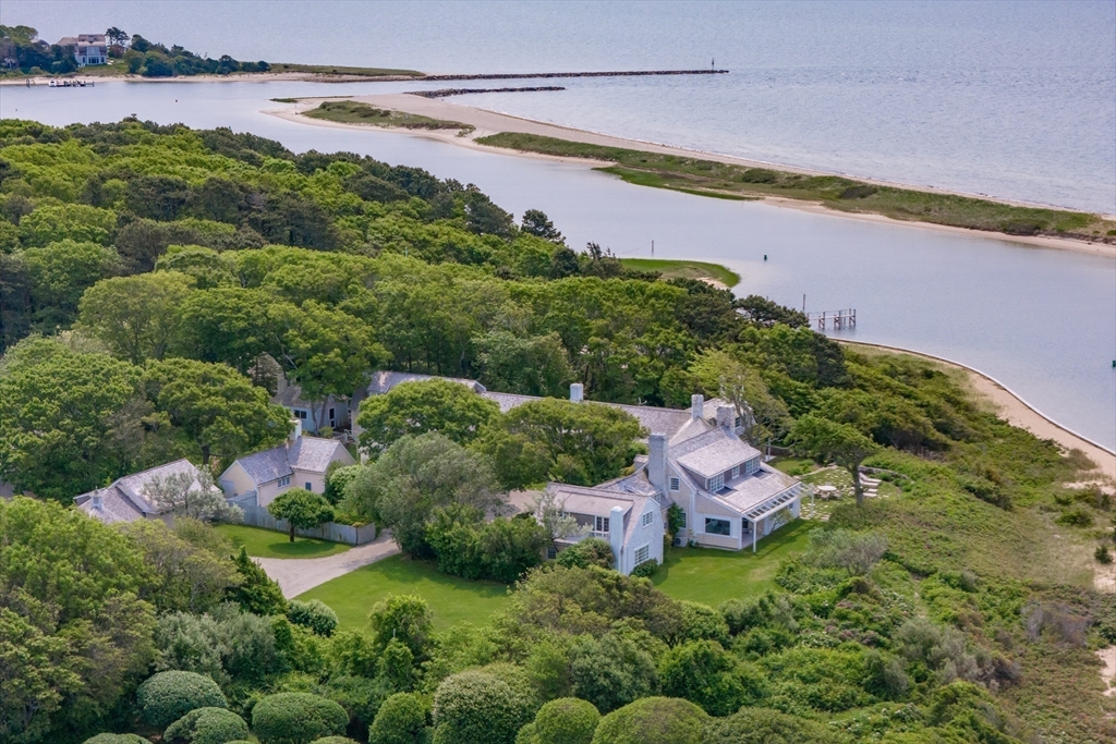 A secluded treasure nestled on a private island. In the 1950s, Paul Mellon, heir to the famous banking family that established the National Gallery of Art in Washington D.C., and his wife Bunny chose this setting for a summer retreat. They created a home of elegance, comfort and great beauty, where they entertained world leaders, movie stars and industrialists. Bunny shaped the gardens and landscape, creating an exquisite blend of native plantings and trees. The 7,300-square-foot main house is integrated into the land, with its eight bedrooms offering views of either the sea or the gardens. Natural pathways wind through the property, connecting the main house to cottages—including a former art studio converted into a private suite—and lead to a beach house, where the Mellons hosted President John F. Kennedy and Jacqueline. With over 500 feet of waterfront, a private dock, and access to a private island, now serving as a protected bird sanctuary, this is an island haven like no other.