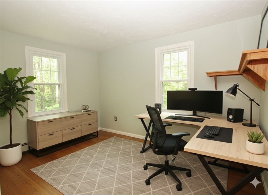 Discover the charm of Wildwood Acres—a sought after neighborhood of ~50 homes just off Worcester Rd. This 4-5 BR Colonial sits on 2.4 private acres and blends comfort with classic style. The open kitchen features toffee-glazed maple cabinets, corian counters, island breakfast bar, ceramic tile, and (2021) black stainless appliances. Enjoy a spacious family room with brick fireplace & woodstove insert, formal living & dining rooms with hardwoods, and 1st floor laundry & half bath. One first floor bedroom or study* The skylit primary suite offers cathedral ceilings, huge walk-in closet & tiled en-suite bath. 3 additional bedrooms provide flexibility. Outdoor living shines with a screened porch, stone patio w/firepit (2020), and oversized deck (2019). Bonus finished lower level with office/media space. 2-car garage, fenced yard (2021), new Bryant A/C and 23 Harvey windows (2024). Just 11 mins to Mt. Wachusett, 12 mins to Rt. 190, 24 mins to UMASS Med.