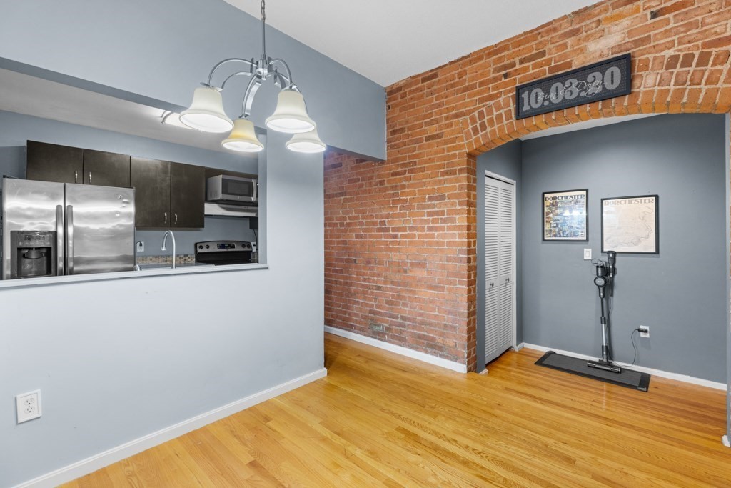 Adams Village spacious 2-bedroom,1-bath condo is awaiting its fortunate new owner. Located in one of Dorchester’s most sought-after neighborhoods. Nestled in the historic Richards Schoolhouse Condominium, this unit offers character and potential with exposed brick, oversized windows, and generous room sizes throughout. A welcoming foyer and dedicated dining area lead to a sun-filled living room, perfect for relaxing or entertaining. Both bedrooms feature double closets, and there's additional in-unit storage as well. While the space could benefit from some cosmetic updates, the location more than delivers—just steps to local favorites like Landmark Public House, Lucy’s American Tavern, Molinari’s, Chubbs, and more. Convenient access to the Red Line, commuter routes, and I-93 N/S. Professionally managed, with heat and hot water included in the HOA. Shared laundry in building. A great chance to get into this vibrant neighborhood and make this condo your own!