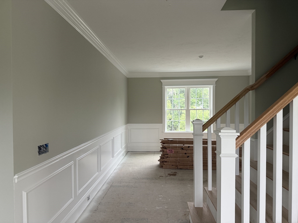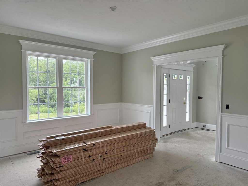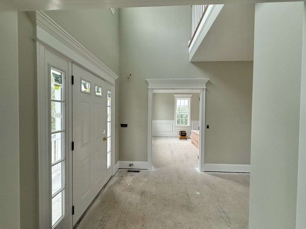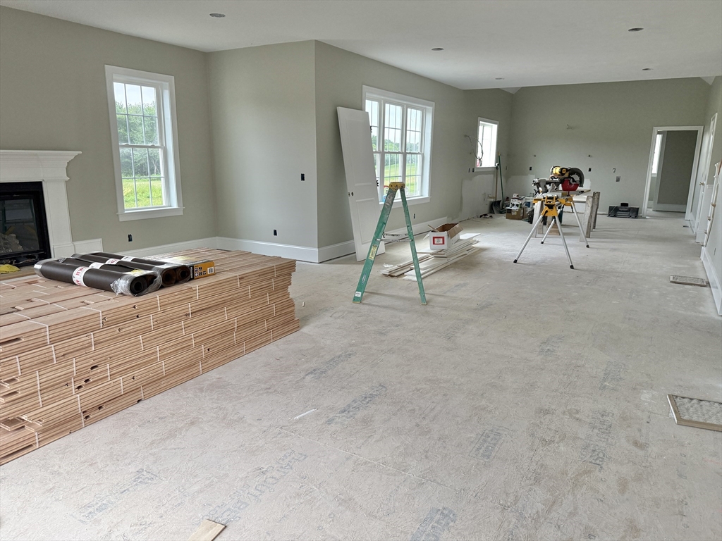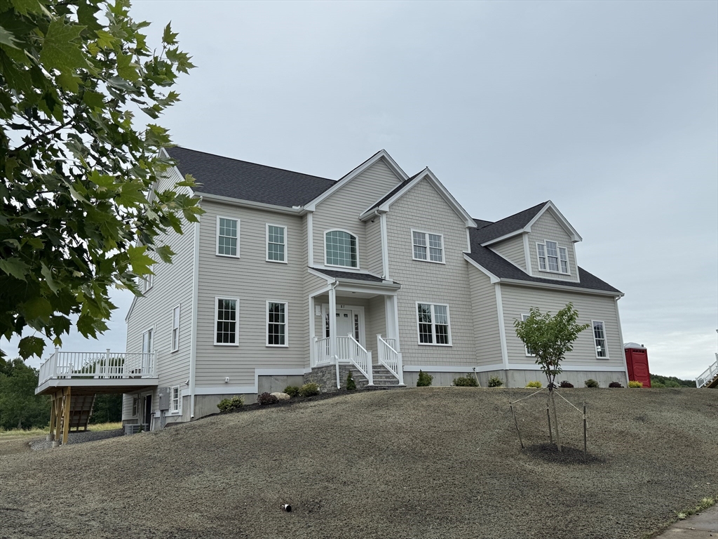 Welcome to Highfields Golf & CC. Spectacular golf course view from this latest spec home that is under construction with a late August closing date. Still time to make some selections (carpet, tile, appliances, lights, granite). This is a phenomenal floor plan that features a 30 x 15' kitchen w/vaulted working area and a huge dining area that merges into the large family room w/fireplace and sliders to composite deck. Large formal dining room w/wainscoting. Office/library with french doors. 3 1/4" oak flooring throughout first floor (except bath and laundry), staircase, and second floor hallway. Very generous sized bedrooms including a master suite with two walk-in closets and a large bath with separate vanities, soaking tub, tiled shower. Appx 900 SF finished in the lower level: large rec room with adjacent full bath and sliders to small patio.