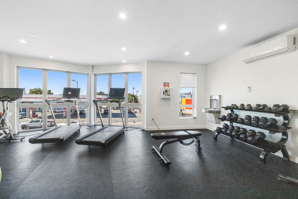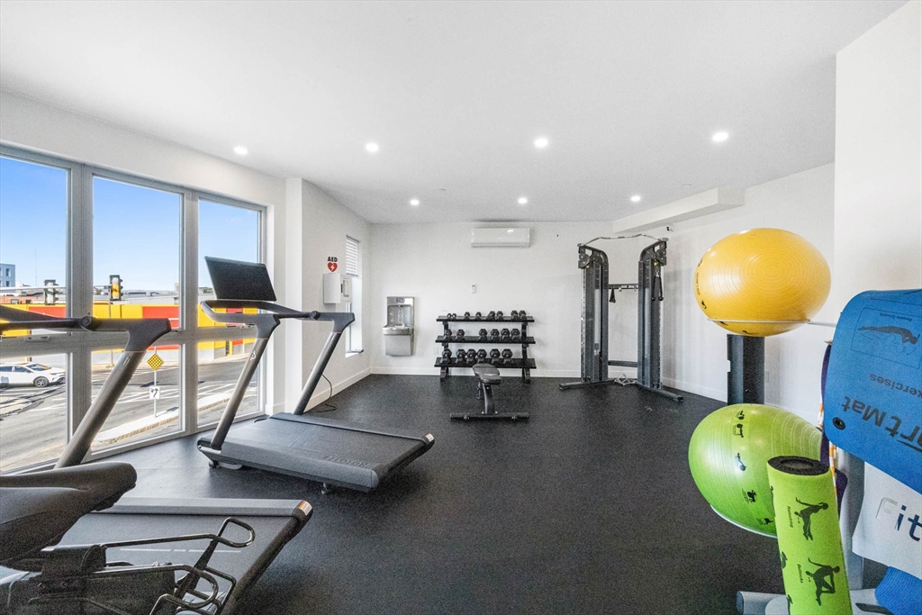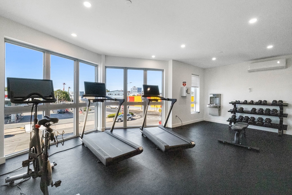 Situated on one of the most convenient streets in South Boston, this modern complex offers stunning one-bedroom units. Unit 505 is a gorgeous front facing unit with large, floor-to-ceiling windows and city views! The building sits above highly rated "Dirty Italian" and has amenities like a gym with Peloton cardio equipment, elevator, and ButterflyMX intercom system. Available now.