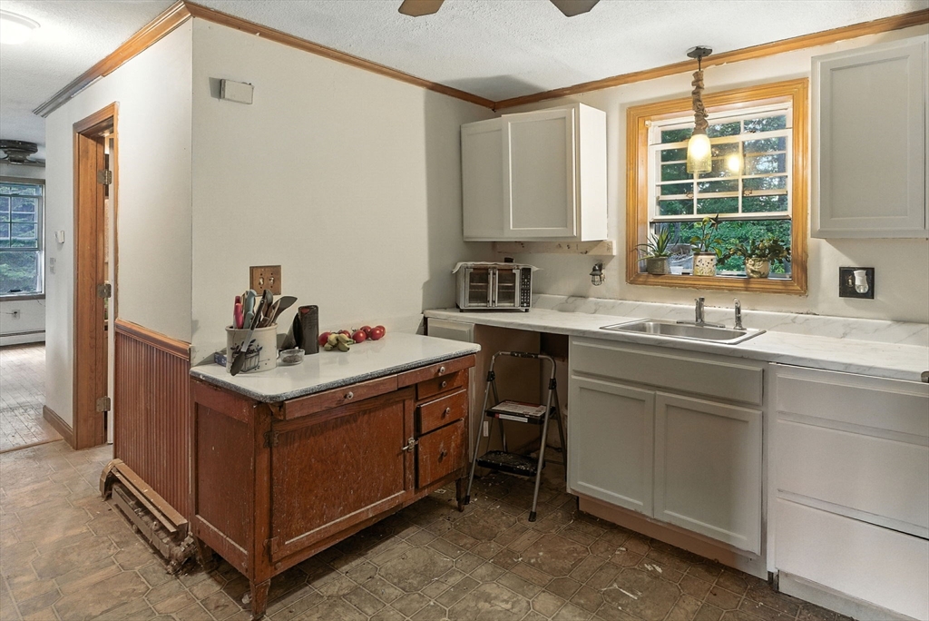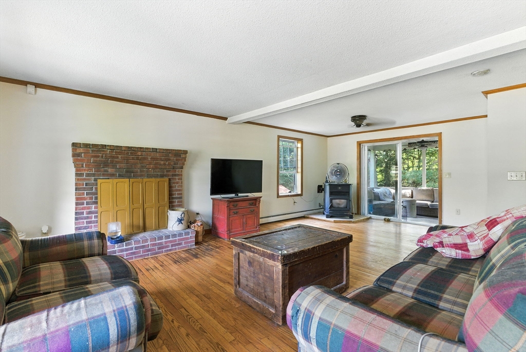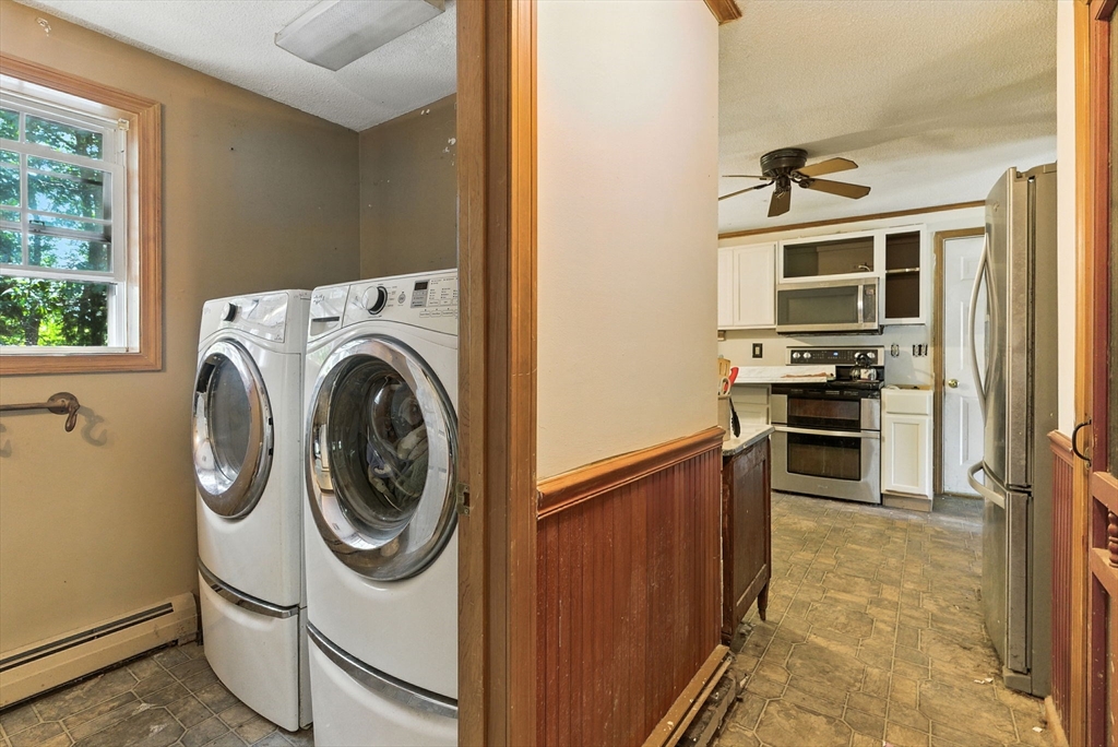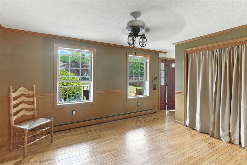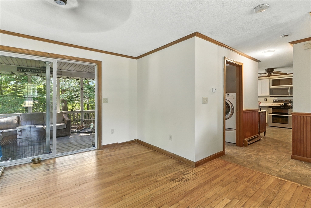 Located on one of the nicest streets in Winchendon, this classic colonial offers comfortable living and room for expansion. Situated on a little over an acre of land, abutting Whitney Pond - waterfront property without the waterfront price! Upon entering the front to back living room, you will be greeted by refinished hardwood floors, fresh paint, brick fireplace and energy saving pellet stove. Sliders to the private enclosed porch overlook the wooded backyard. Half bath with laundry is a convenience. Large dining room opens to kitchen with amazing pantry! Upstairs, 3 bedrooms (with new carpeting) and 2 full baths complete the floorplan. The walkout basement could be finished for more living space. Attached 2 car garage makes life easier when coming home with groceries, etc. Come make it yours!