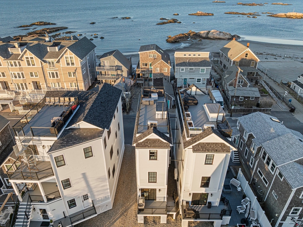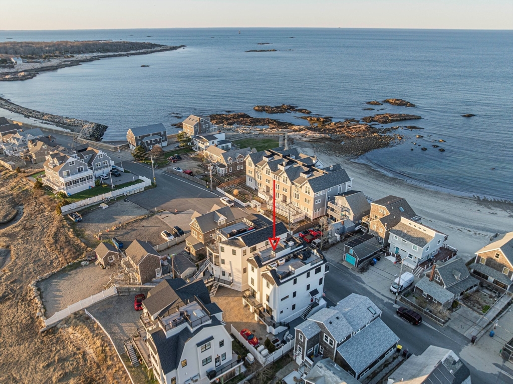 Unique opportunity in the heart of Scituate’s seaside Minot Beach neighborhood. This row-house style beach home was newly constructed in 2021 with an attention to detail that is second to none. The zero maintenance exterior is complemented by an interior that has custom finishes throughout, custom built-ins, gourmet Bertazzoni appliances, custom tile, a gas fireplace, and a floor plan that maximizes all of the living space. You will be awed by the sweeping panoramic water views from the rooftop deck and will truly enjoy living with the Atlantic Ocean as your neighbor.