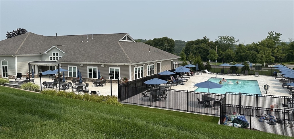 Welcome to 3102 Peters Farm Way at Del Webb Chauncy Lake. This is an over 55 community in Westborough, MA. They have a large club house with a billiards room, fitness room, card rooms, meeting rooms, cafe, function room, ping pong, and leads out to an inground heated pool and patio, also an area for grilling and gathering. There are tennis and pickle ball courts. This is a Jefferson style one bedroom on the first floor convenient for entering and exiting the building, and has upgrades of a ceiling fan with lights in the bedroom, and living room, under cabinet lighting in the kitchen, and granite countertops, double french doors at the den, crown and neck molding in the living room, and grab bars in the shower , and bathroom. Also very convenient to Rte. 9, 495, and the Mass Pike.