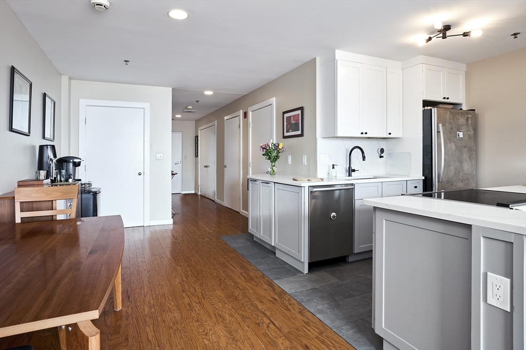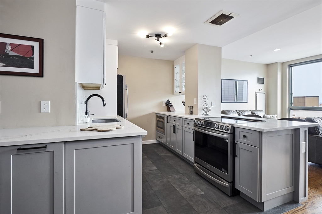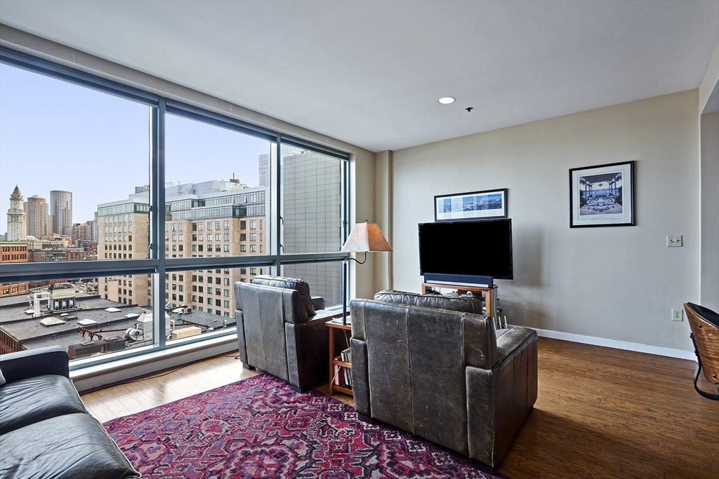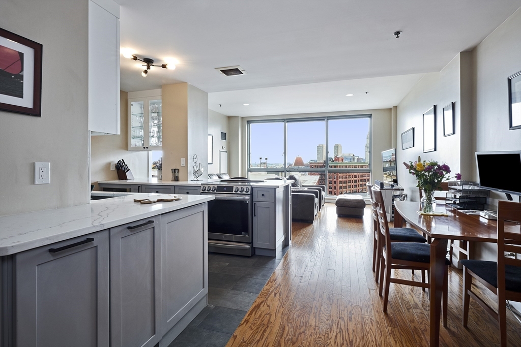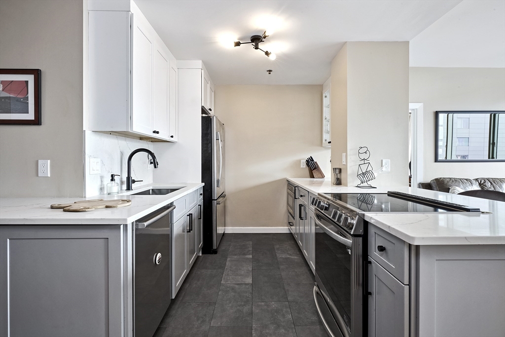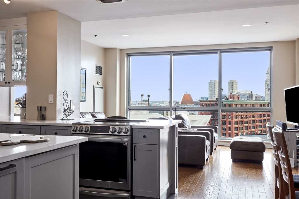 Experience refined city living at STRADA 918. This elegant two-bedroom, two-bath residence features a spa-like primary suite with stunning harbor views and generous closet space, creating a serene private retreat. Designed for comfort and entertaining, the open-concept layout showcases floor-to-ceiling windows with sunny south-facing city and water views enhanced by thoughtful custom treatments, and a spacious kitchen with bar seating—ideal for everything from quiet mornings to lively gatherings. Brand-new kitchen updates and modern appliances ensure effortless style and function. Only one owner since construction, the home includes a deeded valet garage parking space. Beyond the residence, STRADA offers 24/7 concierge, on-site management, and a fully equipped fitness center. Perfectly located in Boston’s vibrant waterfront neighborhood by Lovejoy Wharf, you are steps from the Harborwalk, North Station, and the historic North End's acclaimed restaurants and charm.
