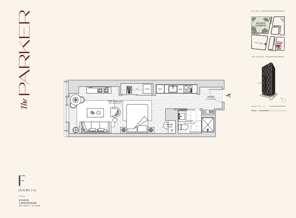 NEW PROGRAM, NEW PRICING! Be the first to call this elegantly designed studio home at The Parker, now offered with a new program and new pricing. One of Boston’s premier new luxury residences, The Parker is perfectly positioned in the Theater District, just moments from Boston Common, the Public Garden, MBTA lines, Downtown, Back Bay, and more. Inside the residence, floor-to-ceiling windows fill the space with natural light, while wide-plank white oak floors add warmth and sophistication. The kitchen features a custom Italian marble backsplash, brass accents, and a mix of materials and textures, creating a sleek, modern aesthetic. Residents enjoy the convenience and security of a 24-hour concierge, a state-of-the-art fitness center by Gronk Fitness, and a spectacular rooftop deck showcasing panoramic city views. Curated by Zarifi Design, the building’s speakeasy-inspired amenities include a stylish cocktail lounge, private screening room, and refined indoor-outdoor entertaining spaces.