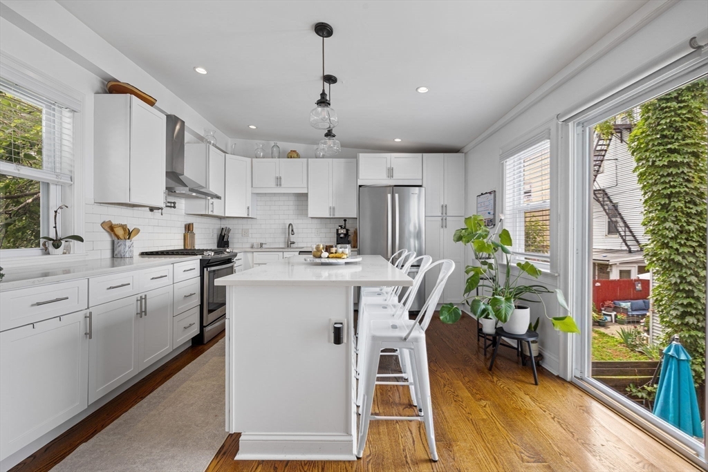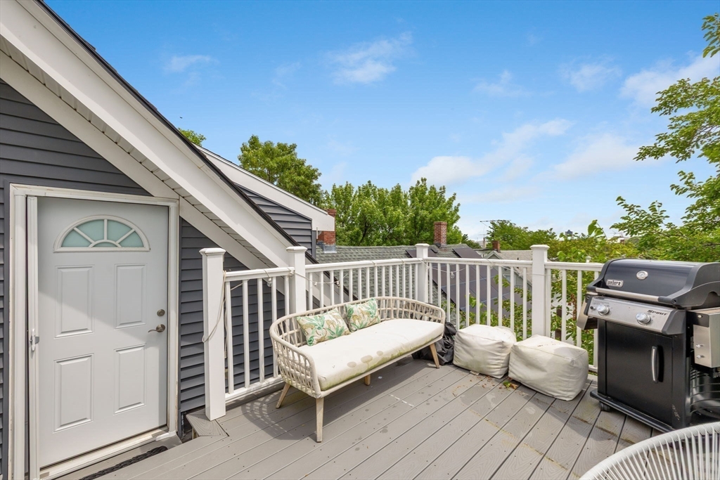 Spacious 3 Bed, 2.5 Bath duplex with large private outdoor deck in the heart of Eagle Hill! The main level opens up into the kitchen/living/dining area, plus bedroom and full bath. Large deck right off the office with sweeping views into Downtown Boston - perfect for entertaining! Upper level has two additional bedrooms and a 2nd bathroom. Nest Central A/C + full-sized in-unit washer and dryer. Inquire about rental parking spot nearby (2 min walk away). 0.4 mi to the Airport MBTA stop on the Blue Line (only 2 stops to Downtown Boston). Just blocks away from the East Boston Greenway with a public garden, bike and walk paths. Easy access to restaurants in Eagle Hill (Angela's Cafe, Rino's Place, Santarpio's), East Boston waterfront, boutique shops and more.