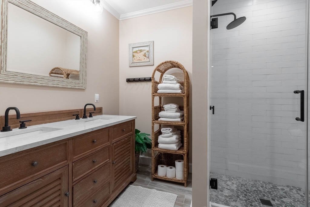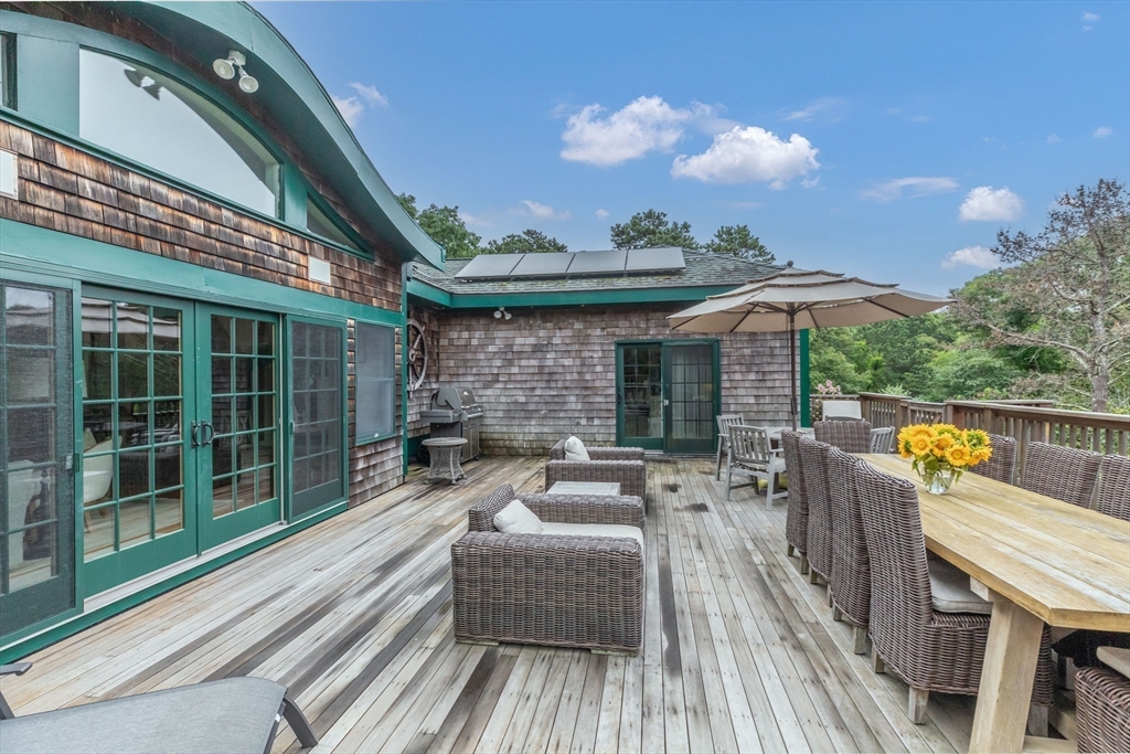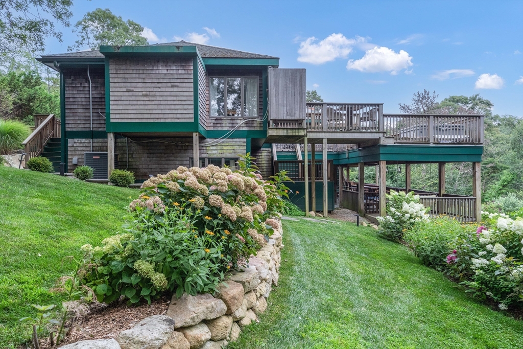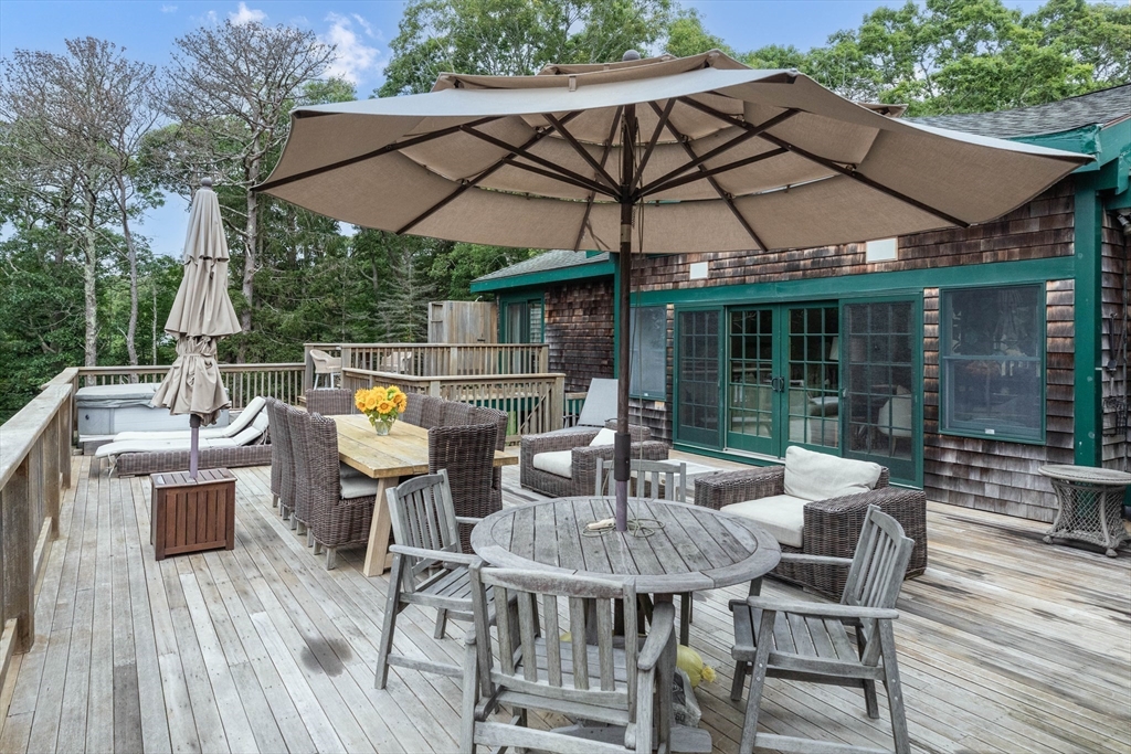 BEAUTIFUL CUSTOM-BUILT RETREAT – LAMBERT’S COVE This impressive 4,900+ sq ft home offers privacy with easy access to downtown and James Pond Reserve at Lambert’s Cove Beach. Featuring 5 bedrooms, 4.5 baths, and a stunning chef’s kitchen, perfect after trips to local farm stands. Enjoy multiple living areas—oversized family/media room, dining room, sunny living room, and game room. Outdoor amenities include an oversized deck with a hot tub, 2 outdoor showers, a lower patio, an expansive lawn, and a Bocce Court. The 2-acre lot allows a pool or an ADU (with permitting). A private attached apartment with a separate entrance offers guests plenty of privacy. An attached two-car garage and shed provide ample storage space. Surrounded by conservation land and trails, it’s ideal for nature lovers. Whether year-round, a vacation, or an investment with a proven rental history, this fully furnished home delivers.