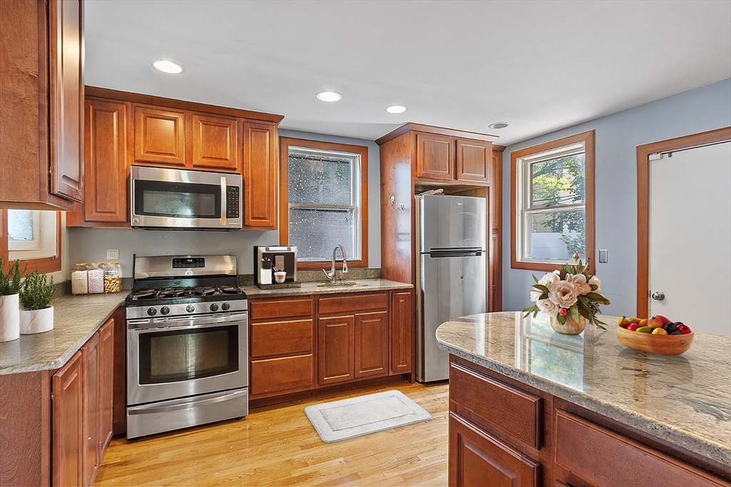 BACK ON THE MARKET due to buyers' financing, Motivated Seller giving towards Closing Costs! Spacious 4-Level Colonial Home located in a highly convenient neighborhood, just under a mile from the Ashmont Red Line and Trolley Station. Featuring 5 bedrooms and 2.5 bathrooms, a Remodeled kitchen with Stainless Steel appliances, Granite countertops, and a generous island perfect for entertaining. The main level also offers a Large living room with French doors, an Elegant dining room with Gallery windows, and a laundry room complete with a Washer and Dryer, blending classic charm with modern improvements. Roof, Gutters, Water heater (2019). Bonus room currently serves as an oversized closet, and there's a private home office with its separate entrance—ideal for remote work/ small business. Hardwood floors on the 1st and 2nd levels, 3rd floor has newer vinyl flooring. Outside, enjoy a fenced-in backyard with a BRAND NEW patio, plenty of space for entertaining. Partially Finished Basement