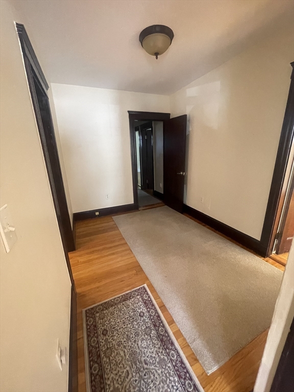 Spacious 3 bed, 1 bath apartment in desirable Oak Square. Located on the first floor, this unit opens into an entryway with two closets for coats/storage. The entryway leads to two living spaces, one of which could be used as a formal dining room. Off of these rooms is the kitchen which features granite countertops, a gas range, and ample cabinet space. The kitchen and bathroom have been newly renovated, as well as upgrades to the entire apartment. The bedrooms are all of equal size and offer plenty of space. There are hardwood floors throughout, a rear porch/balcony, laundry in the basement, gas heat and easy on-street parking. Cats welcome, no dogs. Available 9/1!