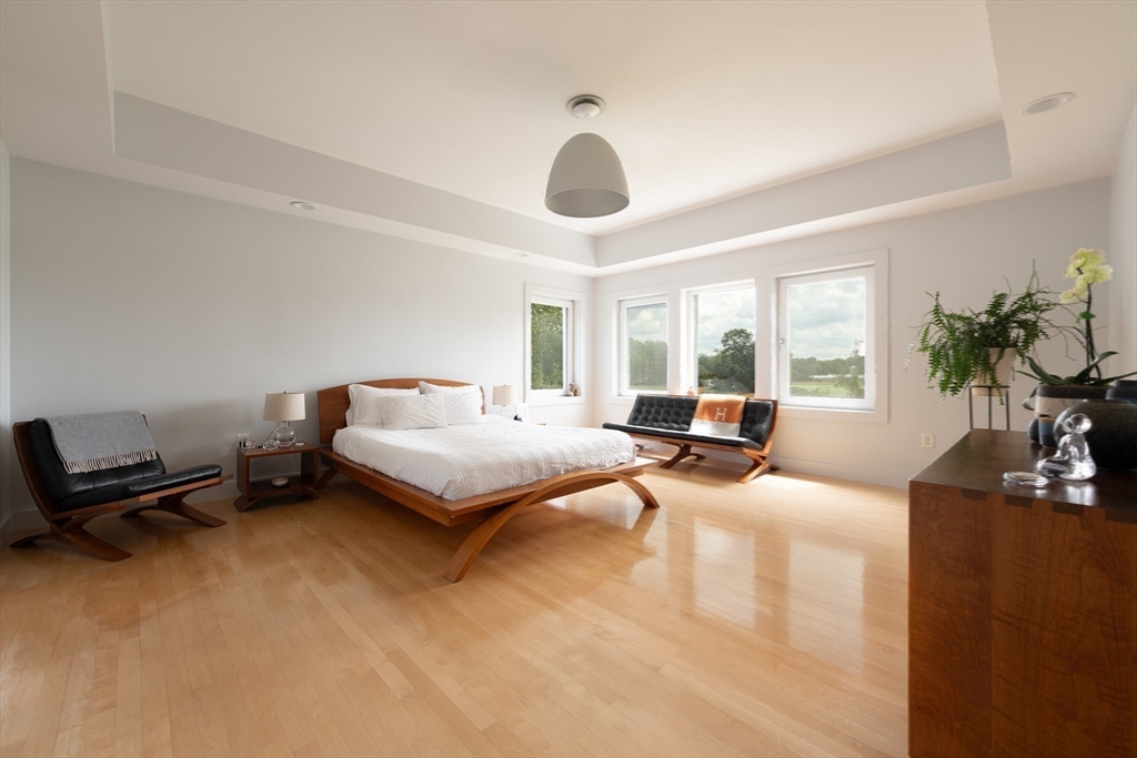 Welcome to 49 Powisset St - Dover, MA. Set on just over 2 acres of sweeping meadowland, and immediately adjacent to Powisset Farm, this custom-built home contrasts sleek modern design against a peaceful pastoral backdrop, while evoking the feel of modern European style. This presentation from the widely heralded Estes/Twombly Architecture firm offers a simple yet stylish open-concept grand-salon that is replete with interesting angles & vistas throughout the space. There is an expansive array of top-end materials, both inside & out. Schueco dual-hinged windows allow for views from every corner of the home. The house is neatly organized over 2 living levels with 4 beds upstairs & a guest bed & bath on the main level. A near net-zero home with full solar array, energy efficient appliances by Miele, & custom cabinetry by Poggenpohl. Plus, a home with a unique history in solar! Please Inquire to Seller's Broker regarding Compensation.