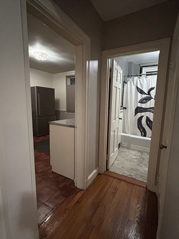 Off street Parking directly behind the unit. Beautiful condo in highly sought out area close to Cleveland Circle. Hardwood floors, high ceilings, ample closet space and architectural arches make this first floor unit a charming atmosphere. Professionally managed desirable building. Deeded parking space in a private lot behind the unit included. Heat and hot water included. What more could you want for city living? Close to transportation, restaurants, shops and Chestnut Hill Reservoir.