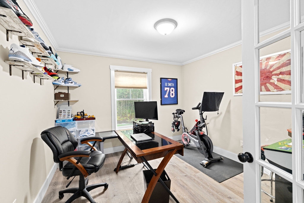 * NEWER CONSTRUCTION! Impeccable young Colonial Gem in exclusive Big River Estates, only 10 homes on 70 pristine acres on Big River Preserve. This meticulously maintained 4BR/3BA 2,600 SF home on quiet private cul-de-sac features generous open floorplan that sweeps with natural light, elegant luxury vinyl flooring, tastefully appointed gourmet kitchen with oversized center island and premium stainless steel appliances. Includes dedicated 1st floor office or 5th bedroom, cozy gas fireplace, convenient full bath, expansive primary suite with dual walk-in closets and en-suite bath, 3 additional spacious bedrooms with walk-in closets and laundry room. Full finishable basement with high ceilings and walkout, 2-car garage with EV charger and extra parking. Entertainer's paradise: Sip drinks on your front porch, grill on your rear deck, all on an acre of lush landscaping. Perfectly located with walkable trails, golf, dining, shopping and minutes to Route 95 and the airport, a commuter's dream