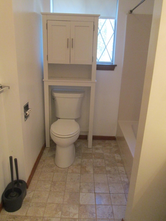 In non-smoking duplex style 2 bedrooms with wall-to-wall carpeting, property abuts the Commuter Railroad, fully appliance kitchen, dining area, fireplaced living room with flat screen TV, 1 1/2 baths, private deck, full basement, 3 cars off street parking (Assigned), small back yard common area, cat ok, free washer and dryer in basement, available now Tenants are responsible for all utilities including cold water & sewer. . Must have good references, income & credit.