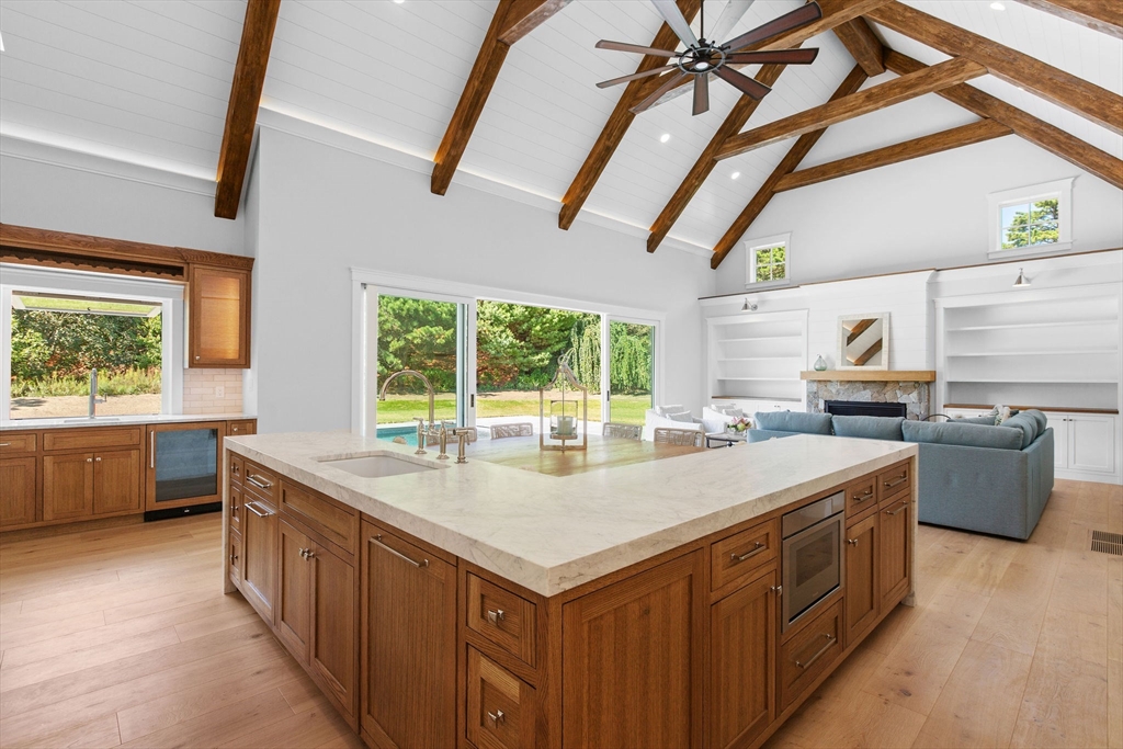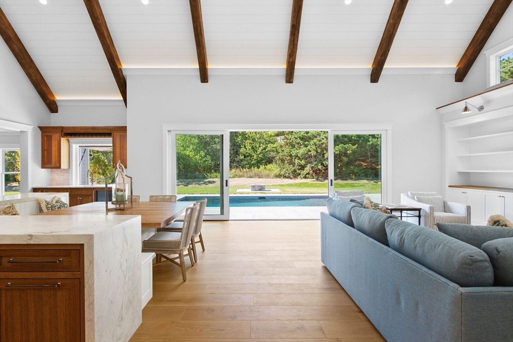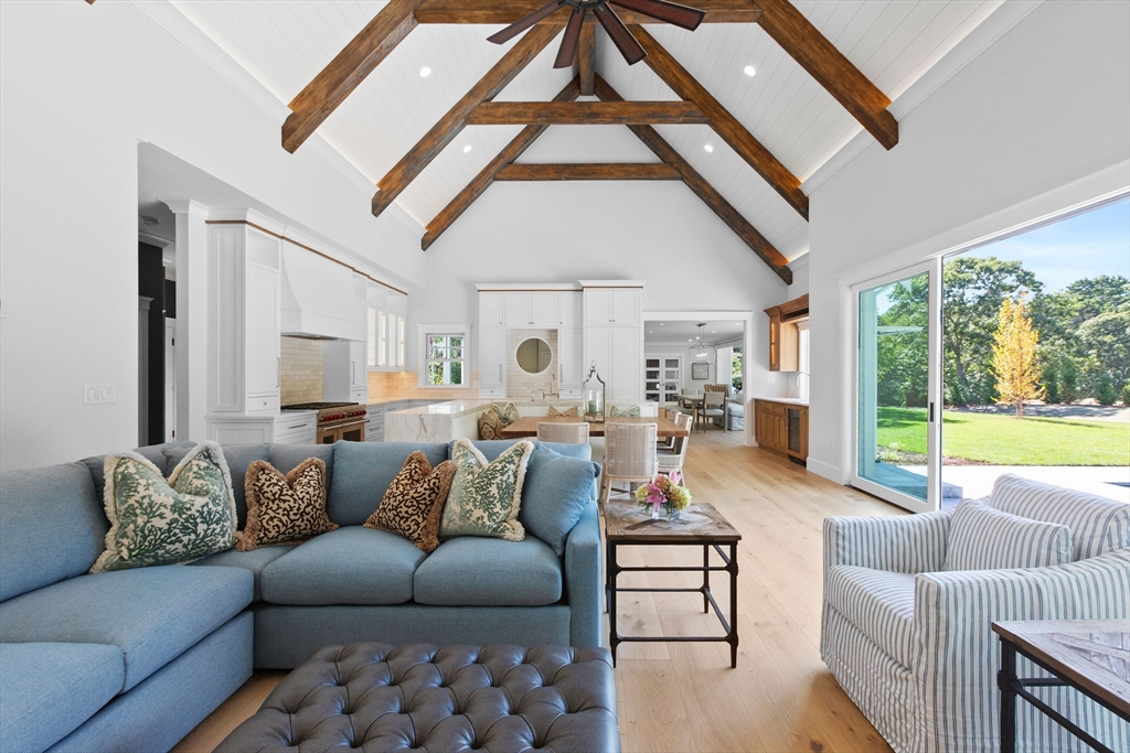 At the crossroads of coastal elegance and comfort, a rare union of high value features has emerged in a home priced under $975 PSF. Virtually unrivaled at this price point, a 5700+/- SF home consisting of twelve (12) rooms, (6) bedrooms, five (5) baths, two (2) half baths, impressively situated on 1.63+/- acres of private estate like grounds. Mature old world trees were left intact on a parcel of land with magnificent utility, absent of wetlands and adjacent to the Chatham Bike Route. There is a 400' circular driveway and lush landscaping abound securing year round privacy. The developer maintained focus on creating a home that would seamlessly merge an indoor/ outdoor living space suitable for creating unforgettable gatherings. An impressive new construction addition created a 3 car garage, 2 en suite bedrooms and a breathtaking kitchen/ living room featuring 20' ceilings, adorned w/ roughhewn beams, f/place and a stately 18' wide sliders connecting the salt water pool/ patio.