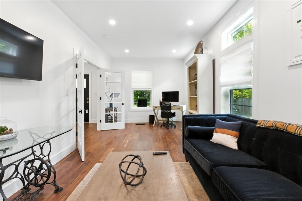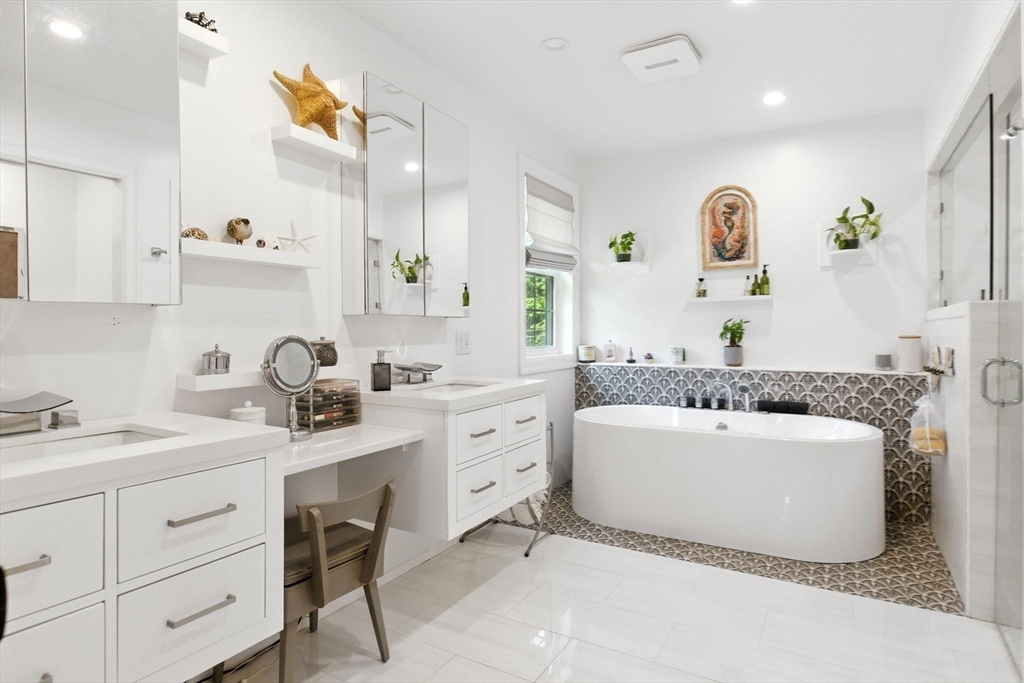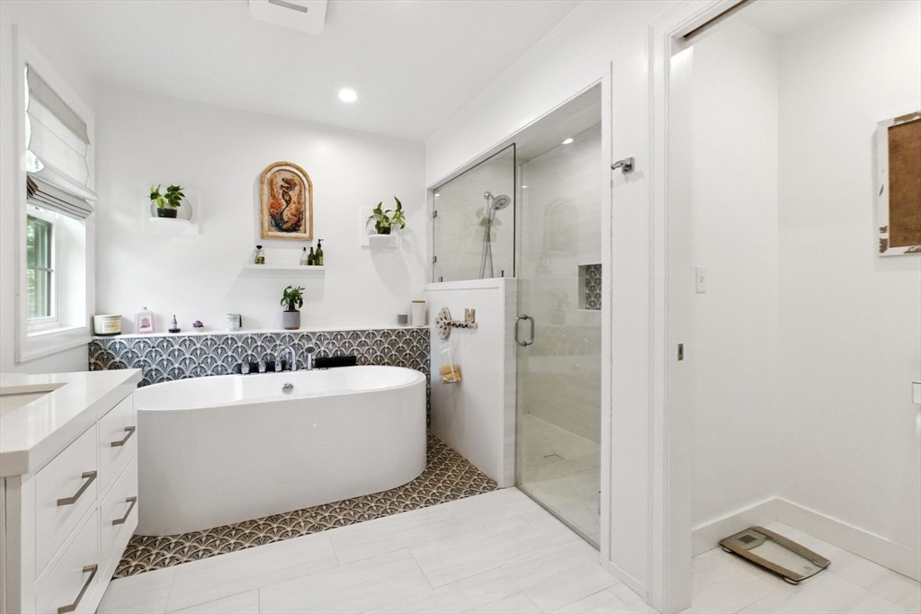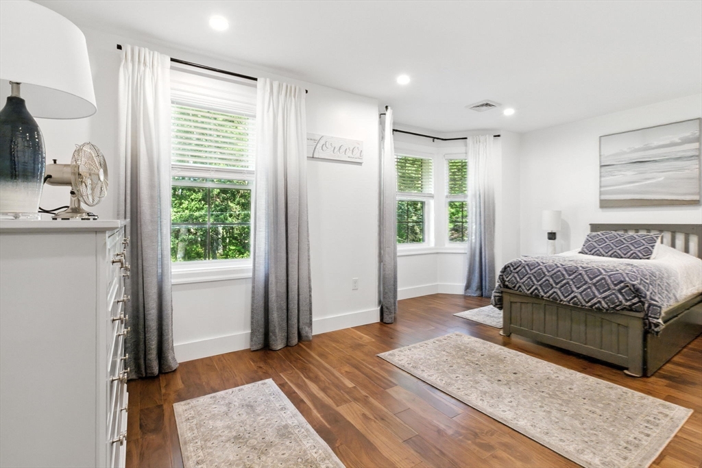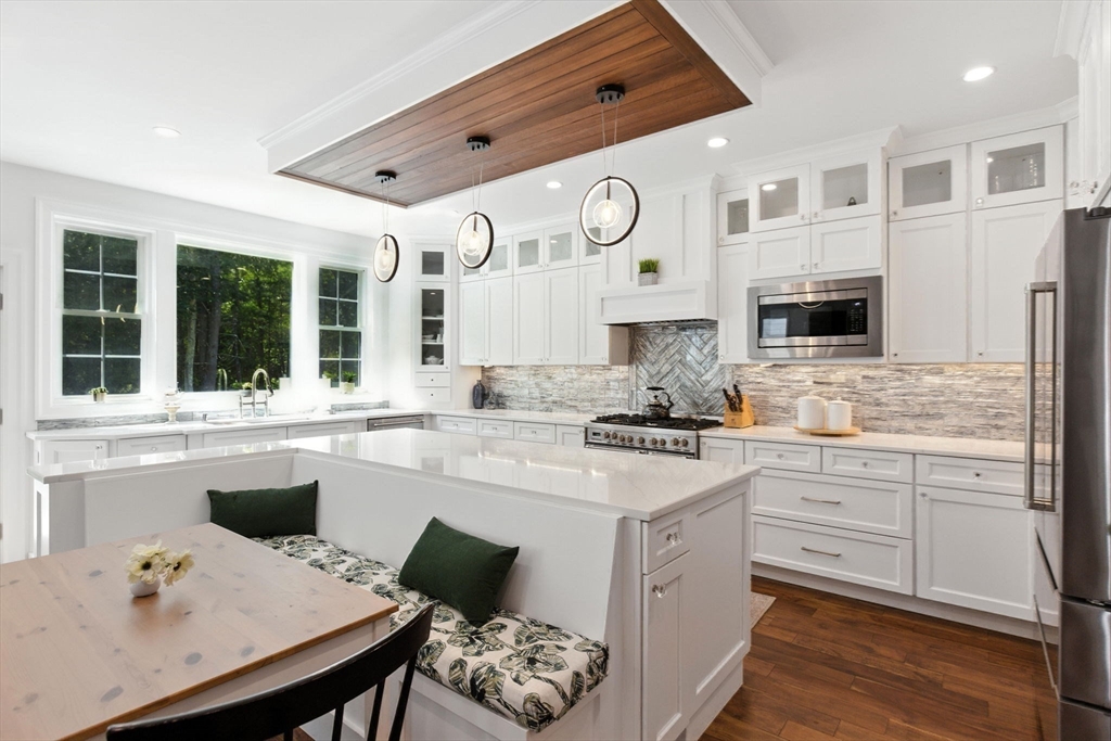 Magnificent 4680 sq ft home set on a scenic road on the North side of Dover. Highly sought after area on the Needham line. Minutes to all amenities + Top Tier Schools. Rare opportunity to own builder's custom designed home w/high end finishes. This 3-4 bdrm, 3.5 bath offers plenty of flexible space to tailor to your needs. 1st floor features an open floor plan w/living rm, dining rm, family rm w/fireplace. French doors lead to a beautiful office or 1st fl bdrm. Chef's kitchen w/European appliances, quartz counters, island w/bench,+ huge custom pantry w/sink + built ins. Upstairs the main bdrm features private dressing rm/closet + elegant spa-like bath w/whirlpool tub/shower/luxury tile. 2 additional brms w/bay windows. 2nd floor laundry + loft. Finished lower level offers more living space, storage,+ another full bath. Detached garage w/finished 500+ sq ft. for office, game room, etc! Huge walk up attic, acacia hardwoods,+ MANY more extras. Serene 1.5 acres abutting conservation land.