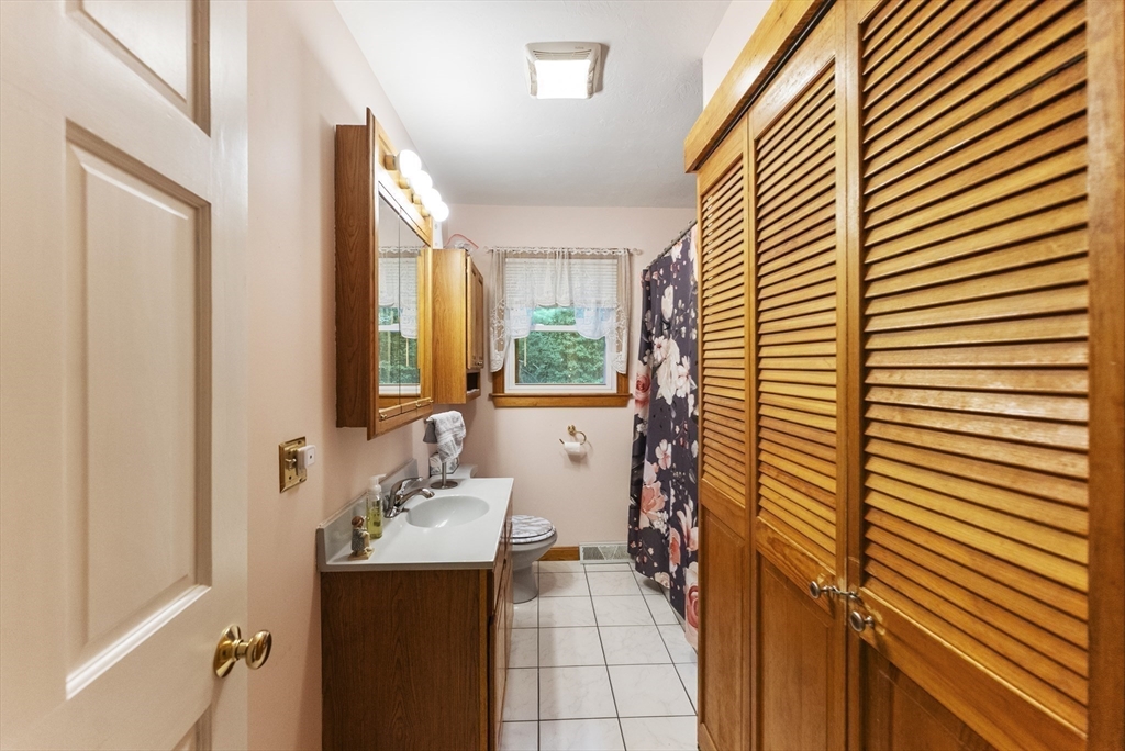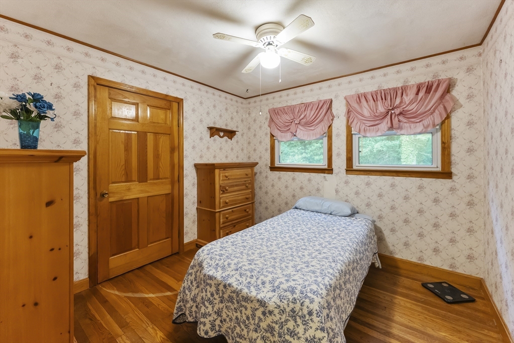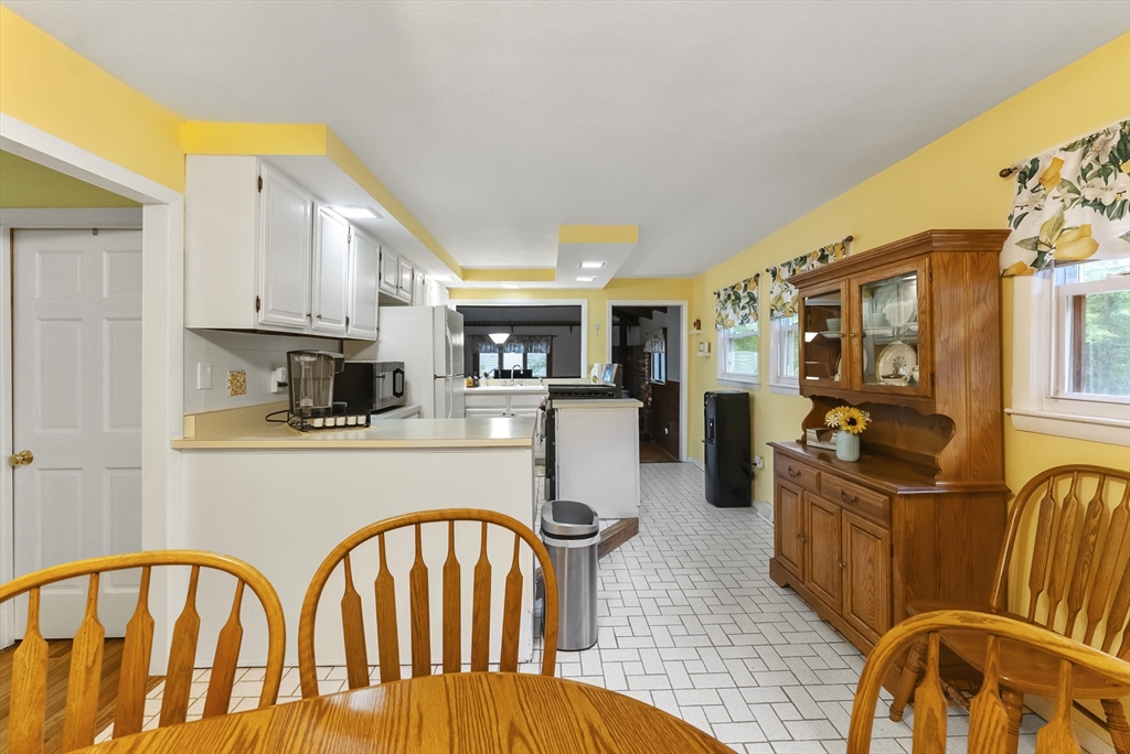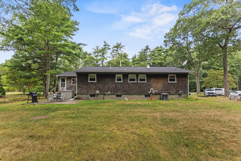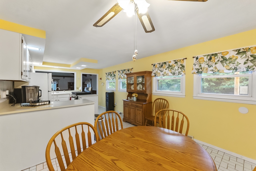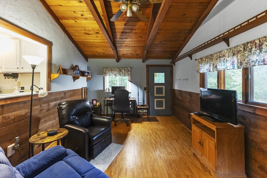 This well-appointed house features approximately 1,380 square feet of living space with three bedrooms and one bathroom. The home boasts a spacious layout with vaulted ceilings, creating an airy and open feel throughout the interior. The hardwood floors in the main living areas lend a warm and inviting ambiance, while the exposed beams add a touch of rustic charm. The generous windows allow for ample natural light to fill the spaces, enhancing the overall brightness and sense of openness. The home sits on a spacious lot, providing a peaceful setting for residents. The hardwood flooring extends throughout the main living areas, contributing to the cohesive aesthetic and durable, low-maintenance one level living. Laundry room is located on the first floor for your convenience New roof 2021 well 2021 Hot water Heater 2021 Water filtration System 2023