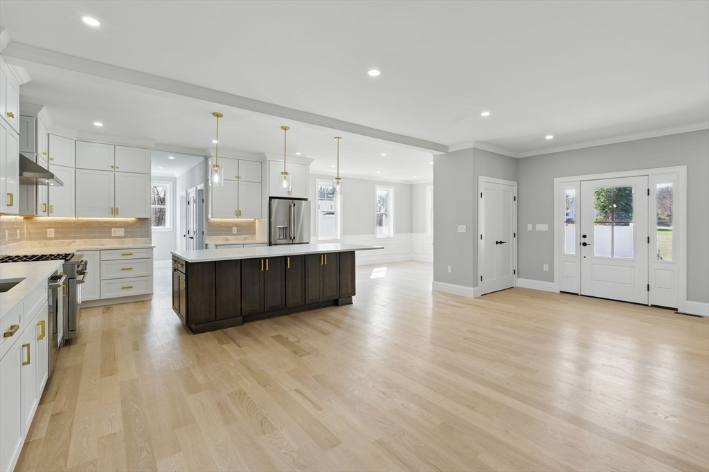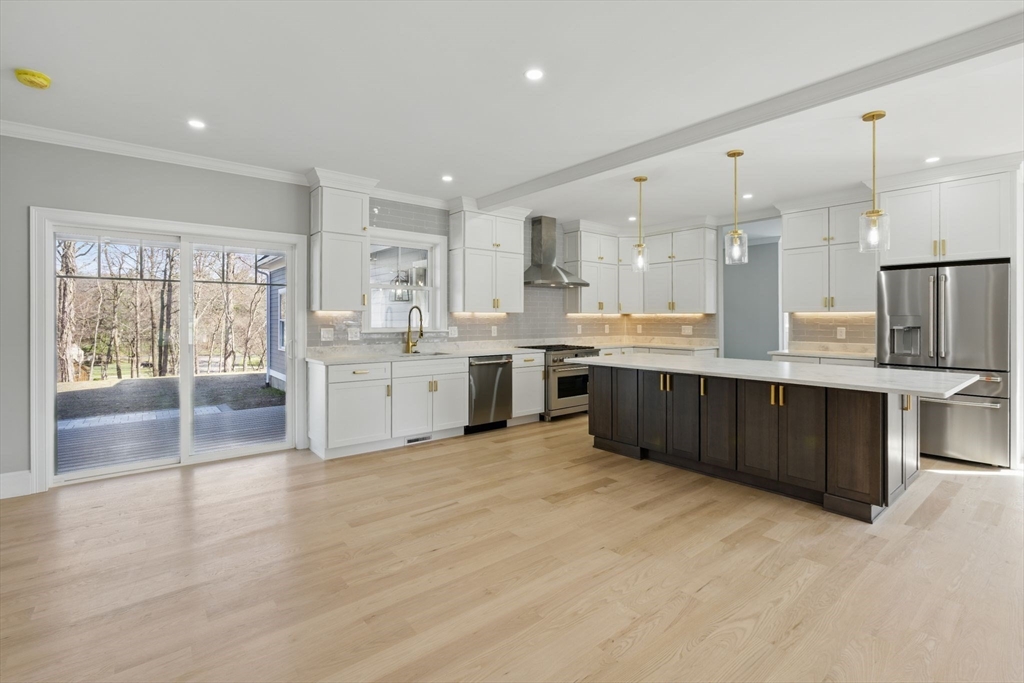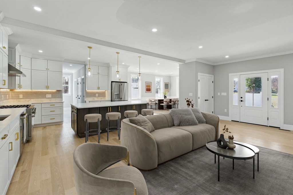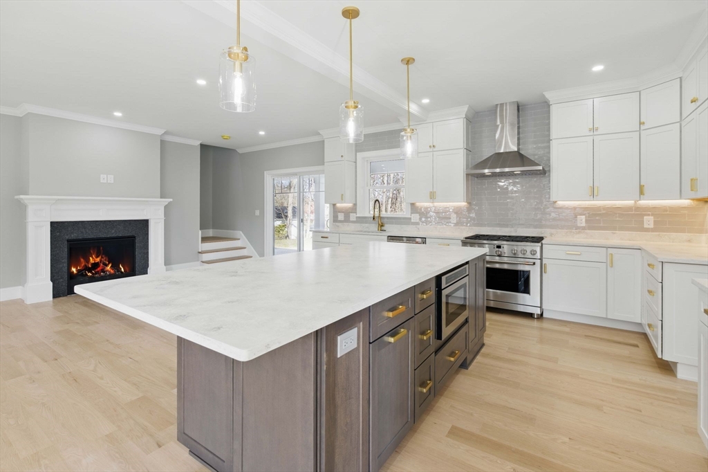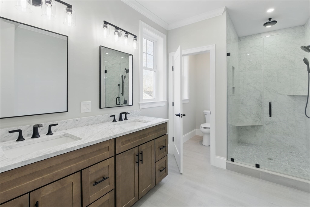 Designed for modern multi-generational living, this exceptional new construction in Danvers’ desirable Prep area offers two luxurious primary suites, one on each level, each with spa-inspired baths featuring marble-topped vanities & rain shower heads. The open-concept main level is ideal for everyday living & entertaining, highlighted by a stunning chef’s kitchen with 8’ island, quartz counters, GE Café appliances & walk-in pantry. A gas fireplace anchors the living area, complemented by a dining space with detailed millwork. Upstairs features a vaulted great room, a spacious landing ideal for a sitting or homework area, 3 additional bedrooms & a finished 3rd floor for flexible use. Additional highlights include radiant heat in baths & mudroom, 5” white oak floors, Hardie siding, a 3-car heated garage, irrigation & roughed-in plumbing in basement for future expansion, all set on a 60,000 sq ft lot with plenty of room for an inground pool. A rare blend of luxury, versatility & location.