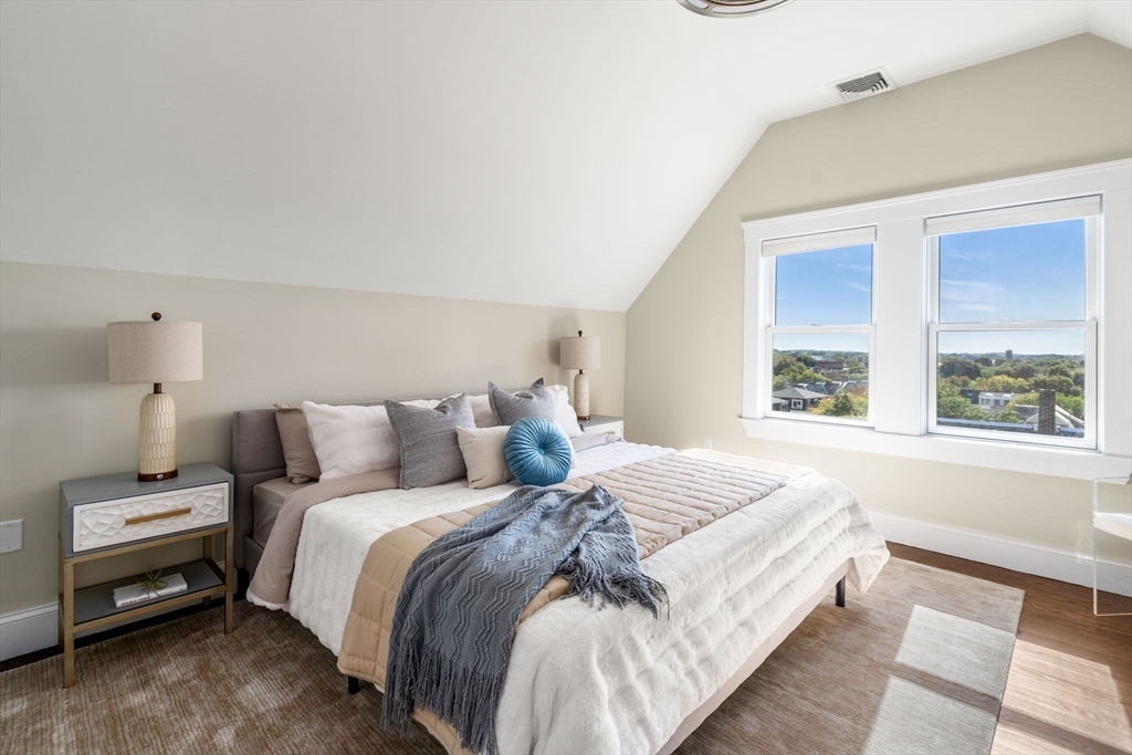 Beautifully renovated two-story townhouse featuring 3 BR’s and 2.5 BA’s offers modern living in a vibrant location. Fully gutted in 2018, with a spacious open layout ideal for entertaining, with a beautiful living room featuring a gas fireplace and dining area. The modern kitchen incorporates stainless steel appliances, granite countertops and a stylish subway tile backsplash. Upstairs, the primary suite impresses w/high ceilings and an expansive bathroom with a glass-enclosed shower.Highlights include 2 private decks, central A/C, in-unit washer and dryer, three deeded parking spots (two on the driveway and one in the detached garage), and ample storage in the unfinished basement. Enjoy your morning coffee on the front deck, relax on the private back deck or grill in the newly redone backyard. This home is conveniently located near Porter and Davis Squares, with easy access to the T (Red Line), the Green Line, shops & restaurants offering the perfect blend of comfort an accessibility
