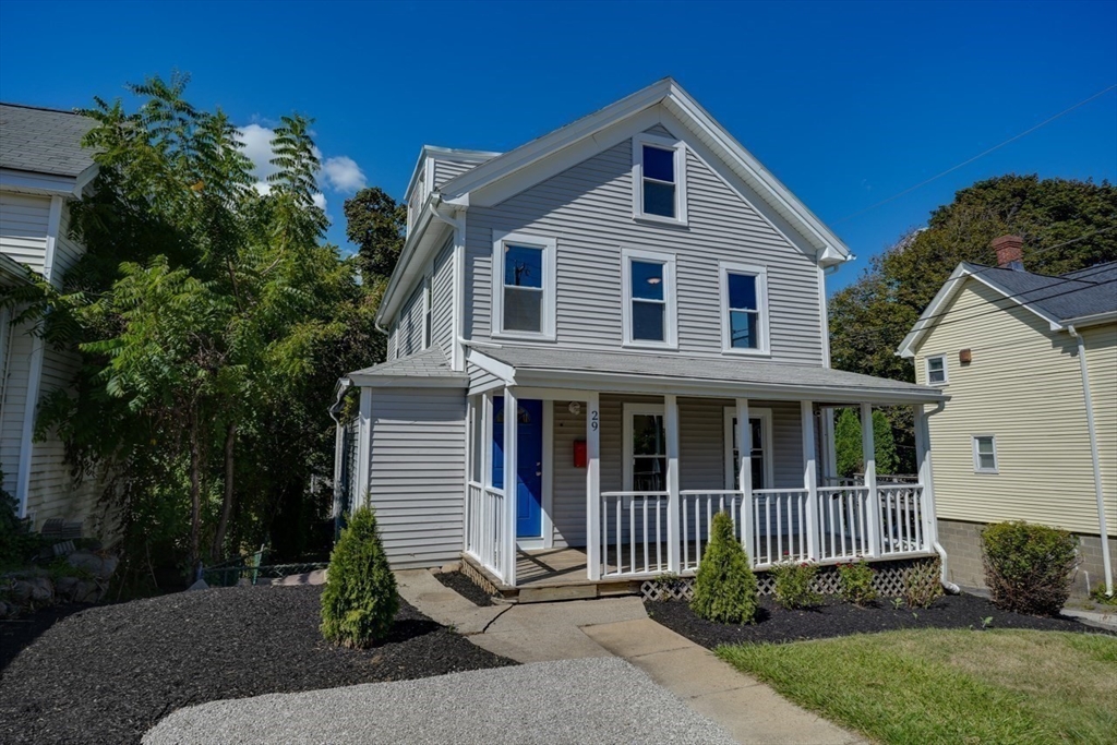 Prepare to be amazed by this beautifully updated Colonial, ideally set on a picturesque corner lot in a popular neighborhood. This home is perfect for first-time buyers with plenty of room to grow. Bright & sunny foyer welcomes you into the tasteful interior featuring 4 bedrooms, 2 full baths, and a finished third level. The wonderful kitchen has custom cabinetry, tile backsplash, stainless steel appliances, cute coffee bar and opens to the sunny 3 season porch. Spacious dining and living rooms-ideal for entertaining. Potential for a first floor bedroom. Gleaming hardwood floors. Walkout lower level. Outside, relax in the fenced backyard perfect for barbeques with friends and family. Carefree vinyl siding with new gutters and replacement windows. 2 driveways offer plenty of off street parking. Easy access to major routes, downtown shopping and dining. 2 miles to AMSA, one of the top MA high schools. A true gem ready to welcome its next owner!