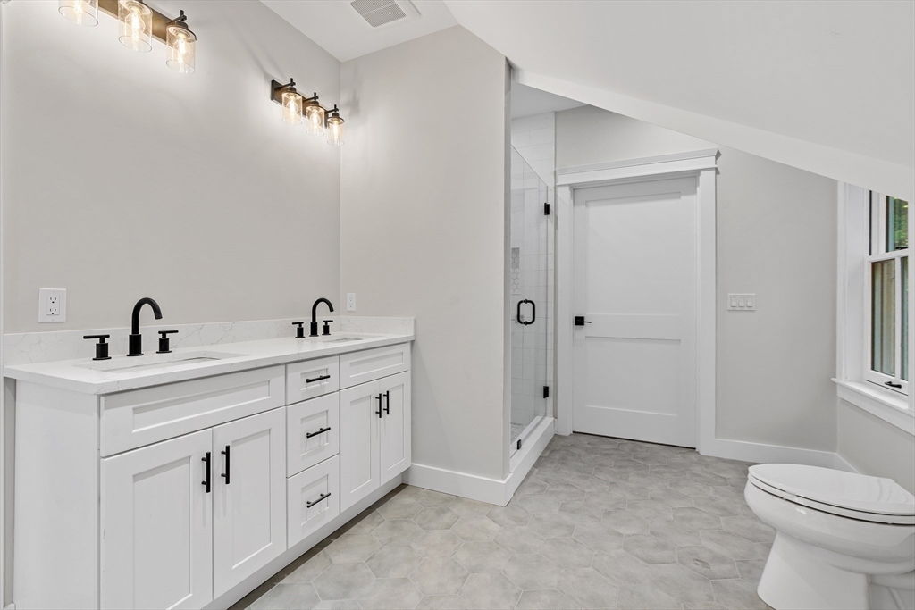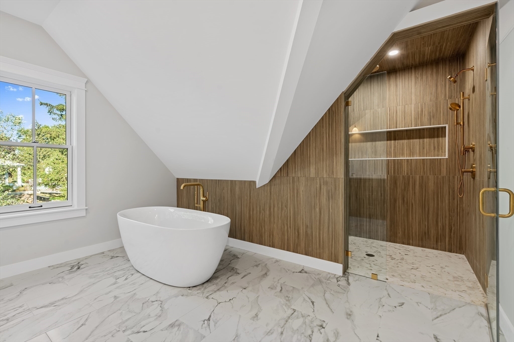 New construction and guy renovation! This gorgeous home offers every modern luxury with nearly 4,500 sq. ft. of living space. Blending brand-new contemporary design with historic allure, the home features a sun-filled open floor plan with chef’s kitchen boasting custom cabinetry, quartz countertops, professional appliances, a massive island, and a walk-in pantry with wine fridge, sink, second dishwasher, and storage. Spacious dining and living rooms showcase hardwood floors, while a dedicated first-floor office provides the perfect work-from-home retreat. The vaulted-ceiling primary suite includes two walk-in closets and a spa-like bath with soaking tub, oversized shower, and double vanity. Four bedrooms all ensuite baths, with a laundry room completing the second floor. A finished lower level with full bath offers flexible living space. Exceptional outdoor living with covered porches and stone patio. Oversized 2 car garage. Close to commuter rail, schools, trails