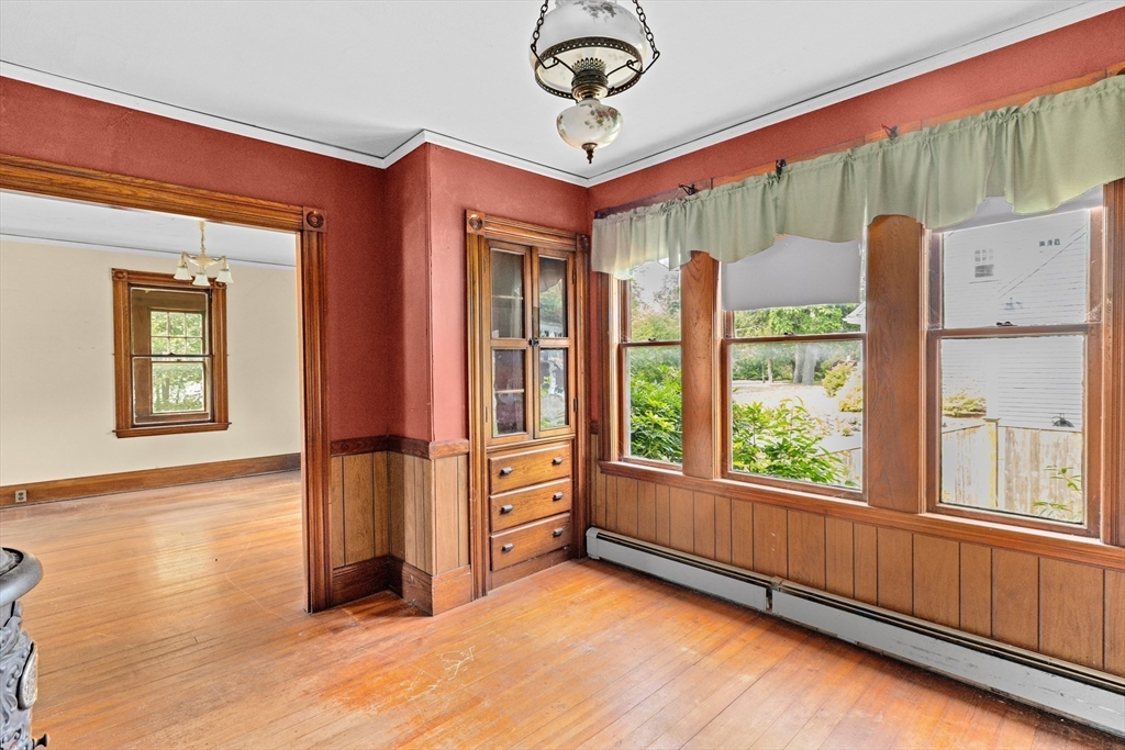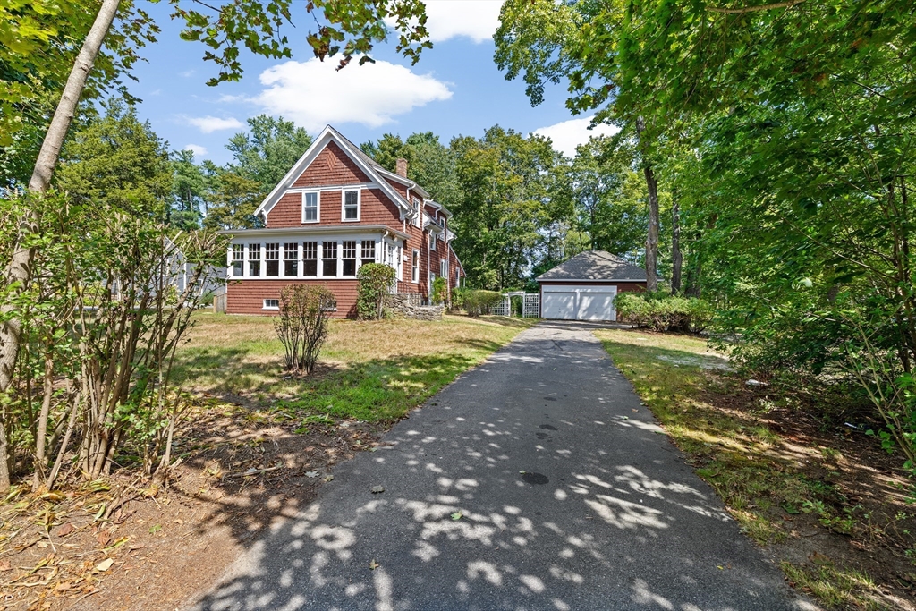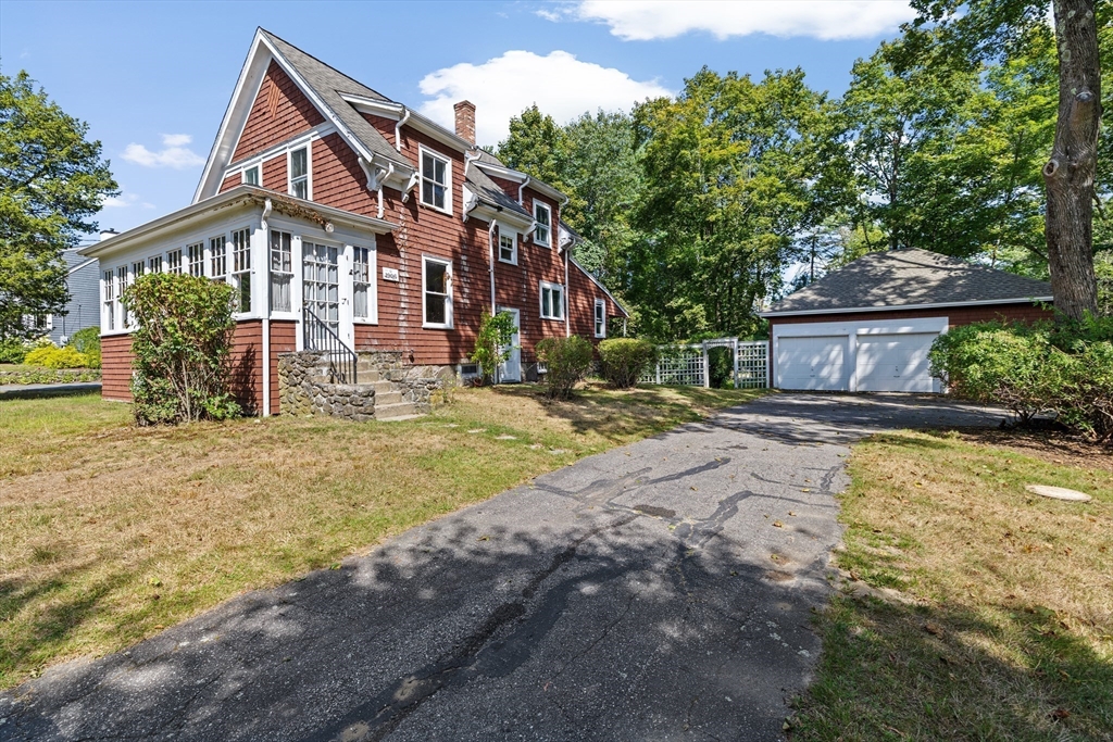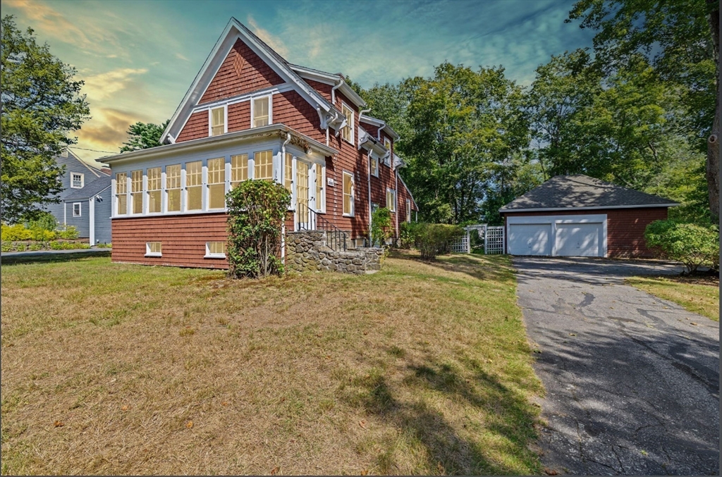 Septic engineering complete and approved ! Filled with potential ! Nestled on a lush half-acre in Norwell’s Ridge Hill, this Craftsman Colonial Farmhouse blends timeless character with modern potential. Handcrafted woodwork, intricate moldings, and hardwood floors flow throughout, while oversized windows illuminate the living and dining areas. A bright four-season sunroom overlooks serene wooded grounds—ideal for morning coffee or evening gatherings. The country-style kitchen offers abundant storage and counter space and opens to the dining area for effortless entertaining. Upstairs, three bedrooms provide peaceful retreats. The expansive lofted barn offers potential as well. A circular driveway with dual access from Oak and High Streets enhances convenience, and sidewalks lead to Cole Elementary. Brand new septic system to be installed. Minutes from highways, commuter rail, top-rated schools, shops, and restaurants, this distinctive home is close to everything Norwell has to offer !