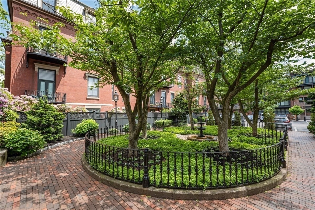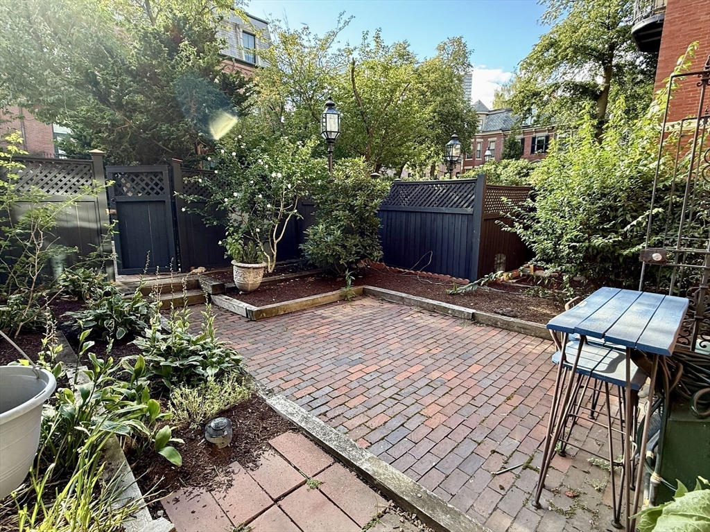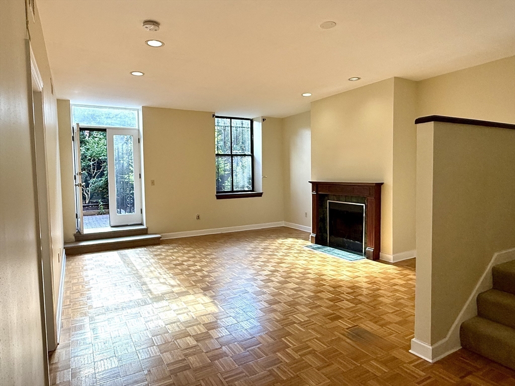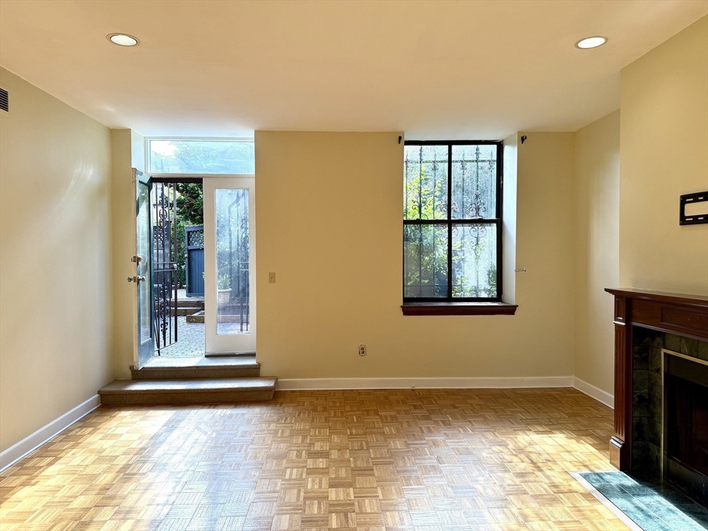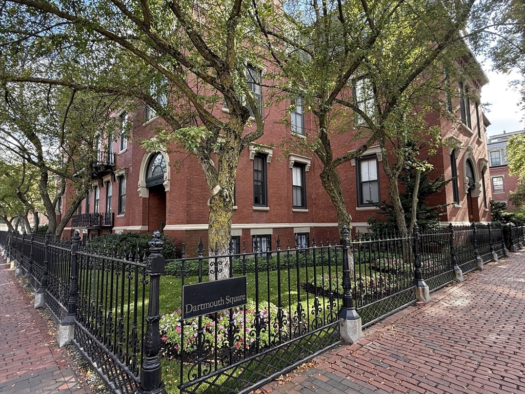 Available NOW - 1 Bedroom + Den, 1.5 bath with Private Patio, AC, in unit laundry w/1 direct access off street parking -- Welcome to Dartmouth Square, a coveted address nestled on a charming cobblestone street in Boston's Historic South End. Step inside to a spacious fireplace living room with sunny windows that frame views of your PRIVATE PATIO and the beautifully landscaped, iconic Dartmouth Square. The thoughtfully designed layout includes one large bedroom with an ensuite bath and generous closet space, plus an elevated loft-style den perfect as a home office, guest area, or flexible bonus space. Additional highlights include counter-height seating in the kitchen, Central AC, and the convenience of an IN UNIT WASHER/DRYER. Enjoy easy access to both the South End and Back Bay, with world-class restaurants, shopping, Back Bay Station, easy highway access and more. ESA/SERVICE DOGS ONLY - Condo association does not allow tenants to have pets.