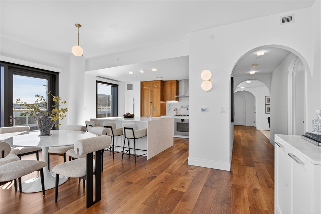 Live right on the water’s edge in this spectacular corner unit at The Residences at Pier 4! Significant upgrades throughout! Full service luxury living w/ walls of windows, unobstructed water views, 2 garage parking spaces w/ valet option & a private direct access balcony. Lavish, contemporary entertaining space w/ an expansive living room w/ newly finished Italian walnut floors & floor-to-ceiling angled windows. Gourmet kitchen complete w/ Gaggenau appliances & a stylish combination of white and wooden cabinets that complement the new marble countertops, marble sink & oversized waterfall island. Large primary suite w/ Carrara marble bathroom, double vanity, large shower & tub & a custom-designed closet. Complete with 2 additional bedrooms and ample storage. All entryways & doors have been enlarged & arched! Amenities include 24hr concierge/valet, gym, private residents’ lounge w/ gas fireplace, kitchen & adjoining terrace w/ grill, fire pit, virtual golf & dog spa. Awe-inspiring!