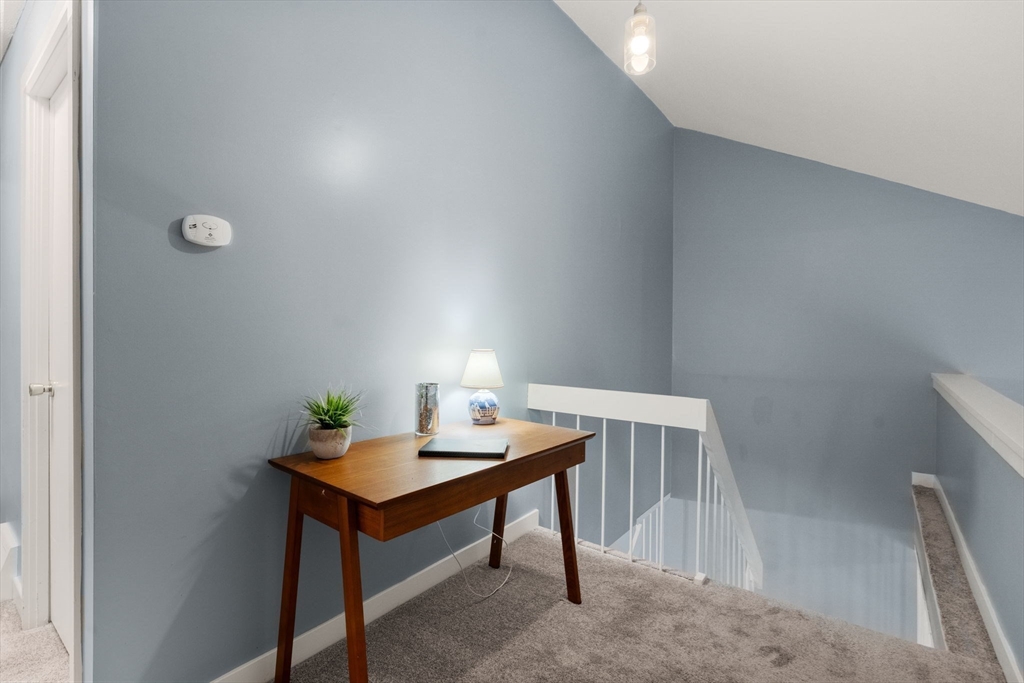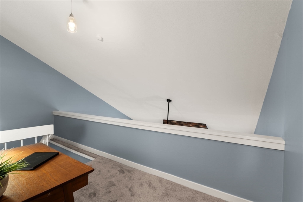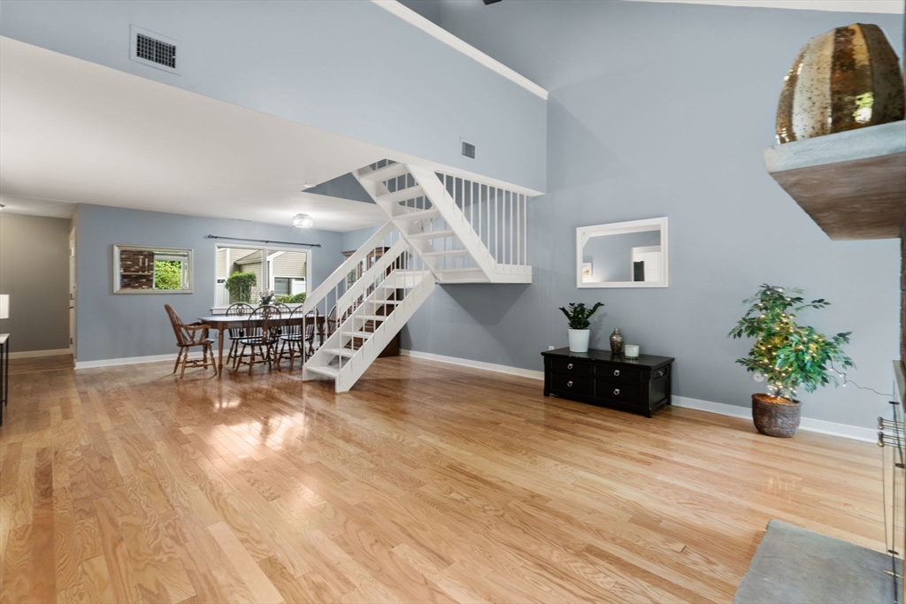 Price drop is your golden opportunity! Terrific value in this this well-maintained stylish Townhome in pretty Pinebrook Village. The open concept plan offers a great big living and dining room with soaring cathedral ceilings, large windows and sliders leading to a private backyard overlooking woods. The eat-in kitchen has updated white cabinetry, countertops, lighting, and stainless-steel appliances. Upstairs are two good sized bedrooms plus a neat loft perfect for an office or a quiet reading nook. Both bathrooms have been updated and feature an in-unit laundry and there is plenty of space to spread out! This unit 509 location is at the back of the complex close to your 2 parking spots. Centrally located with easy access to major routes, shopping and restaurants – you will love coming home! The swimming pool and club house are another plus! Come See!