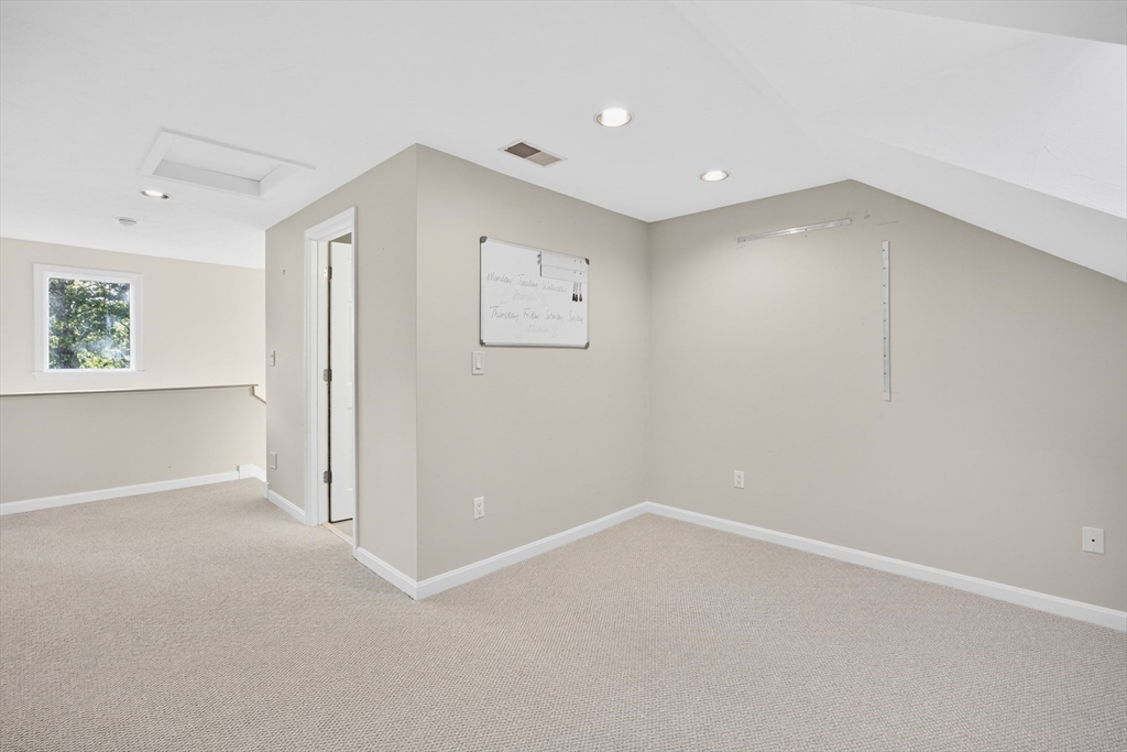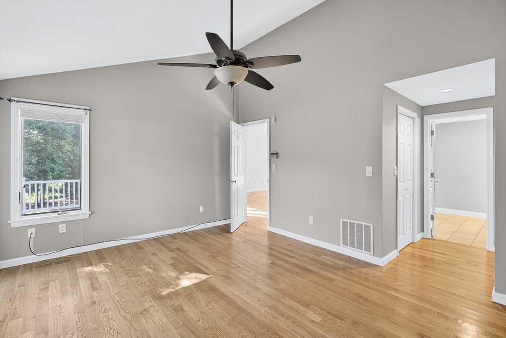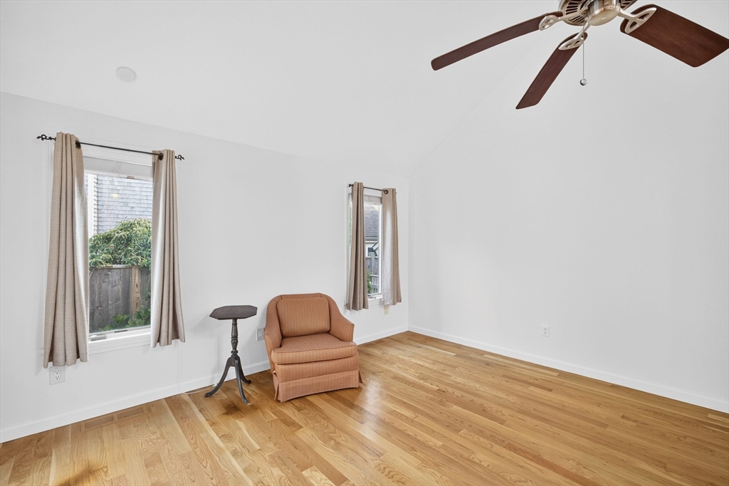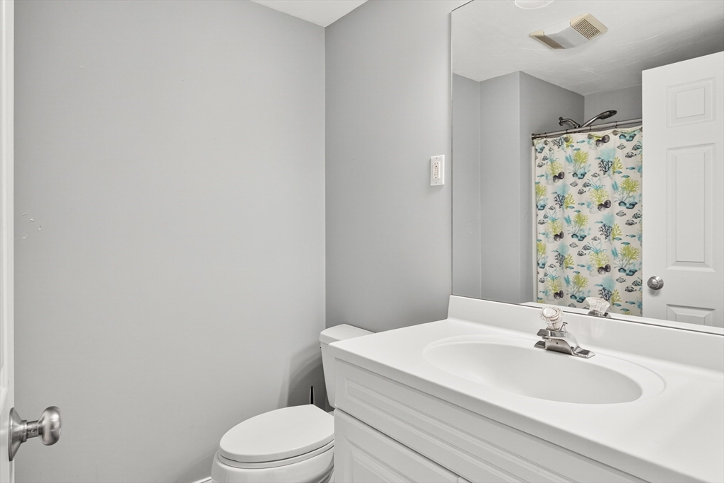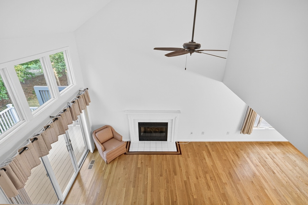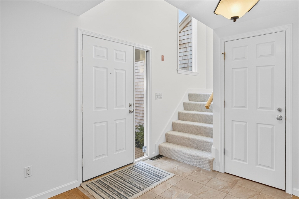 Welcome to one of Kings Way’s most desirable residences—an elegant “H” style end unit with 1,829 sq ft on a private cul-de-sac bordering conservation land. Among the community’s largest layouts and one of its newer buildings, it enjoys a premier location overlooking the 11th hole. A private courtyard leads to a light-filled open floor plan with cathedral ceilings, skylights, and floor-to-ceiling windows. The living room with gas fireplace flows to a kitchen with cherry cabinets, granite counters, updated appliances, pantry, and direct access to the oversized two-car garage with new doors. The first-floor primary suite is handicapped accessible, while a brand-new wraparound deck and patio extend the living space outdoors. Upstairs offers a second bedroom, full bath, and loft, with a walkout lower level and cedar storage ready to finish. With abundant closets, new carpet, and resort-style amenities, this rare offering combines comfort, style, and lifestyle at Kings Way