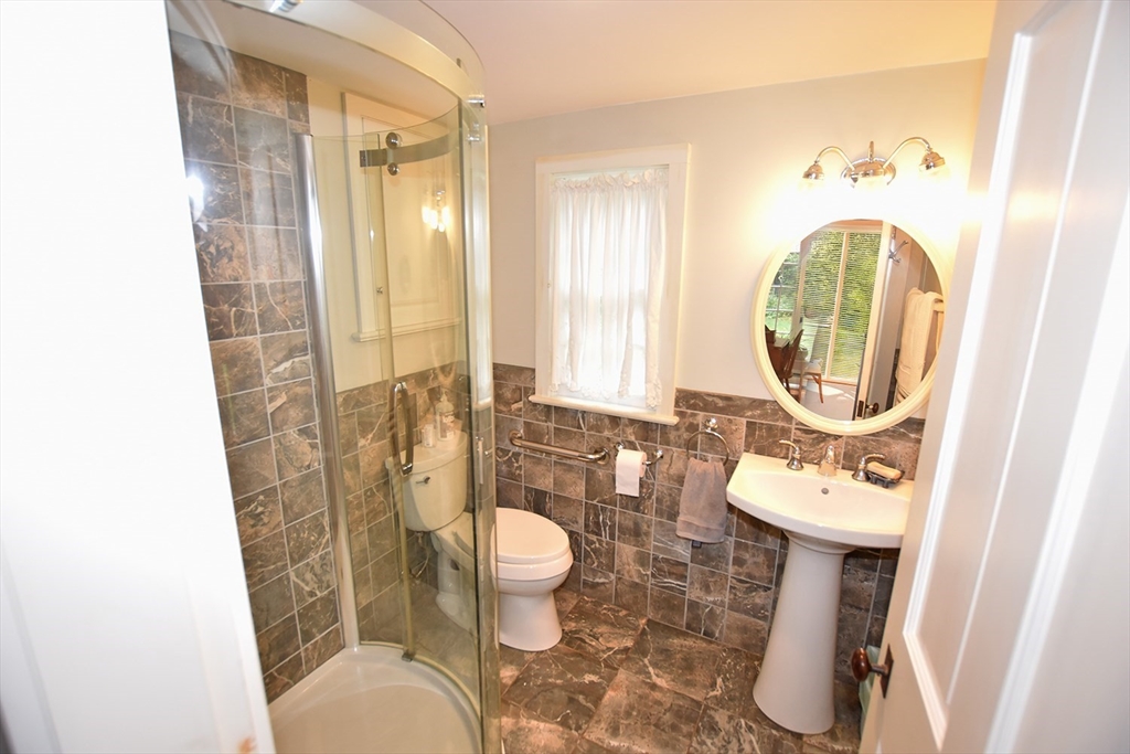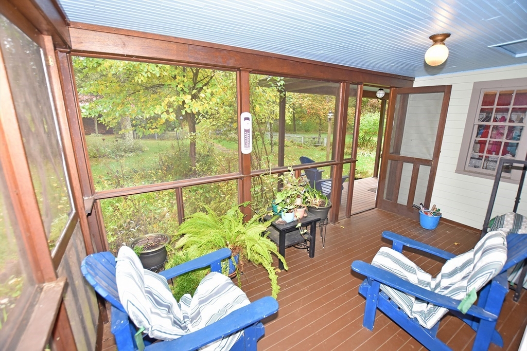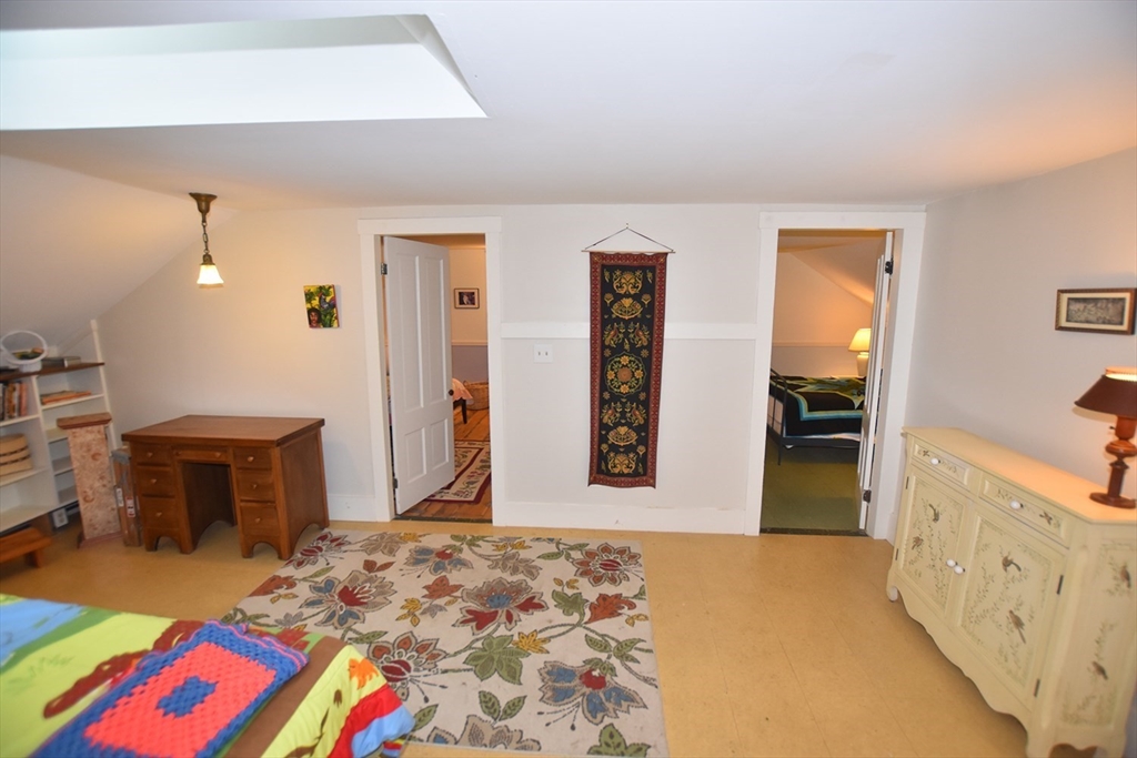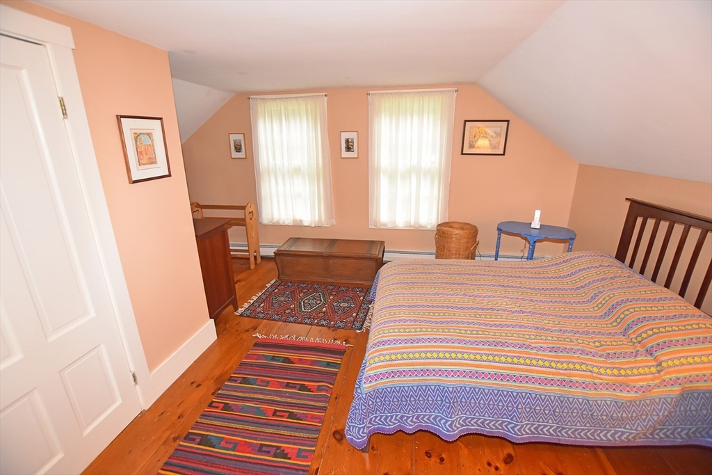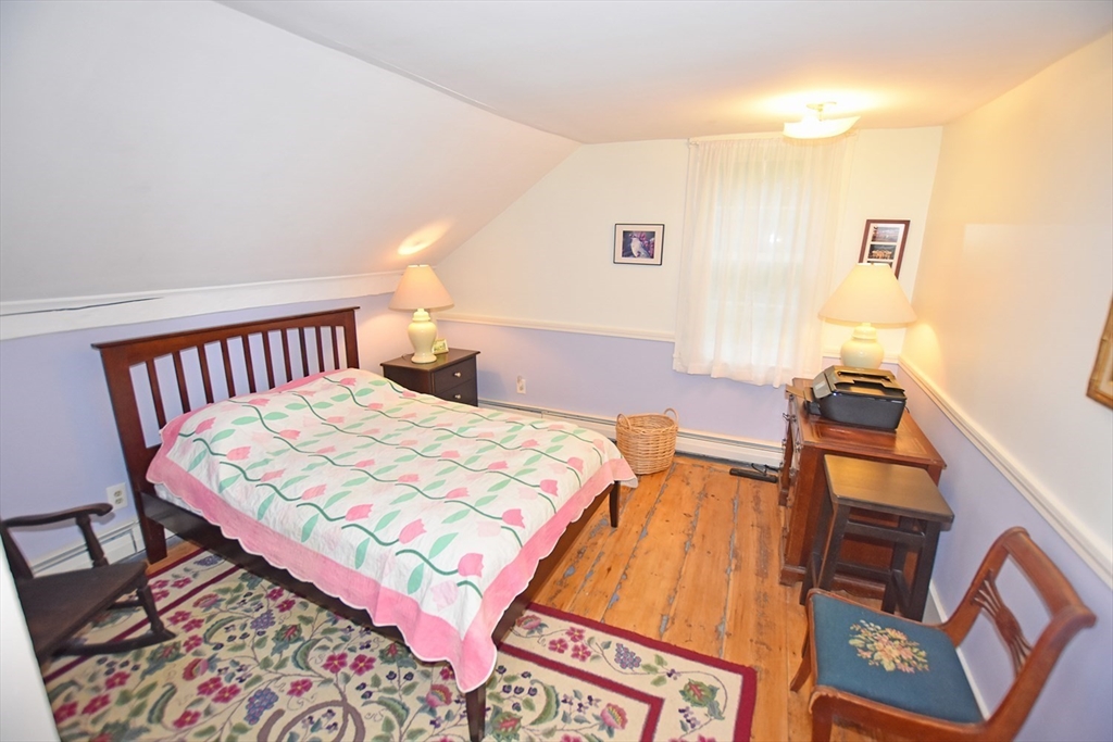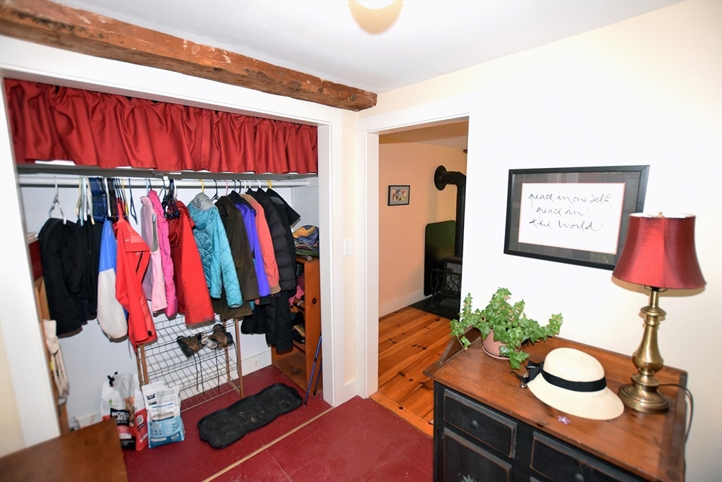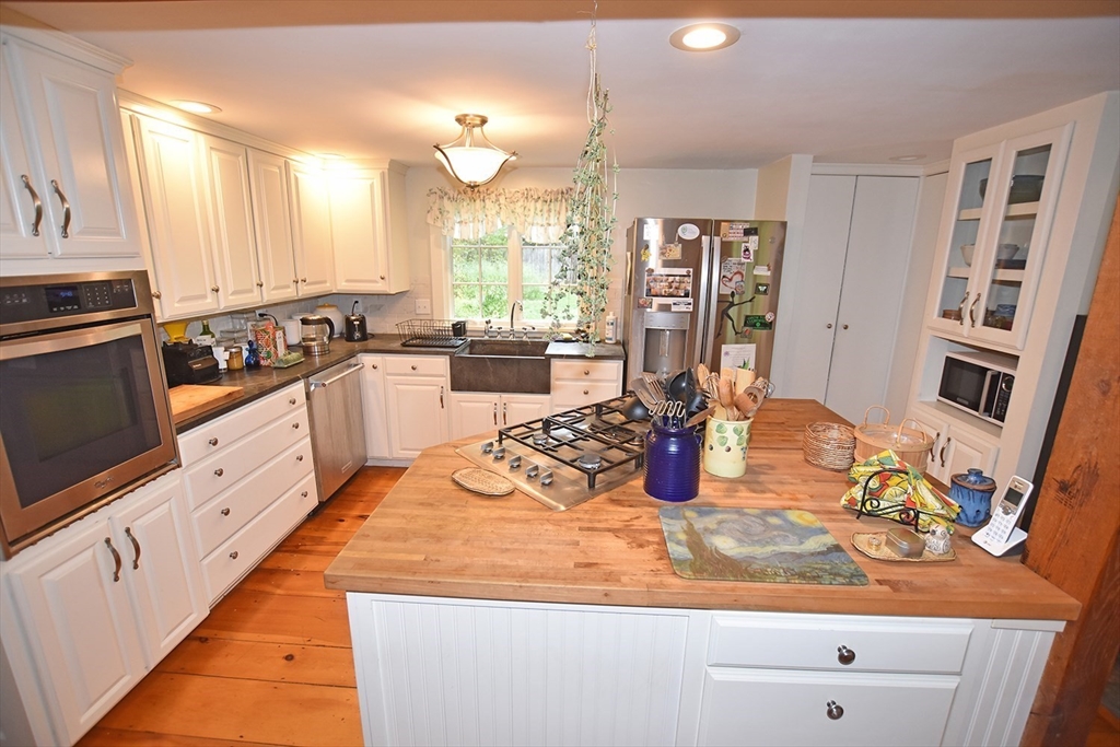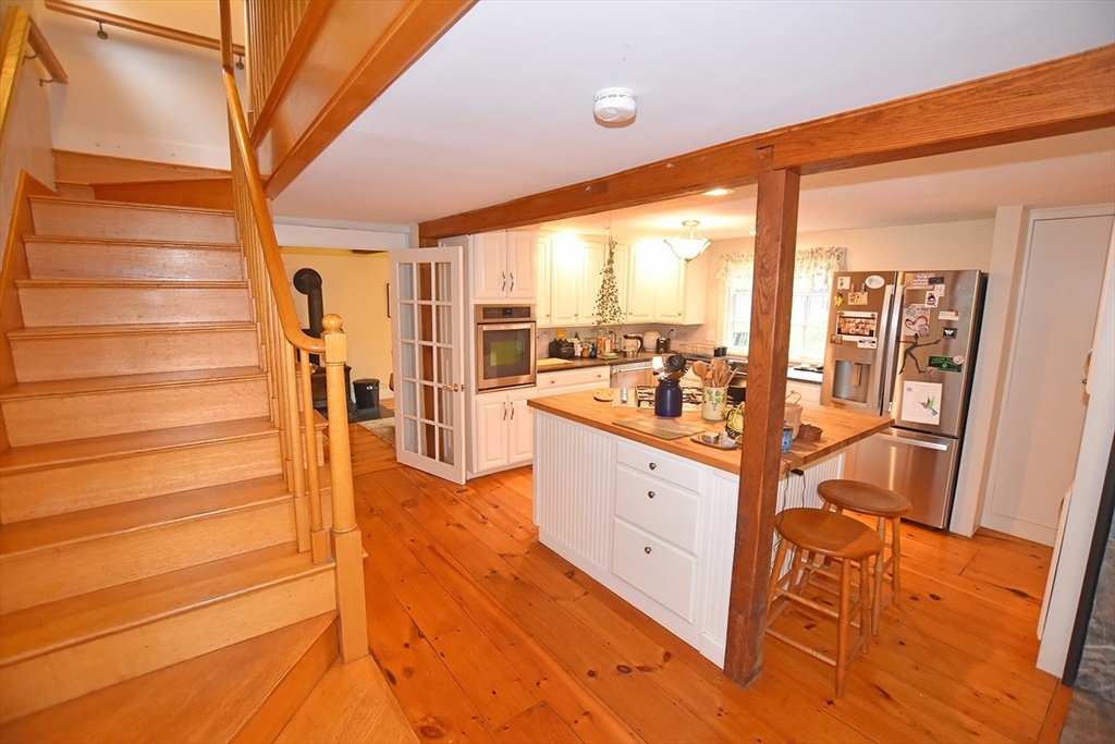 Antique warmth meets state of the art systems. The front of this house is a post and beam antique with a beautiful stone fireplace that has a recent wood insert, sitting room, Living room and dining room with two bedrooms and a bath upstairs. The framed addition in rear has a modern kitchen and bath and master bedroom upstairs. Both baths have been recently updated as has the kitchen. Very recent post and beam garage has storage and solar panels on roof that supplement panels placed at edge of field earlier. Basement has newer Buderus boiler, hybrid hot water heater and a battery storage system to supply the house when power goes out that has its own subpanel to critical house services like heat, water, fridge and lights. Screened porch off the kitchen is mahogany, patio outside dining room is Goshen Stone. Two more outbuildings have potential for horses and guest cottage. Meadow of over an acre is an opportunity for equestrian use. Swift River reservation land is across the street.