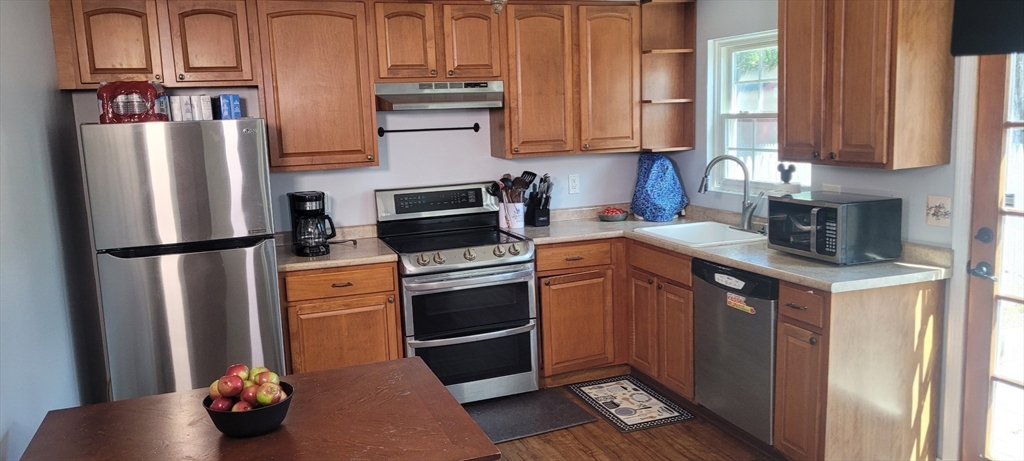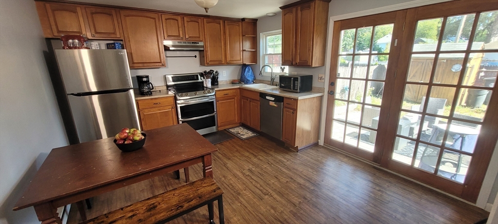 Open House Sunday Sept. 28th 12 to 2 Affordable well kept condo with 4 rooms 2 bedrooms and 1.5 baths. The rooms are spacious with a simple but accommodating floor plan that has a Southeastern exposure in the morning to a northwestern exposure by dawn that welcomes added sunlight into the rooms. In unit washer/dryer, private fenced yard with stone patio and shed and Stainless Steel appliances pull down attic and guest parking. Cook till your heart is content with the double oven in the kitchen. New solid interior door installed 2 years ago. Beautiful hardwood stairs leading to the upstairs. Near parks and marinas along the Merrimack river. Simple access to routes 113 and 97 leading to route 95 and MBTA to Boston. Walk to the Groveland Estates swimming pool. 10 minute walk to Riverside Park and Haverhill Stadium. Shopping center is less than 5 min away. Groveland Estates is a quiet community. Seller to pay $5,000 towards buyer's closing costs. Last condo sold for $390,000.