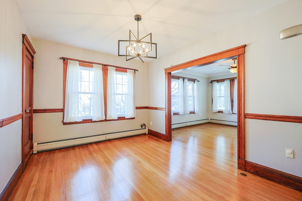 HOUSE FOR RENT GIVES YOU SPACE & PRIVACY. Perfect for 2-3 roommates, families or you. Don't cramp your style--you can rent here and it will feel just like home. OPEN CONCEPT LIVING with large living room, formal dining, eat in kitchen, and private, grassy area for fun and back yard cookouts. VERSATILE ROOM IN BASEMENT gives you a possible third roommate, den, playroom or office or storage. Washer and dryer on site for your convenience. Close to area schools, gym, downtown shopping, library, and amenities. Minutes to commuter rails and/or access to highways Route 1 and 95 as well as bus make this a perfect opportunity to be car free for the winter. Located in quiet residential neighborhood with plenty of privacy. Tenant responsible for utilities, snow removal & landscaping. Owner pays water. PETS/ONLY DOGS ARE NEGOTIABLE. Yours to enjoy for a DECEMBER/JAN move-in date. TEXT LISTING AGENT TO TAKE A LOOK