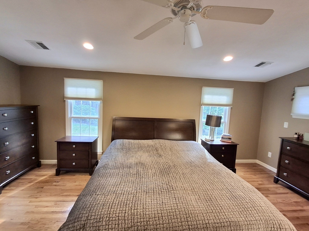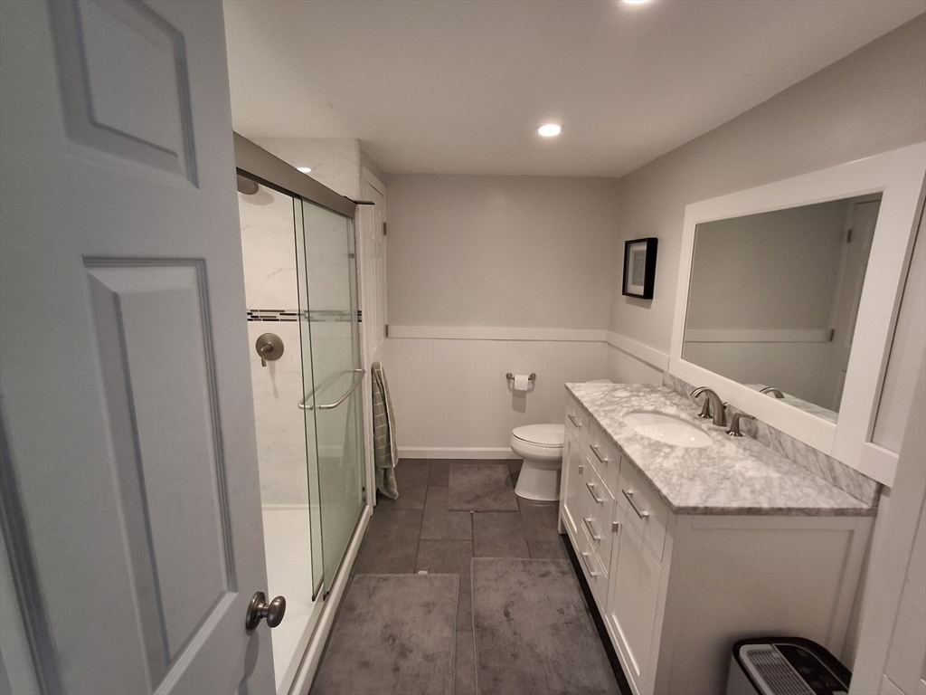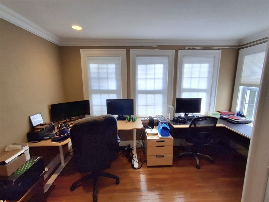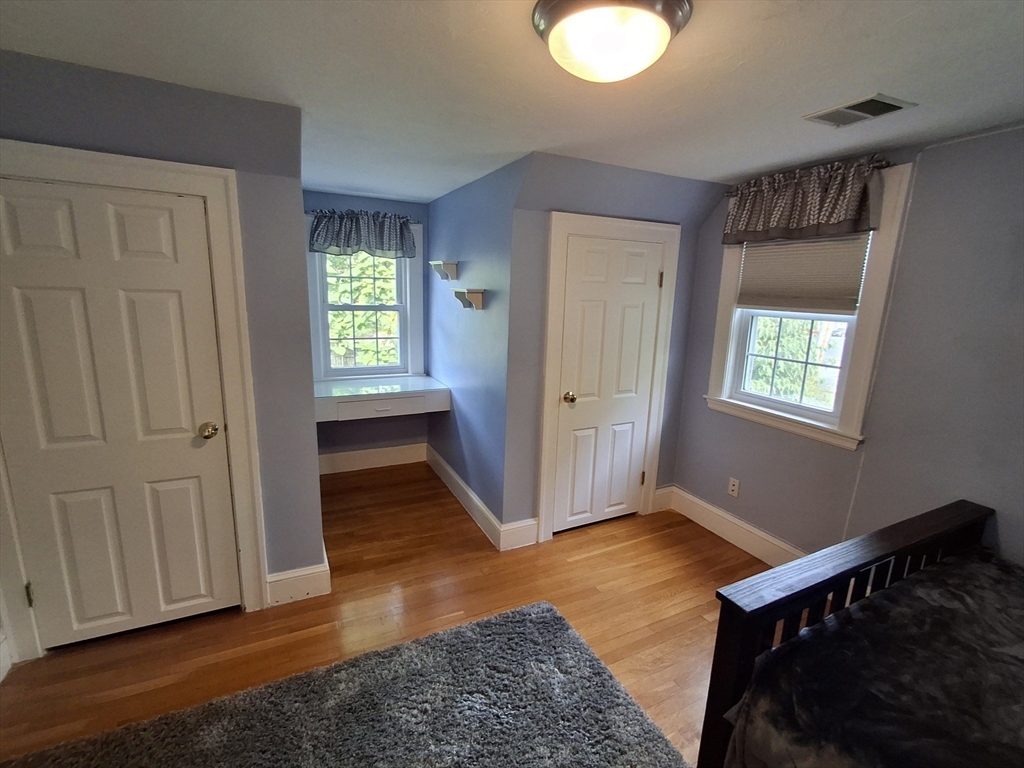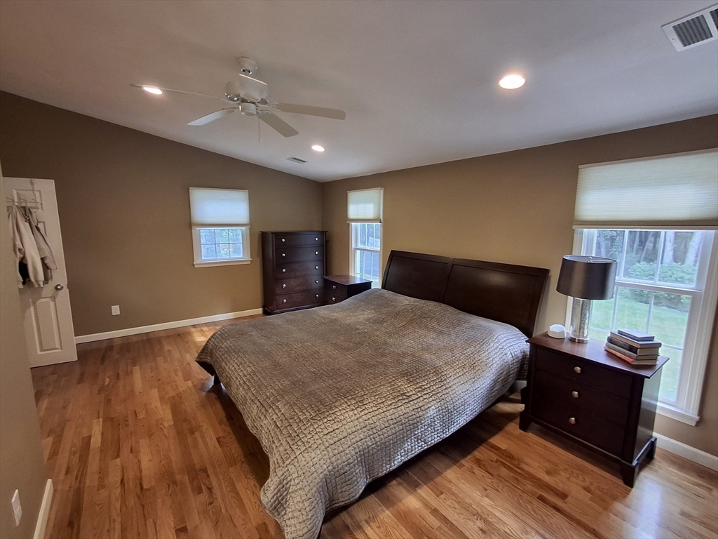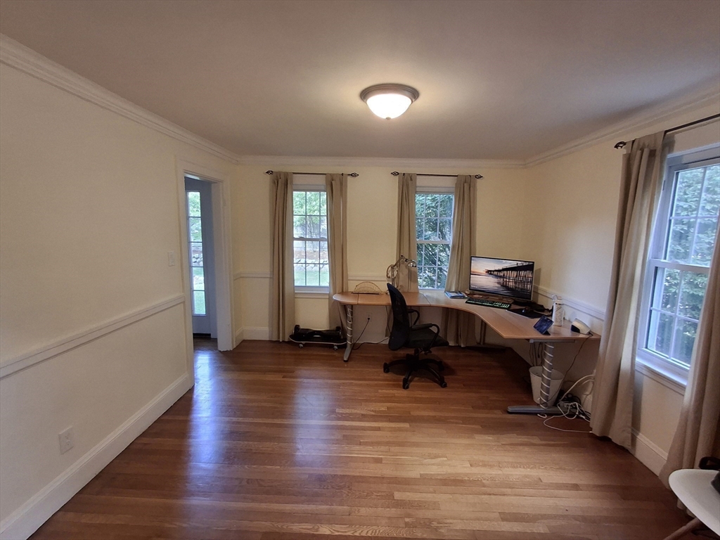 Tucked away on a private road off route 2, minutes from Cambridge and Boston, this unique home was designed with architectural flair & elegance. Built on a large lot, walls of windows and skylights fill the house with natural daylight. On over a wooded acre that borders conservation land beyond, you'll feel like you're in a secluded getaway. The loft-style construction allows for a flexible open floor plan, soaring ceilings, & energy efficiency. Central AC & gas heat. The kitchen leads to an outdoor deck overlooking the pretty backyard. The 1st floor has an office, half bath, living room, dining room and family room. The upper level has 4 bedrooms connected by a full bath, with a double vanity and a glass shower. The 2 car garage leads to a mudroom with laundry and plenty of storage plus a full bathroom and bedroom. Close to Lincoln' schools, conservation, trails, and Minuteman National Park,