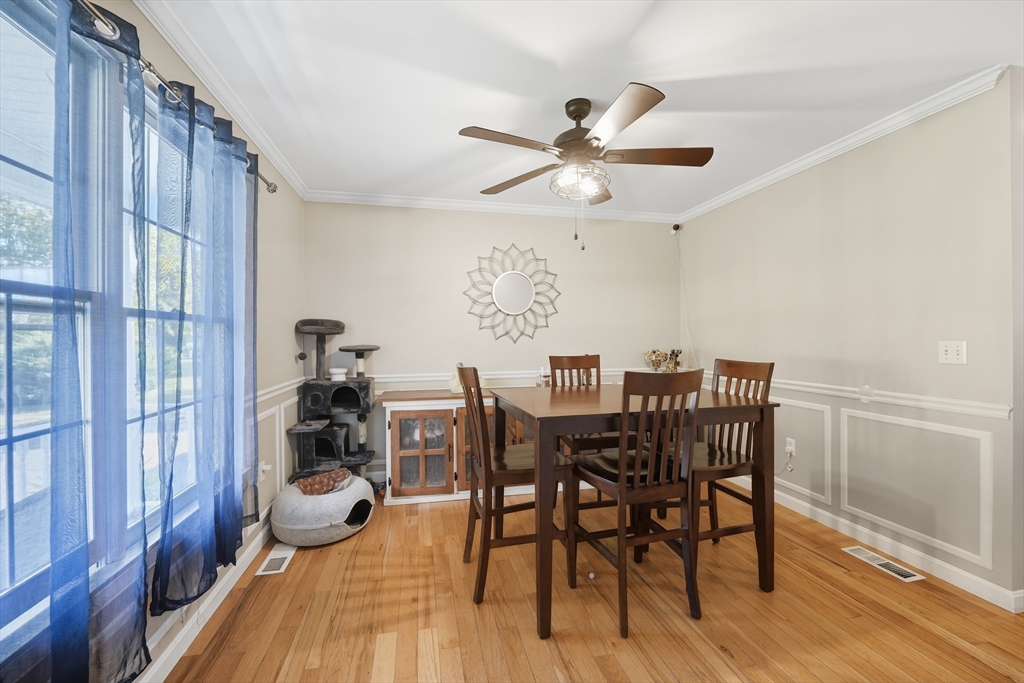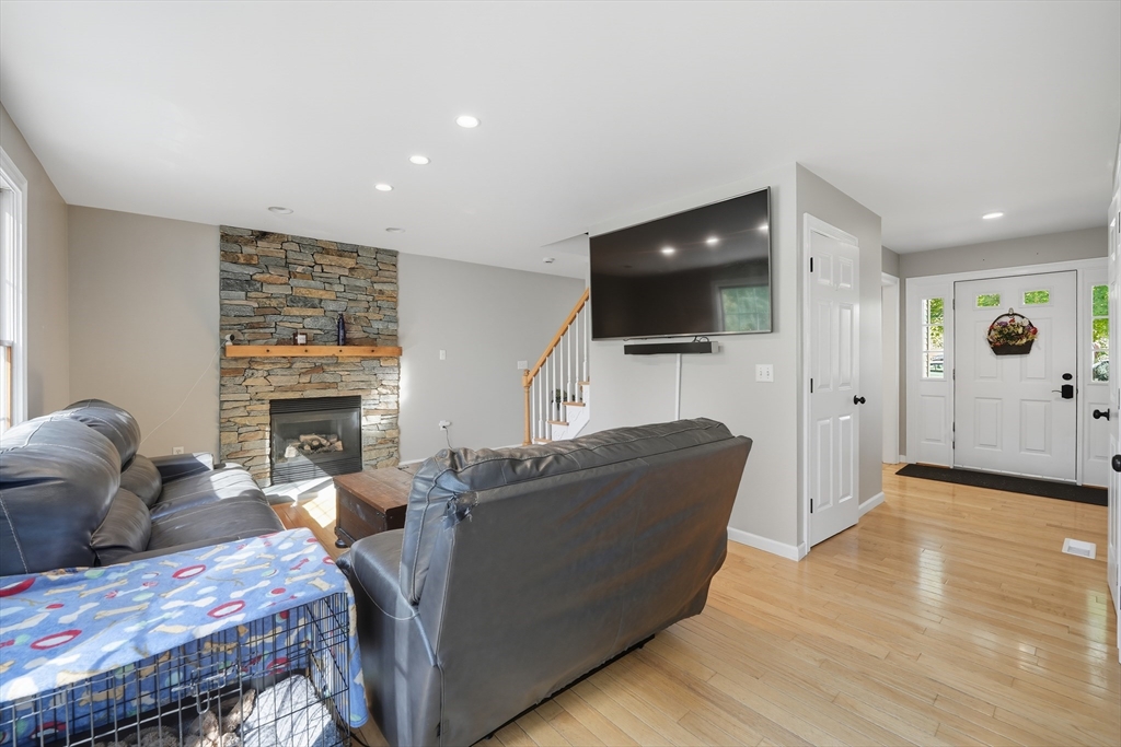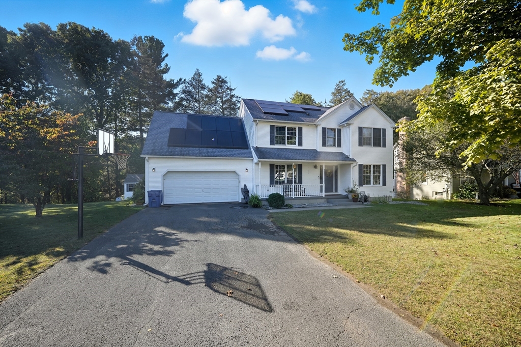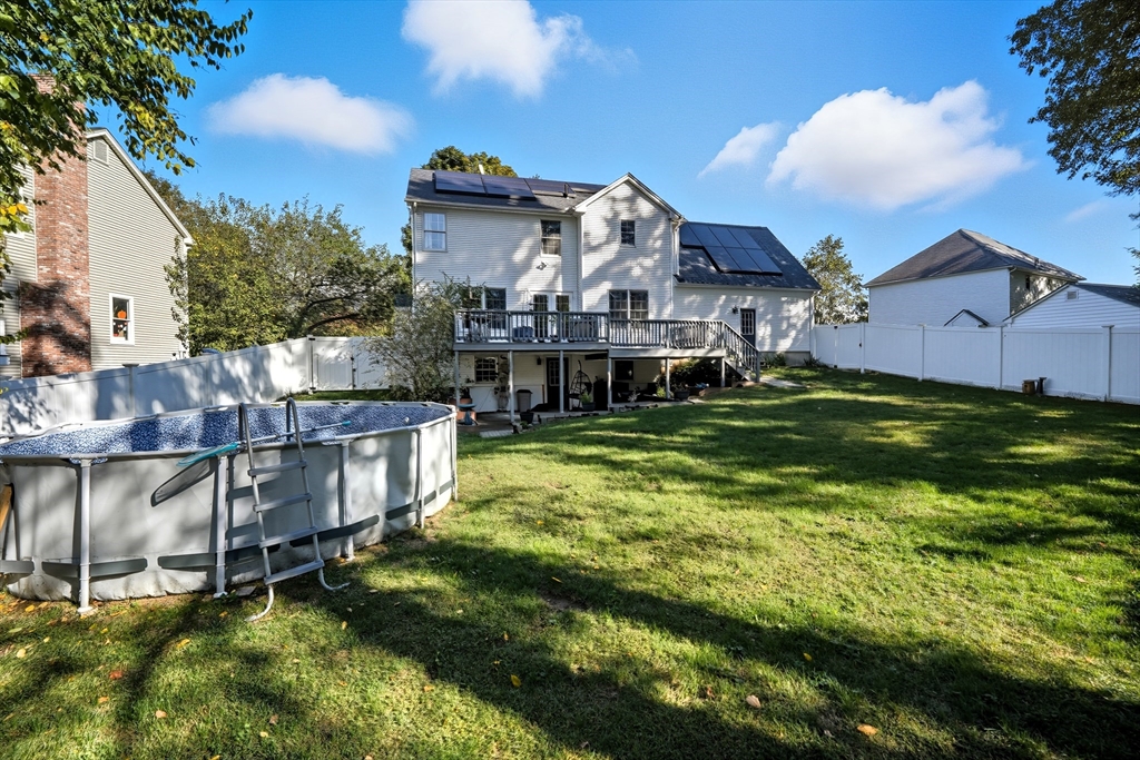 BOM! Buyers walked last minute! 31 Woodland Ridge Rd., located on a cul-d-sac in a charming sought after neighborhood. This single-family Center Hall Colonial boasts an entrance leading to a "refreshed" kitchen with upgraded counter tops w/ss appliances and a convenient pantry. A warm fire in the stone hearth gas fireplace invites you to the living room. Atrium doors lead you to a dual deck for dining /relaxing atmosphere. A den/office located just off the living room. The formal dining area w/gleaming wood floors throughout offers crown molding and decorative woodwork. First floor half bath. Second floor full bath , 4 bedrooms all w/hardwood floors, Main bedroom w/full bath,dual closets, walk-in closet. Walk-out basement offering finished bonus room opening to covered patio viewing the vinyl fenced-in private backyard having two sheds.Painted int.(2023)Hot water tank(2020)Cen.air/heating system(2020) Roof(2023) Solar Panels(2024) all APO.