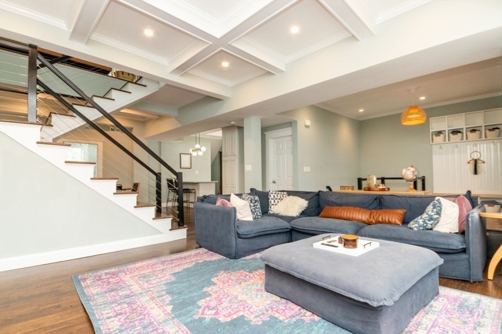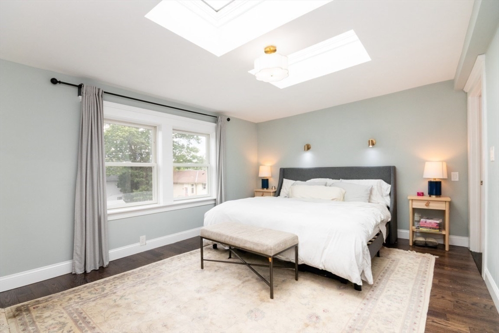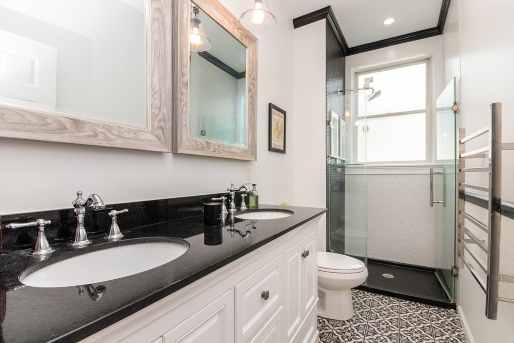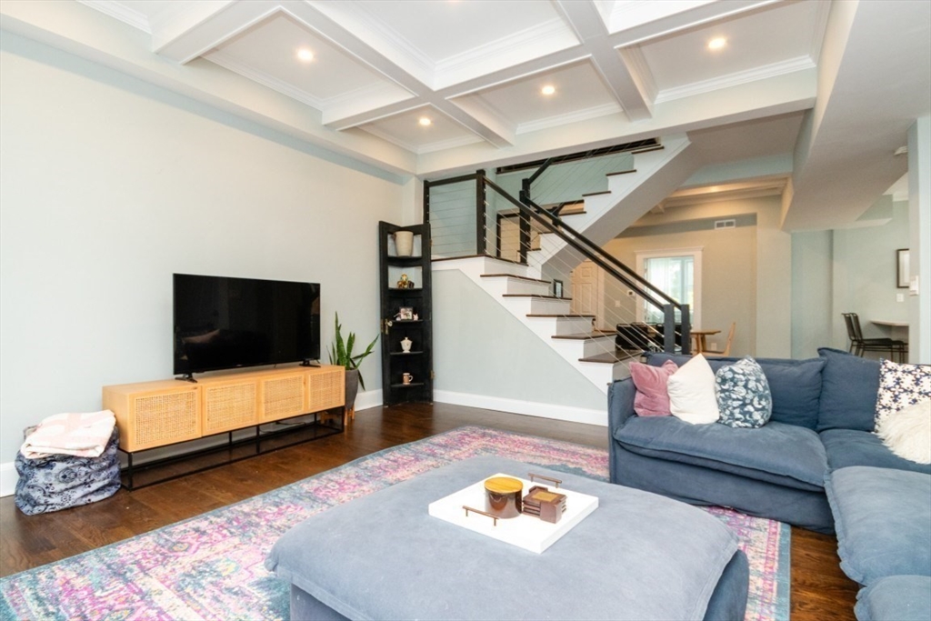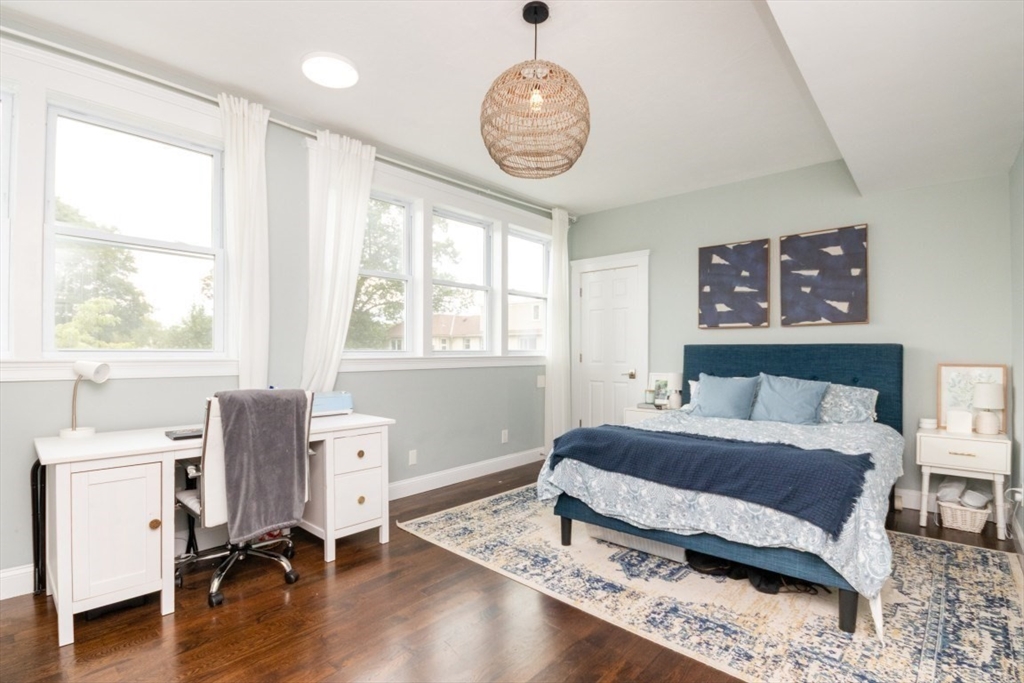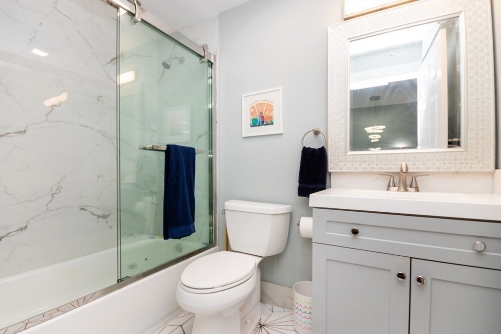 Welcome to this beautifully renovated 4-bed, 4-bath top-level condo in sought-after West Newton! Fully updated in 2023, this spacious home features gleaming hardwood floors, high ceilings, and sun-filled rooms throughout. The main level offers a study/sitting area, stylish kitchen with quartz counters, stainless steel appliances, tiled backsplash, and gas range, plus an open-concept dining/family/living area with elegant coffered ceilings. A spacious bedroom with fireplace and a full bath with heated floors complete this level. Upstairs you’ll find a generous primary suite with walk-in closet and luxurious full bath, two additional bedrooms (one with en suite heated floor bath), skylit sitting area, and in-unit laundry. Enjoy a private patio, fenced yard, central AC, two-car parking, and basement storage. Prime location with easy access to public transit, shops, restaurants, cinema, schools, and major commuter routes!