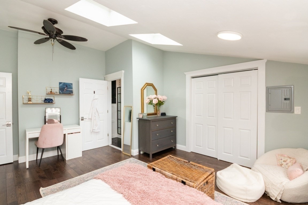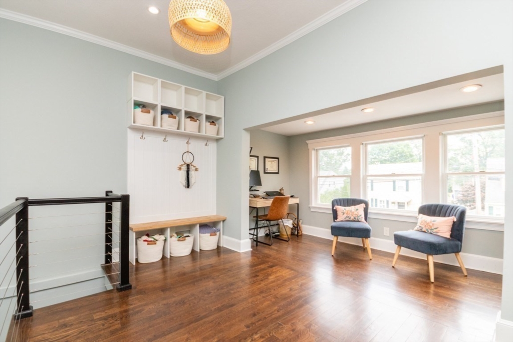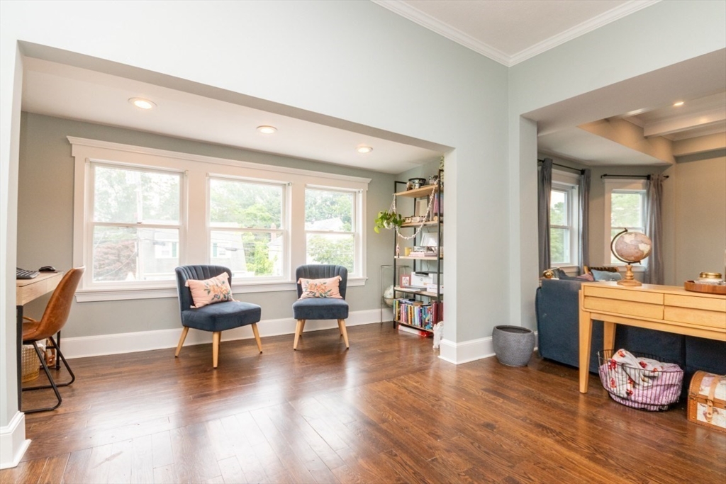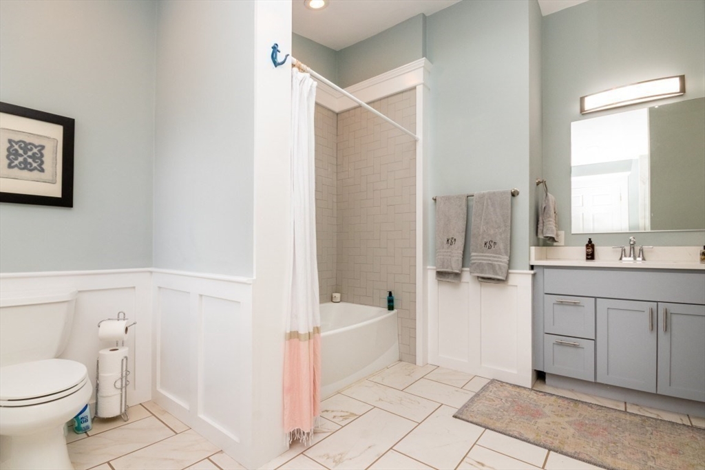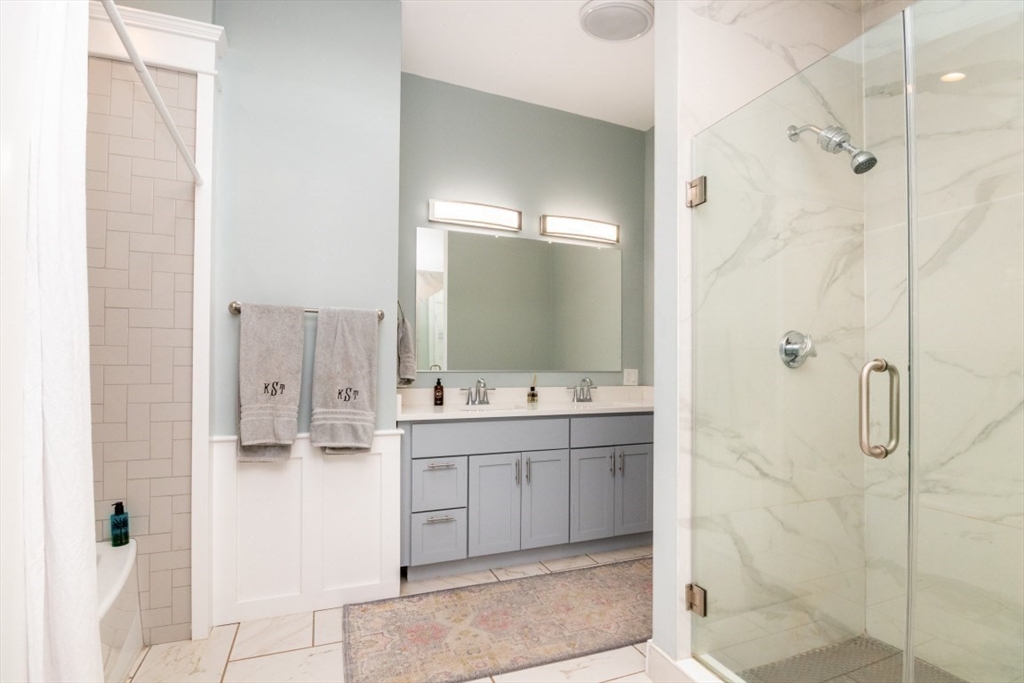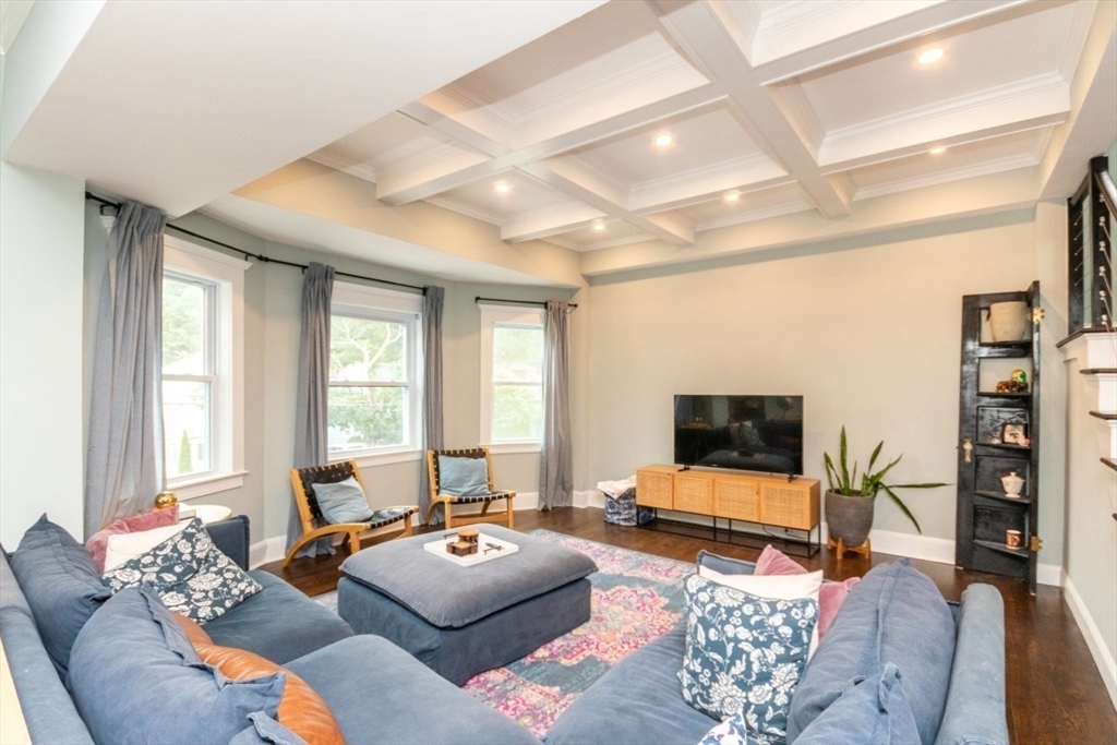 Welcome to this beautifully renovated 4-bed, 4-bath top-level condo in sought-after West Newton! Fully updated in 2023, this spacious home features gleaming hardwood floors, high ceilings, and sun-filled rooms throughout. The main level offers a study/sitting area, stylish kitchen with quartz counters, stainless steel appliances, tiled backsplash, and gas range, plus an open-concept dining/family/living area with elegant coffered ceilings. A spacious bedroom with fireplace and a full bath with heated floors complete this level. Upstairs you’ll find a generous primary suite with walk-in closet and luxurious full bath, two additional bedrooms (one with en suite heated floor bath), skylit sitting area, and in-unit laundry. Enjoy a private patio, fenced yard, central AC, two-car parking, and basement storage. Prime location with easy access to public transit, shops, restaurants, cinema, schools, and major commuter routes!