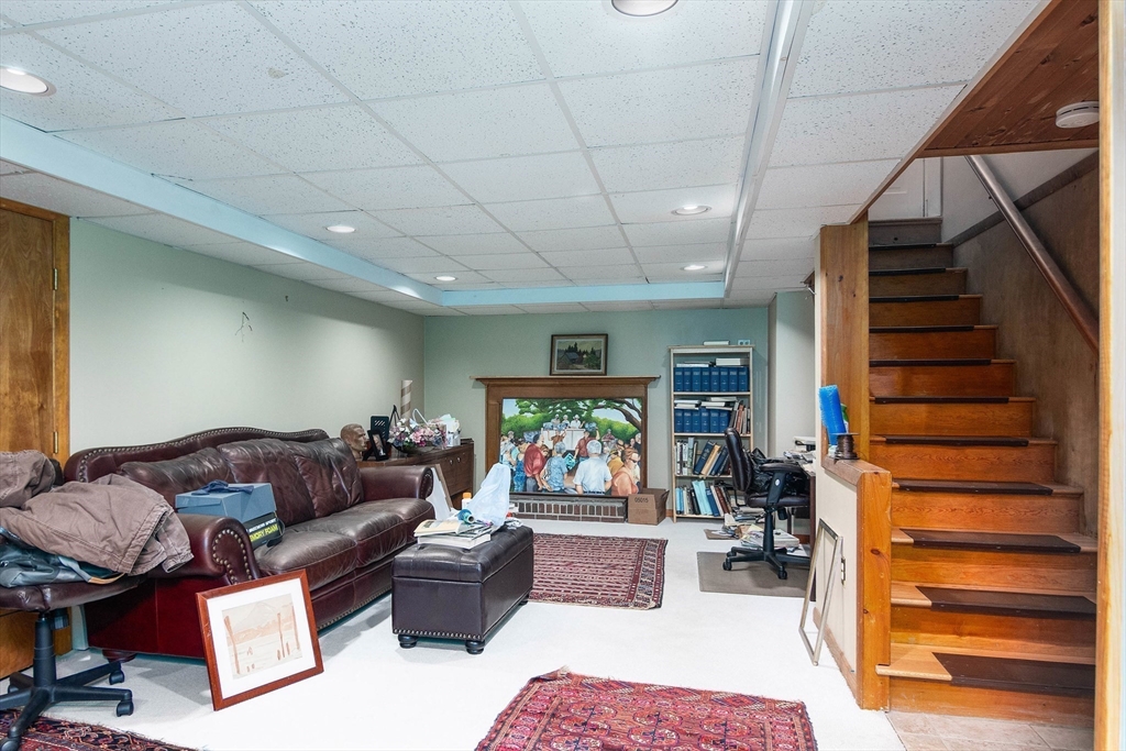 Major Price adjustment. Dont miss this opportunity "Birchwood" contemporary sprawling 3-4 bedroom ranch. Newly refinished gleaming hardwoods throughout the main floor. The sunken Great room has cathedral ceilings, skylight , Slider and a Palladium window overlooking a flat backyard with pastoral setting. Kitchen is focal point with granite countertops, ss appliances breakfast bar, and an eat in area. Formal dining room with french doors to access the deck and a skylight. A cozy marble surround fireplaced living room with a bow window. First floor laundry and a sunroom. 3 bedrooms and 1 and 1/2 bath on main level. This home is boasting natural light. Step downstairs and there is a fireplaced family room an office/bedroom. A full bath and huge storage area with an abundance of shelves and access to backyard from bulked. Minutes to 190/290 . Don't miss this spectacular property !