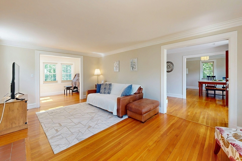 Charming Single-Family Home in Waban! This beautifully renovated 4-bedroom, 2.5-bath Colonial sits in a highly desirable location. The inviting living room offers a fireplace and gleaming hardwood floors, while the kitchen is appointed with wood cabinetry, granite countertops, and stainless-steel appliances. A flexible room adjoining the kitchen and living room opens to the deck and backyard, perfect for indoor-outdoor living. Upstairs, you’ll find three bedrooms plus an office alongside a stylish full bath. The top floor features a skylit primary suite. Modern updates include central air, gas heating, and upgraded wiring and plumbing. Additional perks include one garage space, proximity to Waban Square, The Windsor Club, and Zervas Elementary. Fully deleaded, providing a safe environment for children and pets. This home seamlessly blends comfort, convenience, and timeless appeal.