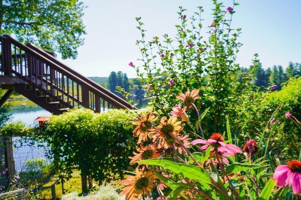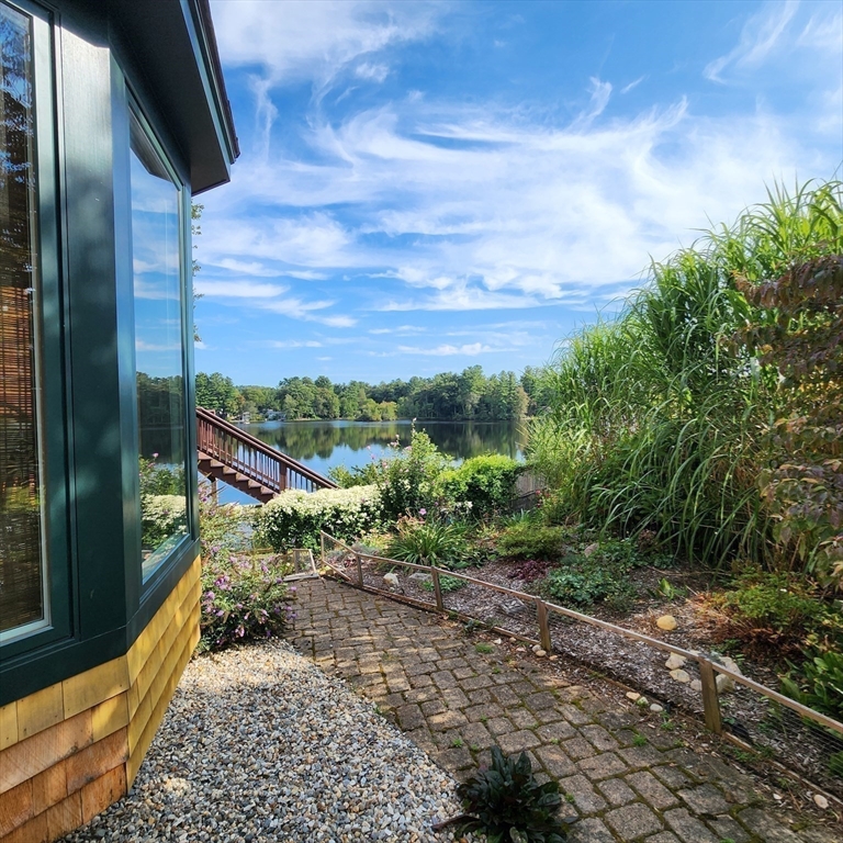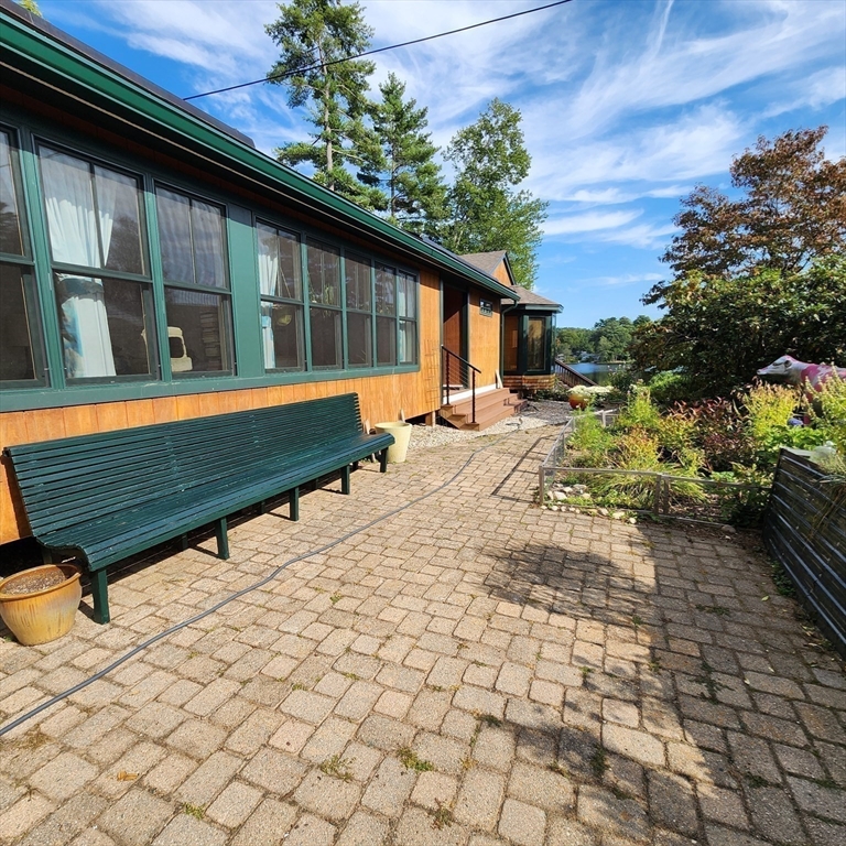 This home truly has it all—waterfront living on Metacomet Lake, a stylish ranch design w/ a spacious addition, & thoughtful updates throughout. Set back on just under an acre & surrounded by lush gardens, the setting is as serene as it is beautiful. Enter inside through the inviting four-season breezeway w/ recessed lighting or the tiled mudroom from the single-car garage. At the heart of the home, a beautifully remodeled kitchen shines w/ an expansive island, quartz countertops, gas range, pop out dining area, & walk-in pantry—seamlessly open to the cathedral-ceiling living rm, where windows & a sliding dr frame tranquil lake views. The primary suite boasts cathedral ceilings & a fashionable ensuite inclusive of a soaking tub & skylight. A versatile second bedrm provides options for guests, a home office, or bonus space. Additional highlights include a relaxing hot tub, a thoughtfully designed dog run, & a level front yard. Here is your chance to own a piece of paradise on the water!