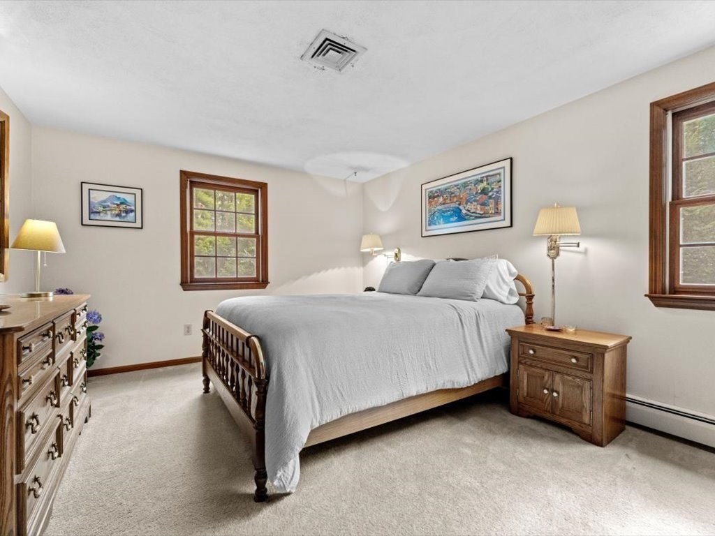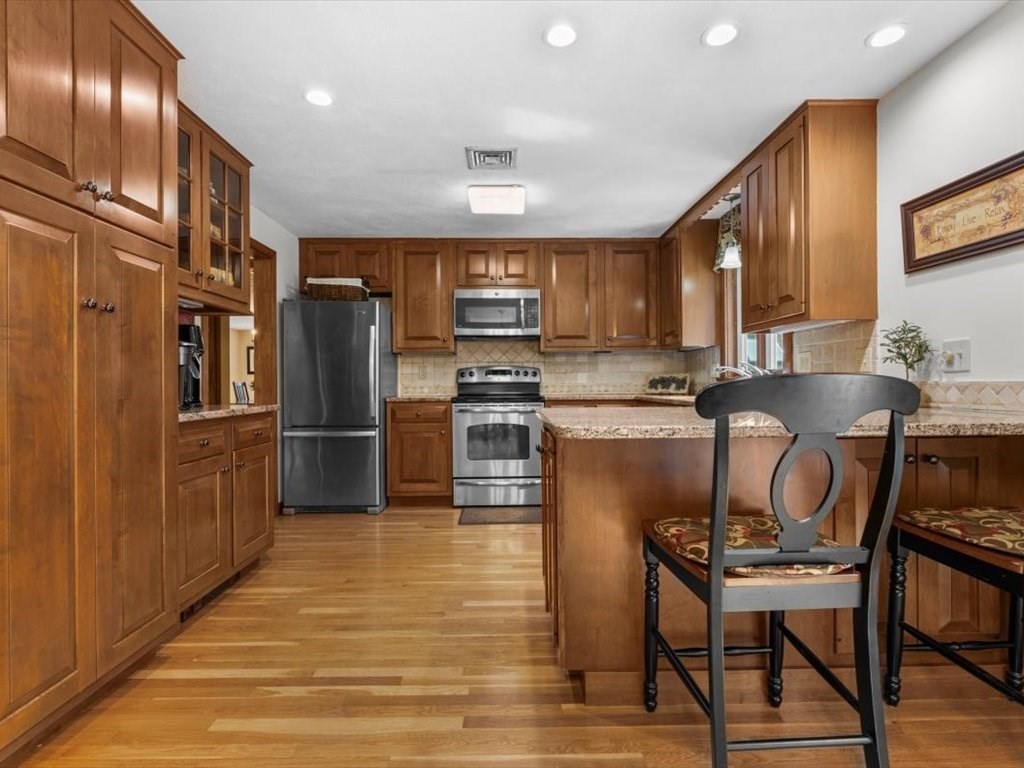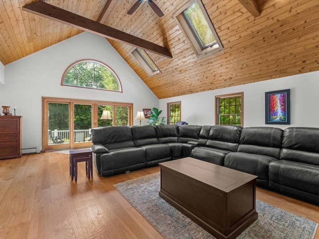 Exceptional two-level home with two remarkable expansions, designed for entertaining and everyday living. The main level, the social hub, features formal dining and living rooms with fireplace, flowing into a carefully crafted eat-in kitchen with granite, abundant storage, and breakfast bar. The cathedral family room stuns with soaring wood-planked vaulted ceilings, dramatic floor-to-ceiling brick fireplace, hardwood floors, and sliders to a tiered deck overlooking the fenced backyard and serene nature views. A private bedroom and bath are tucked away on this level. The bedroom level offers a primary suite, private sitting room with fireplace, craft room, plus another bedroom. Three-car heated garage includes a second-floor room with full bath, ideal for multi-generational living or home business. Set on 1.6+ acres abutting Bogastow Brook, this home provides a lifestyle you’ll never want to leave and a retreat you’ll be eager to return to each day!