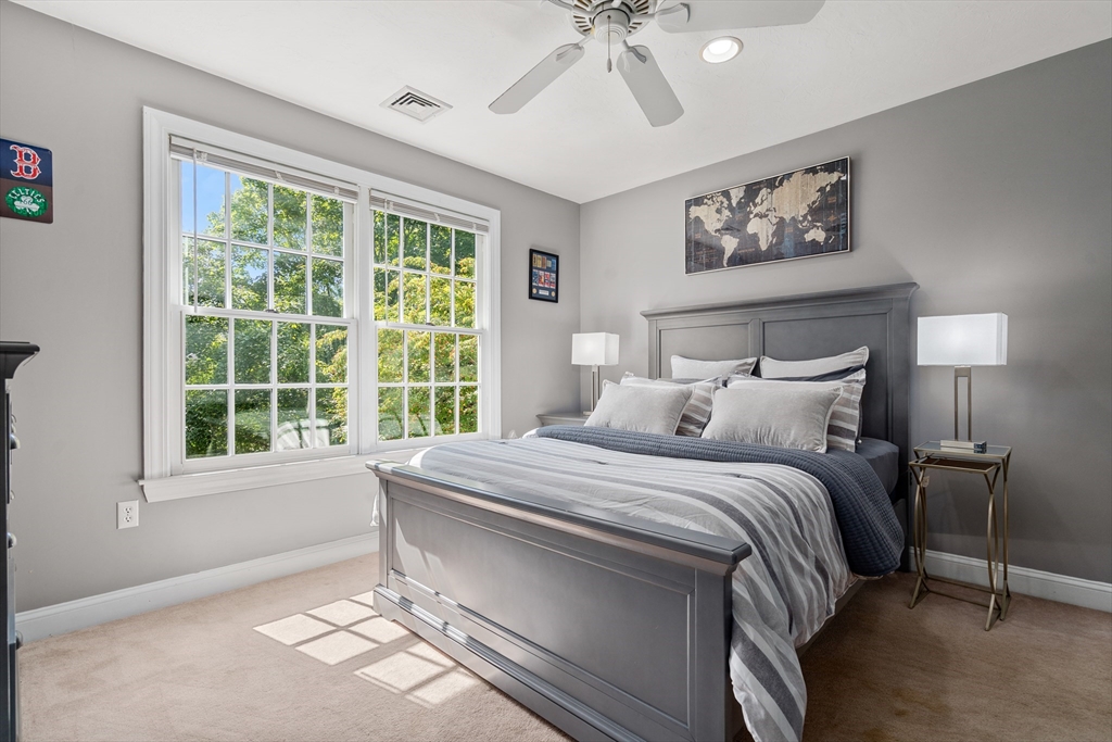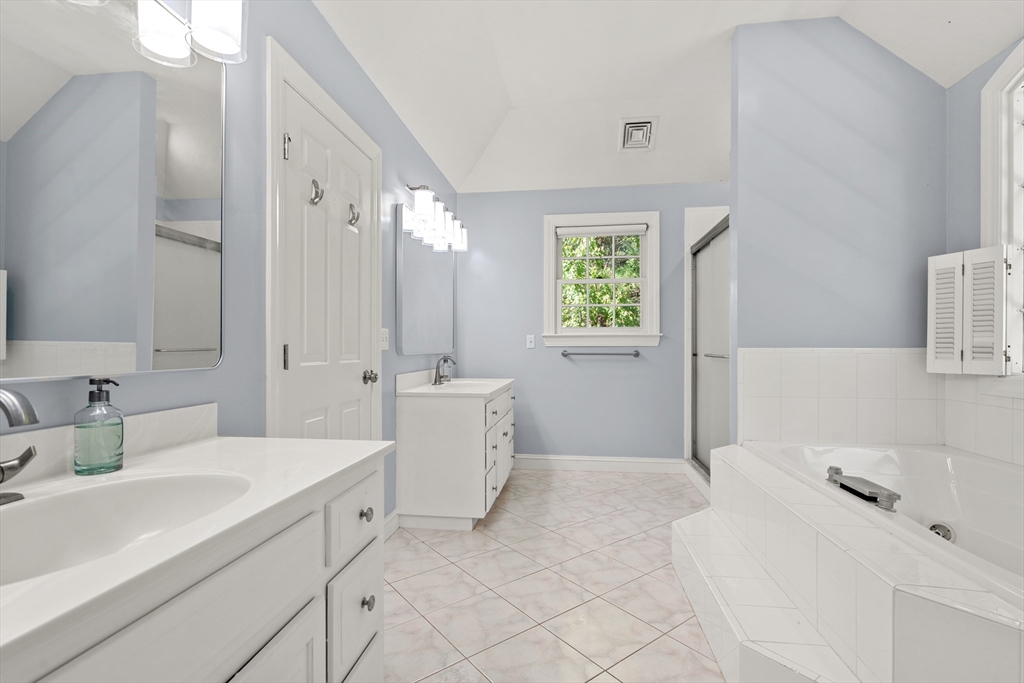 Located in the highly desirable Camperdown Lane neighborhood, this sun-drenched home offers hardwood floors throughout the first level and a welcoming layout ideal for everyday living and entertaining. The renovated family room features soaring two-story ceilings and a striking stone fireplace, flowing seamlessly into a spacious kitchen with white cabinetry, s/s appliances and double wall ovens. A first-floor office with French doors and built-ins provides a quiet workspace. The formal dining room opens to a bright living room making it ideal for entertaining. Upstairs, the primary suite includes a tray ceiling and private bath. One bedroom is ensuite with a walk-in closet and study nook; two additional bedrooms share a hall bath. The finished lower level includes two playrooms and a second office. Enjoy the large, private backyard with a deck and firepit. Updates: AC condenser (2024), roof (2016), kitchen appliances (2021), bathrooms. Walk to town pool, sports fields, and playground.