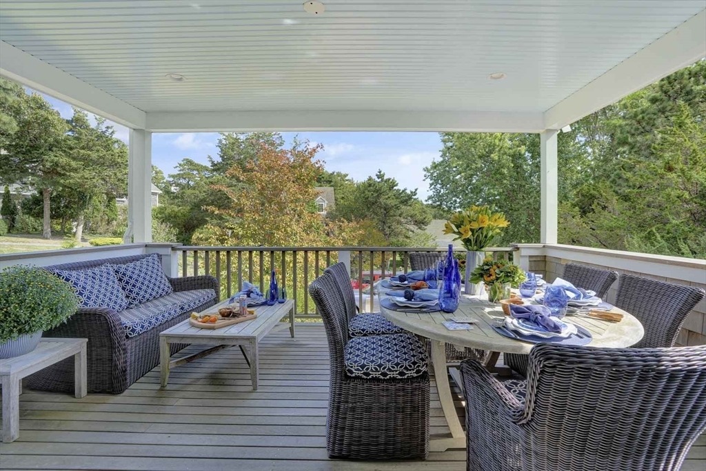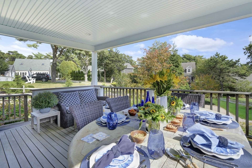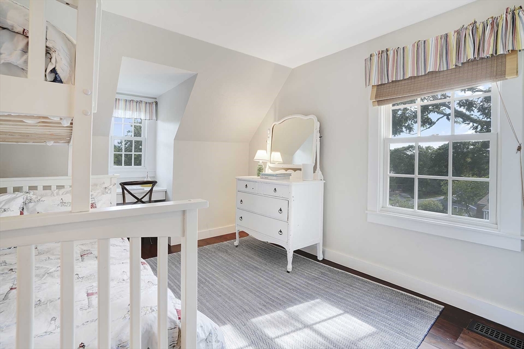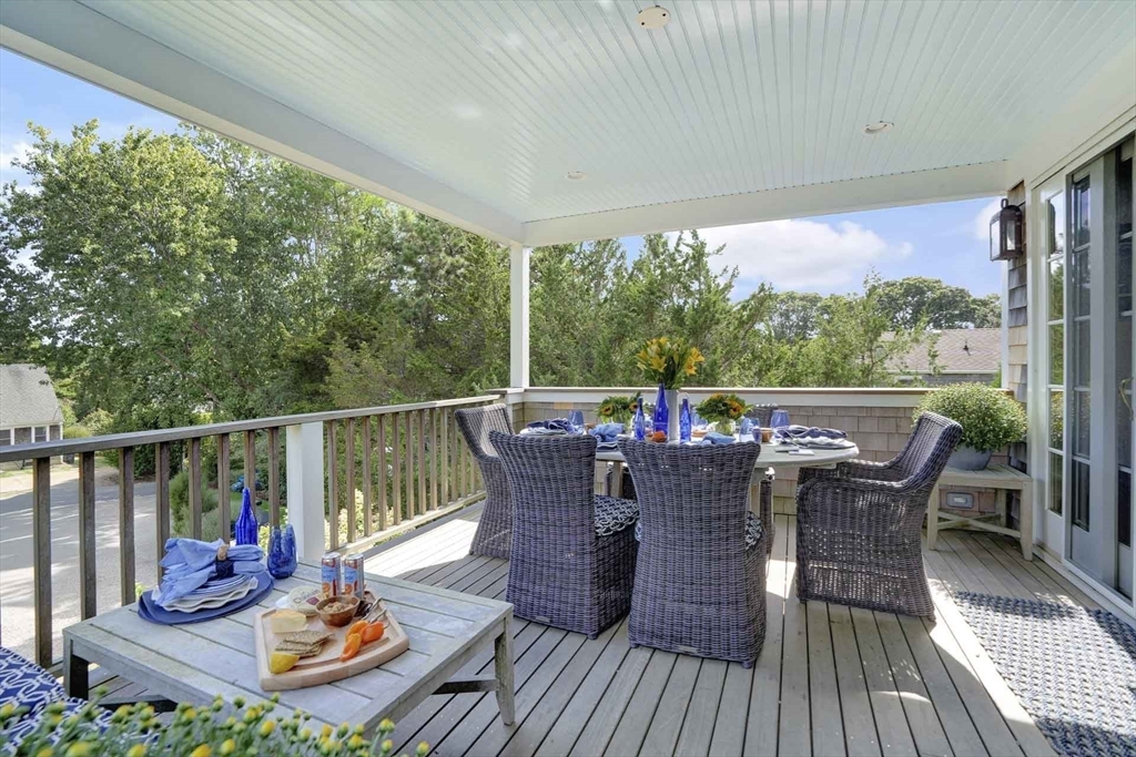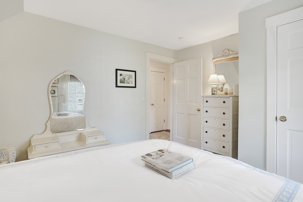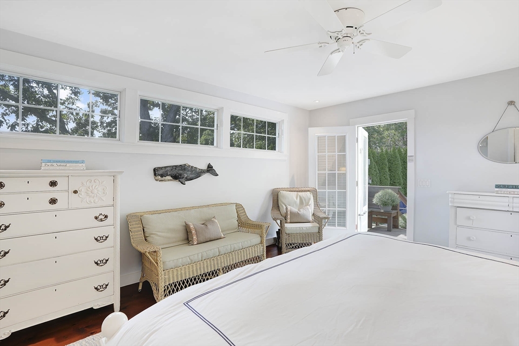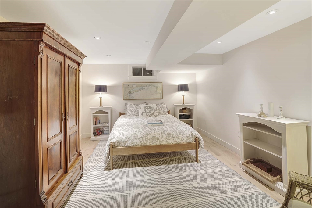 Nestled just a short stroll from all the best of Edgartown Village, this beautifully renovated retreat offers the ideal balance of Vineyard charm and modern convenience. Designed across three levels of living spaces, the home provides a flexible layout that works beautifully for entertaining, relaxing, or hosting guests. The main floor welcomes you with an inviting living room and a custom bar area. The covered porch offers a perfect spot for enjoying al fresco summer dining and relaxation. A sun-filled eat-in kitchen features a Viking gas range, granite countertops with a hint of sea glass green. The primary bedroom offers private access to the pool terrace. On the second floor, two well-sized bedrooms share a full bath, while the Lower Level offers additional space for gathering or guests, including a large lounge with media area, a bedroom and full bath, and a laundry room. Step outside to your private backyard oasis, where a heated 8x19 saltwater pool is framed by a stone terrace.