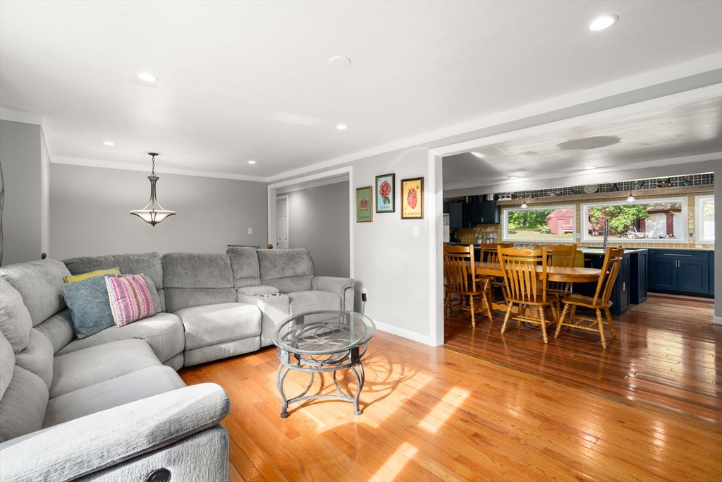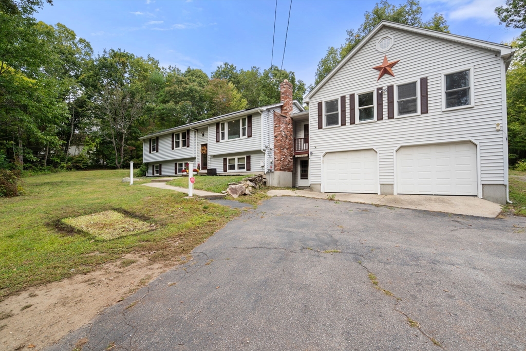 Set on 2 acres in Blackstone near the Mendon town line, this expansive 5-bedroom, 4-bath split-entry home offers over 3,100 sq. ft. of versatile living space. The main level showcases hardwood floors, a sun-filled living room with electric fireplace, and a gourmet kitchen designed for the chef at heart. Oversized windows provide a bright, open feel, complementing granite counters, an island, gas stove, double ovens, stainless appliances, and wine chiller. The spacious main suite boasts hardwoods, a large walk-in closet, and full bath, while three additional bedrooms include another en suite option. The walk-out lower level offers a family room, office, bonus rooms, and bedroom—ideal for an in-law setup, large family, or multi-generational living. Outdoors, enjoy a composite deck, fruit trees, barn/stable, storage shed, and nearby trails for equine enthusiasts. With flexible indoor and outdoor spaces, this property blends comfort, functionality, and country charm. Open house Saturday.