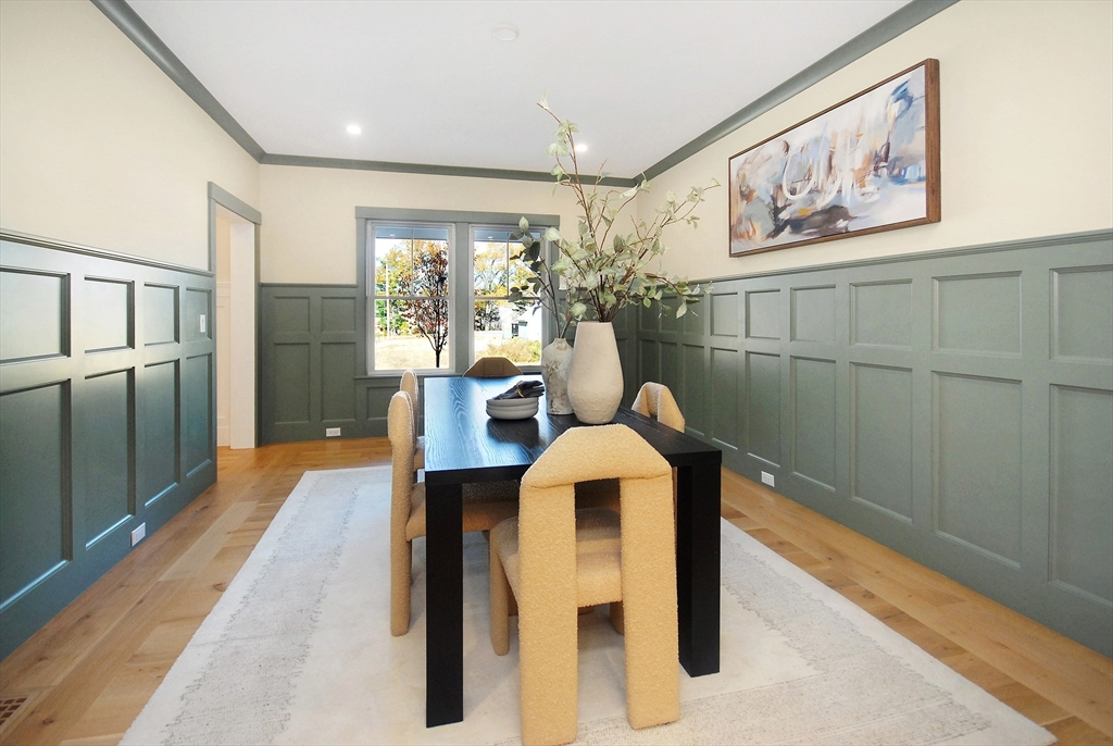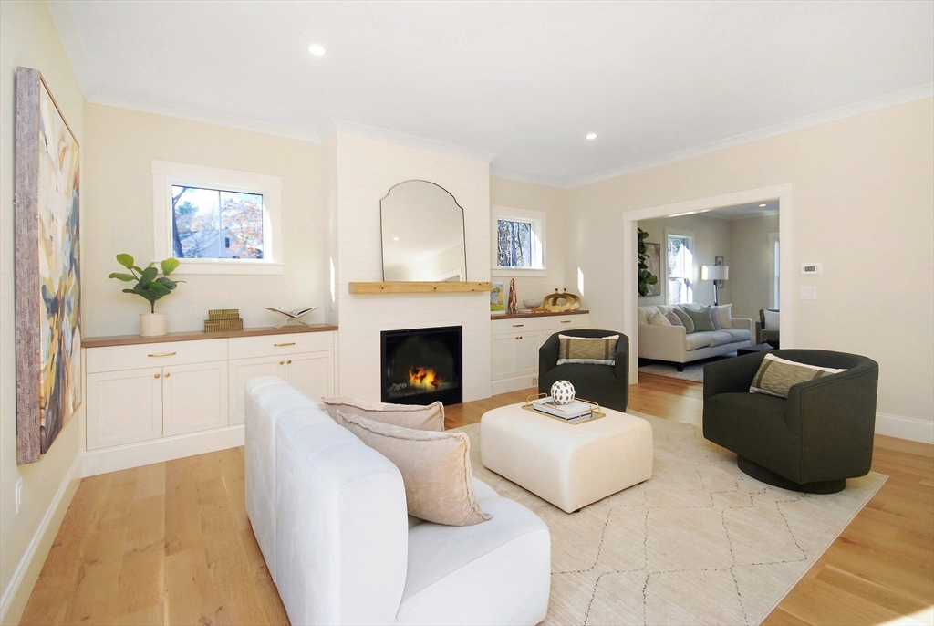 GPS 1053 Main St. Walk to everything location shops, restaurants, commuter rail, Bruce Freeman rail trail and Rideout playground. The 2nd of 5 homes to be built by EMS Development. Three finished levels offering 5 bedrooms including a first-floor primary. The two-story foyer adds a dramatic entrance that opens to a living room and dining room. The heart of the home is a thoughtfully designed chef's kitchen with Thermador appliances a pantry with wet bar and center island all opens to the fireplaced family room. The second floor has 4 bedrooms including an ensuite and gorgeous primary with a spa like bath. The lower level is complete with a large playroom, workout room and half bath. Move in ready this home welcomes you in time for the holidays.